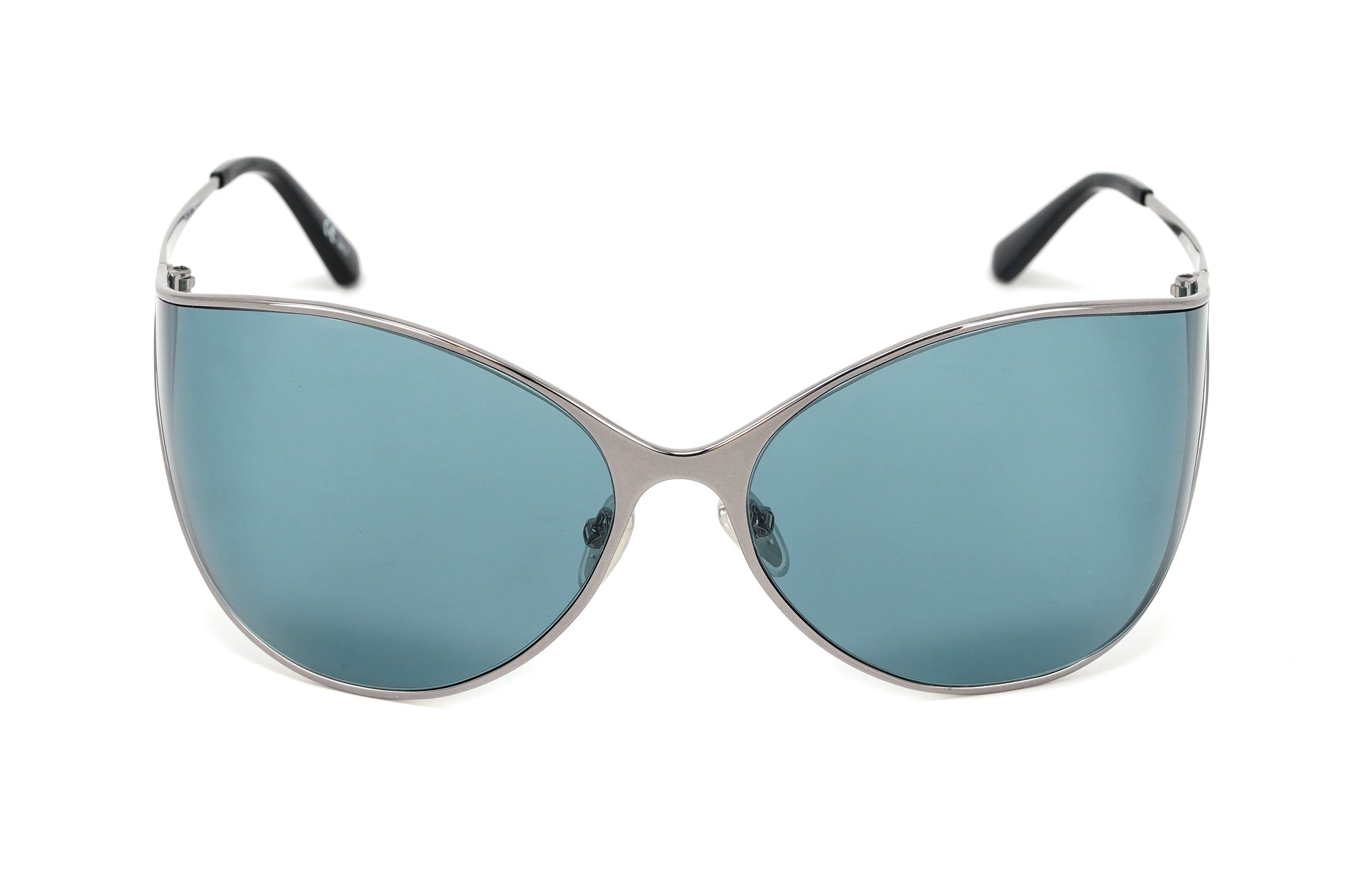 Balenciaga Women's Sunglasses Oversized Cat Eye Ruthenium Blue BB0137S-002 77