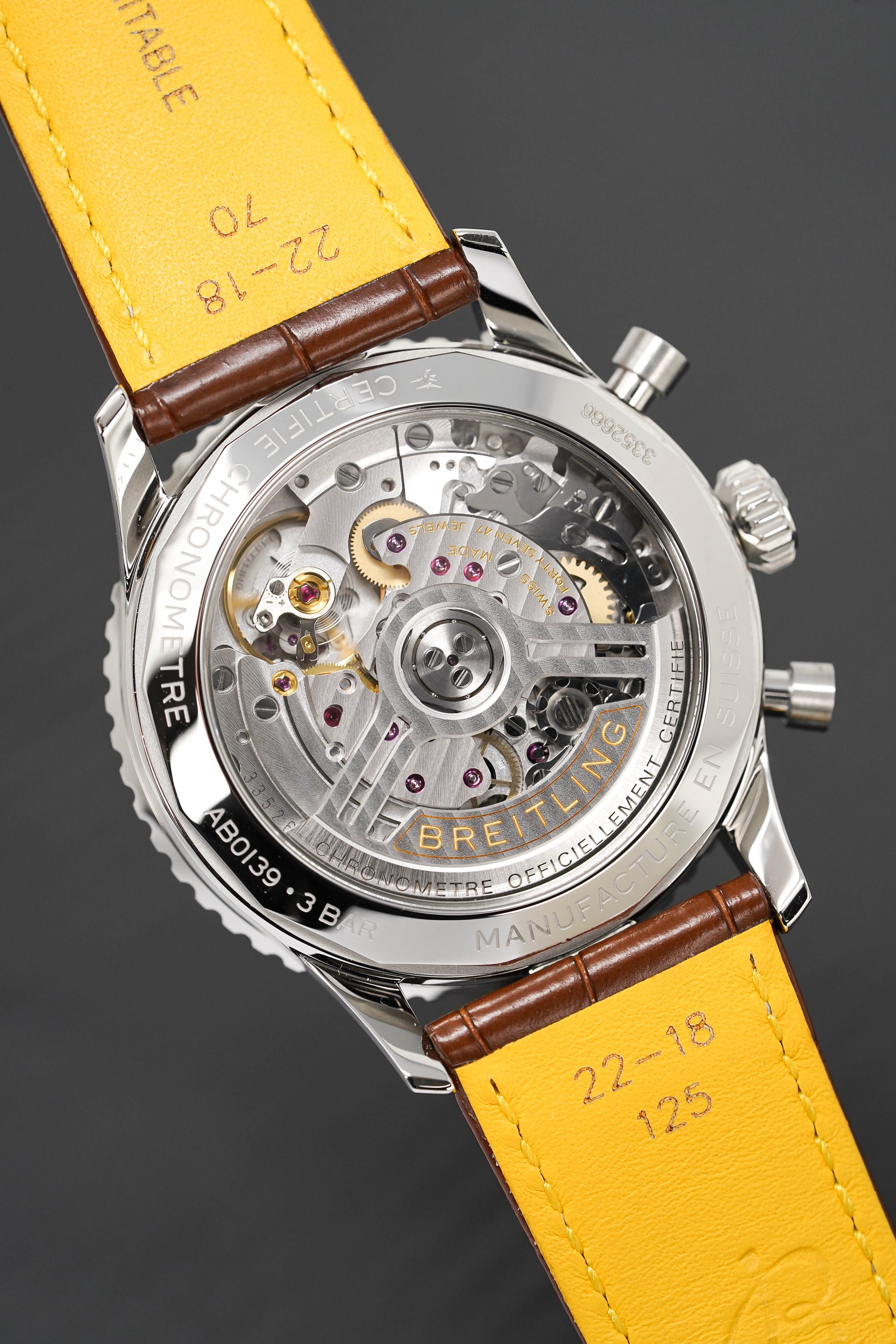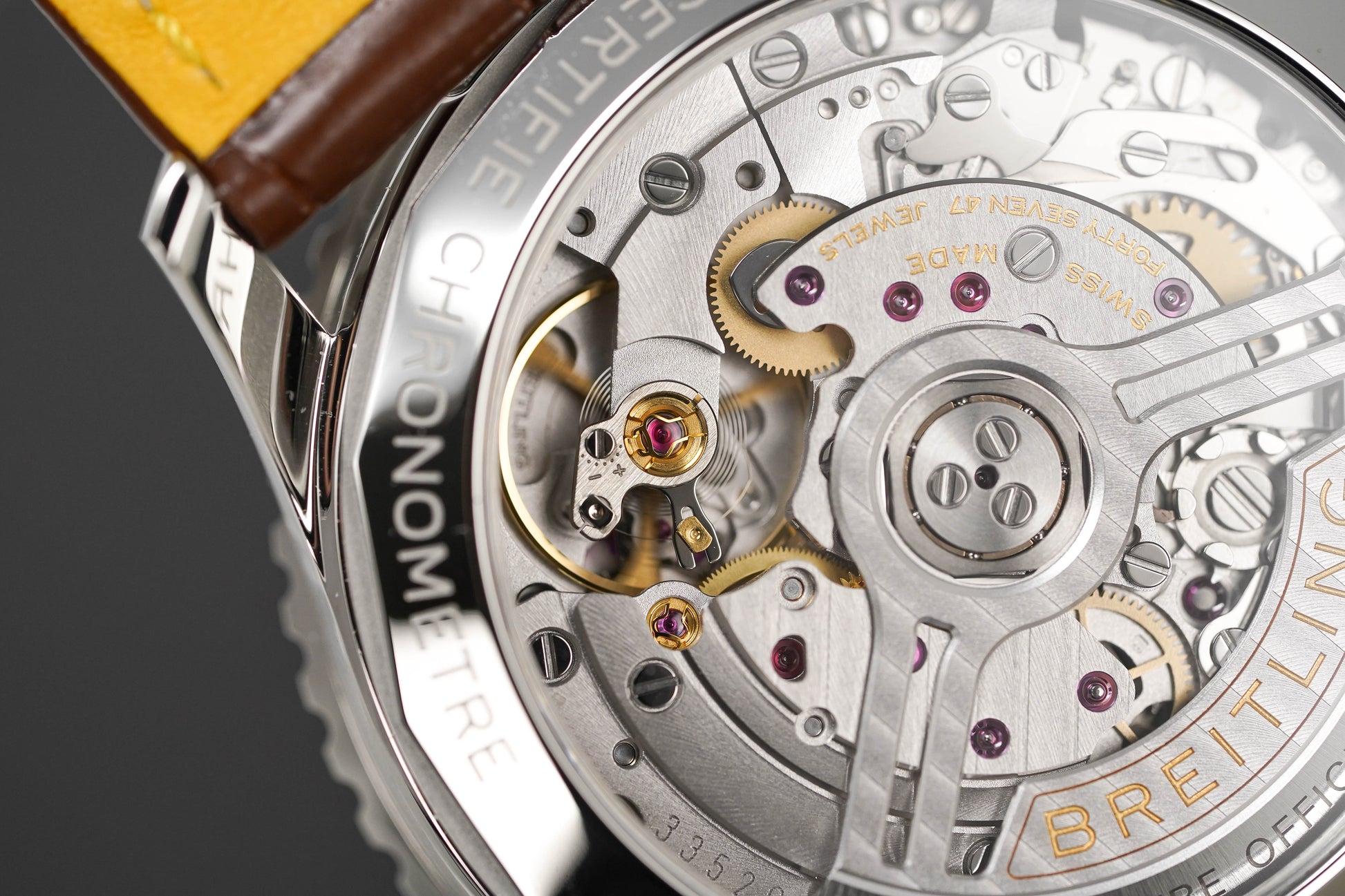 Swiss Made Automatic In-House Flyback Chronograph Movement. Calibre Breitling 01. Power Reserve of 72 Hours. 47 Jewels. 28,800bph. Date. 1/4th Seconds, 30 Minutes, 12-Hour Counter.