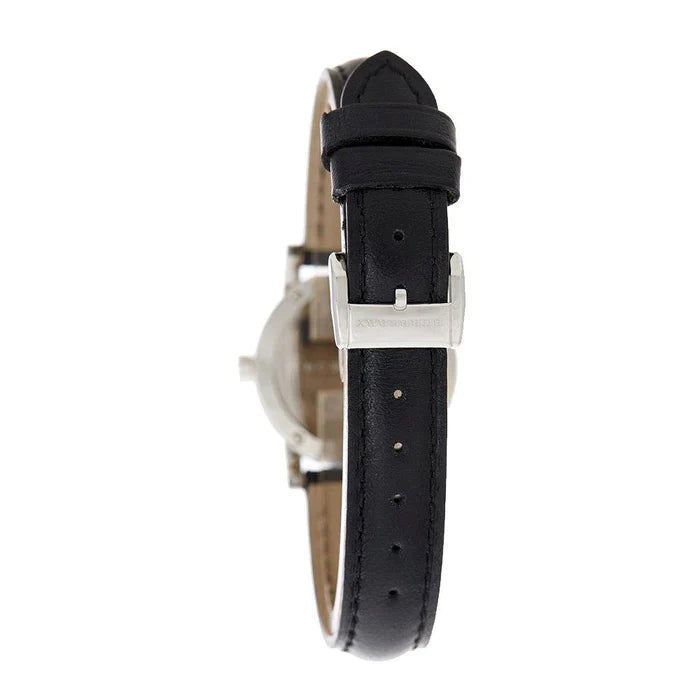 14mm Black Leather Strap with Stainless Steel Pin Buckle.