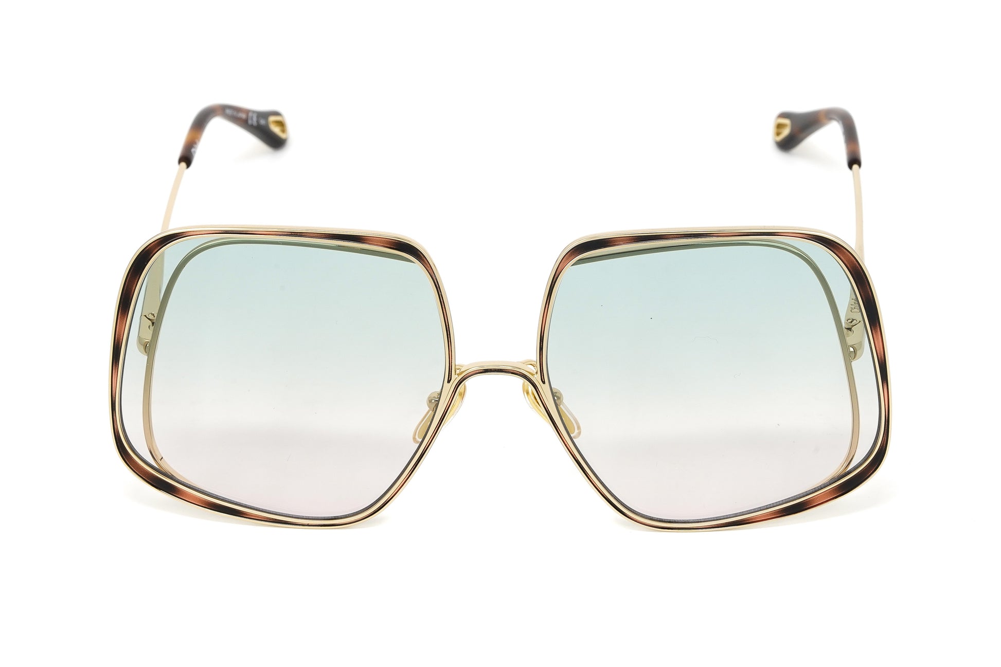 Chloé Women's Sunglasses Hanah Oversized Square Tortoise/Green CH0035S-004 62