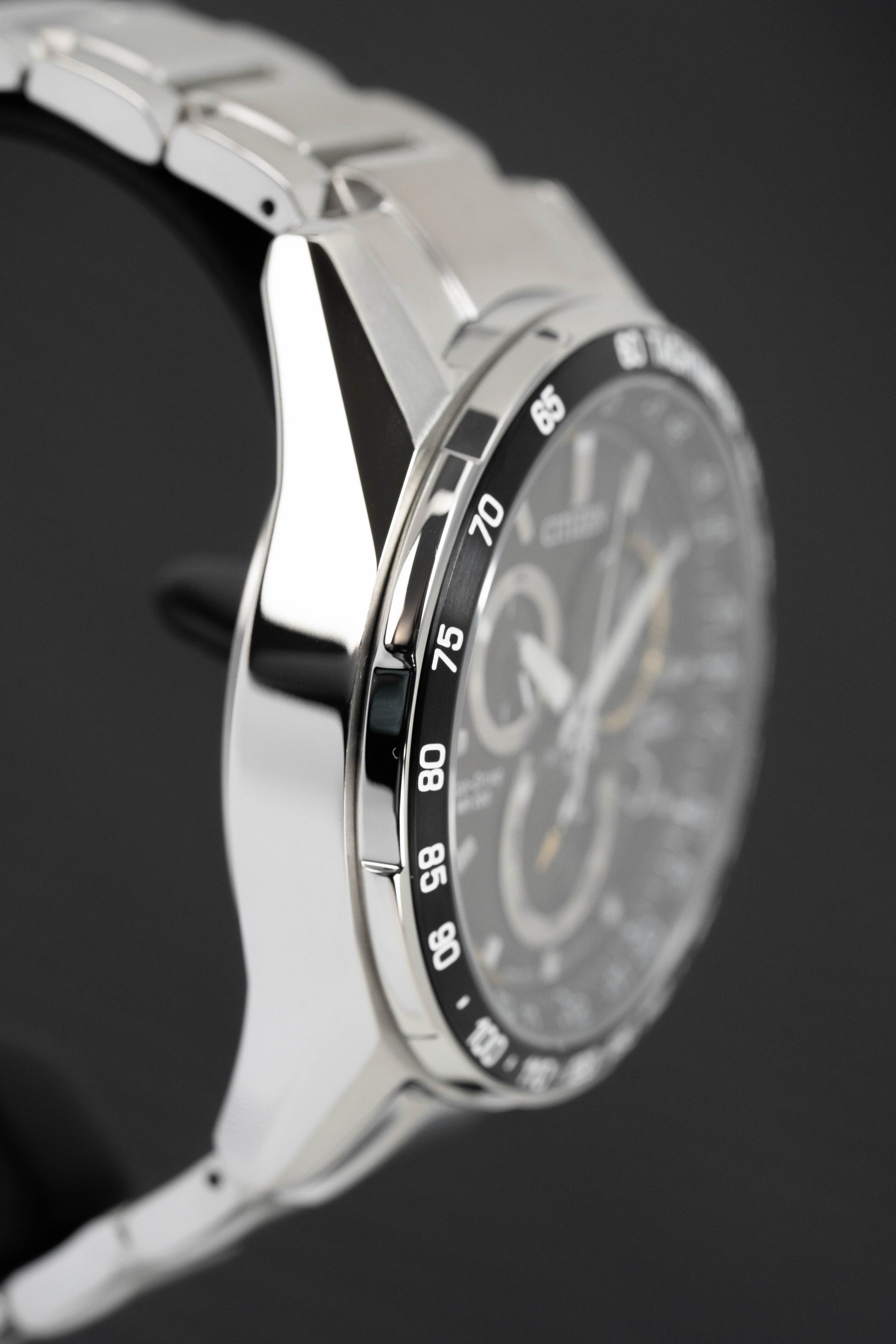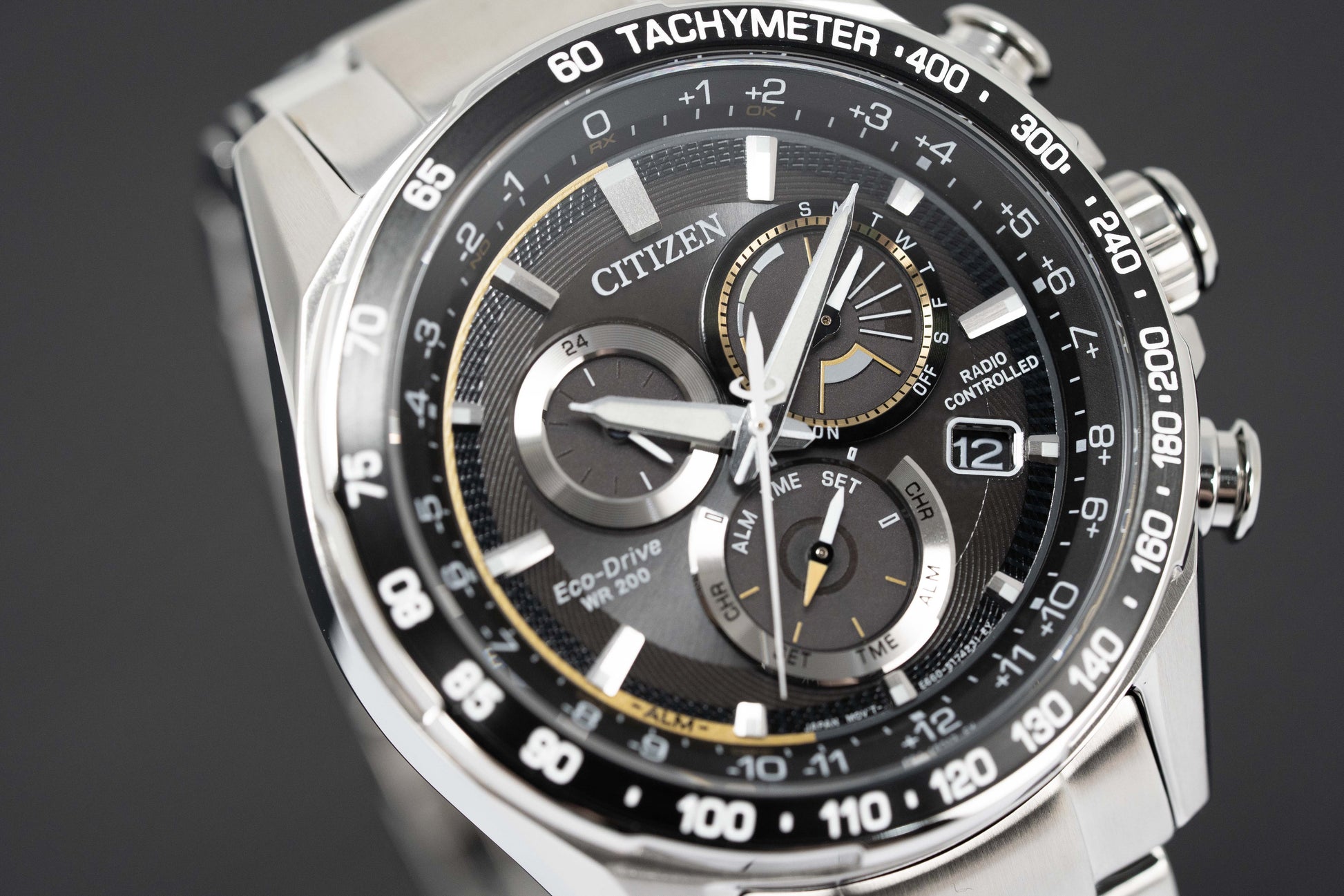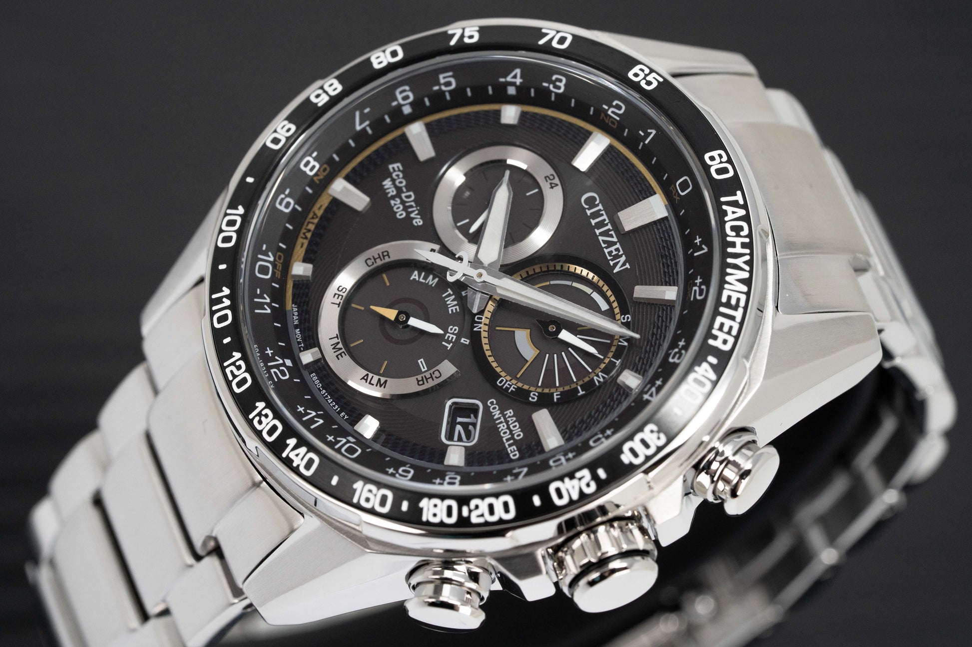 24-hour display, 3 years power reserve in the dark, Day alert, Day/Date, Eco-Drive, Insufficient charge warning feature, Local time for 24 cities, Perpetual Calendar, Power reserve, Radio controlled watch – EUR, JPY, USA, China, Stopwatch: max. 60 min, 1/1 sec., Time zones retrievable