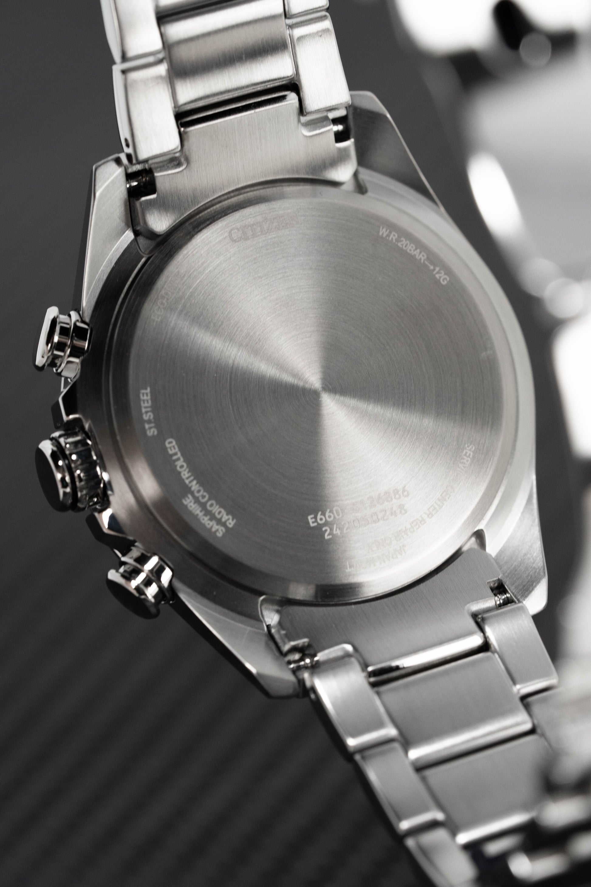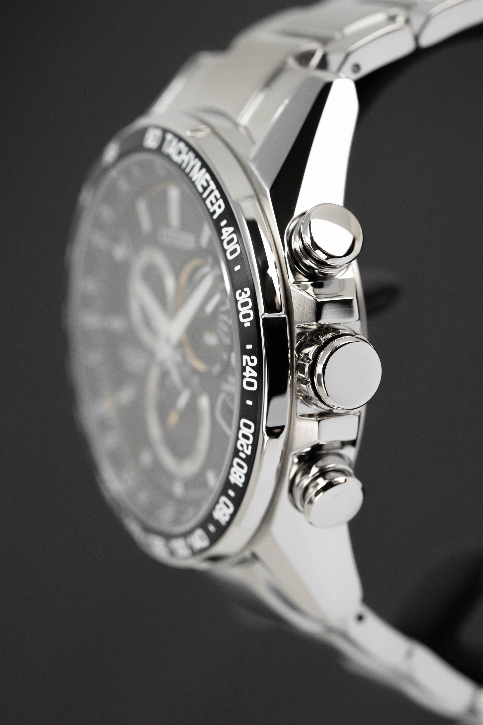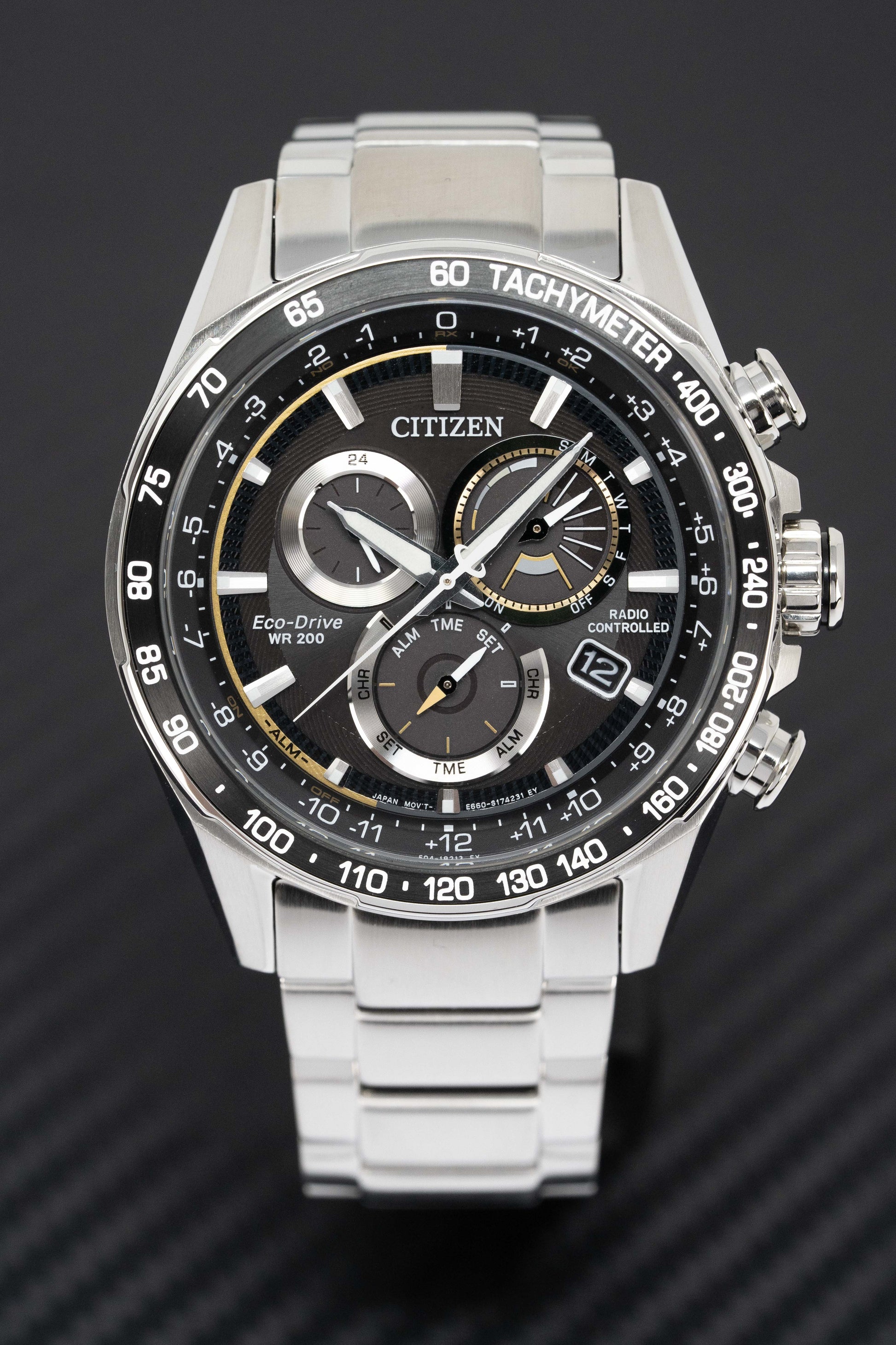 24-hour display, 3 years power reserve in the dark, Day alert, Day/Date, Eco-Drive, Insufficient charge warning feature, Local time for 24 cities, Perpetual Calendar, Power reserve, Radio controlled watch – EUR, JPY, USA, China, Stopwatch: max. 60 min, 1/1 sec., Time zones retrievable