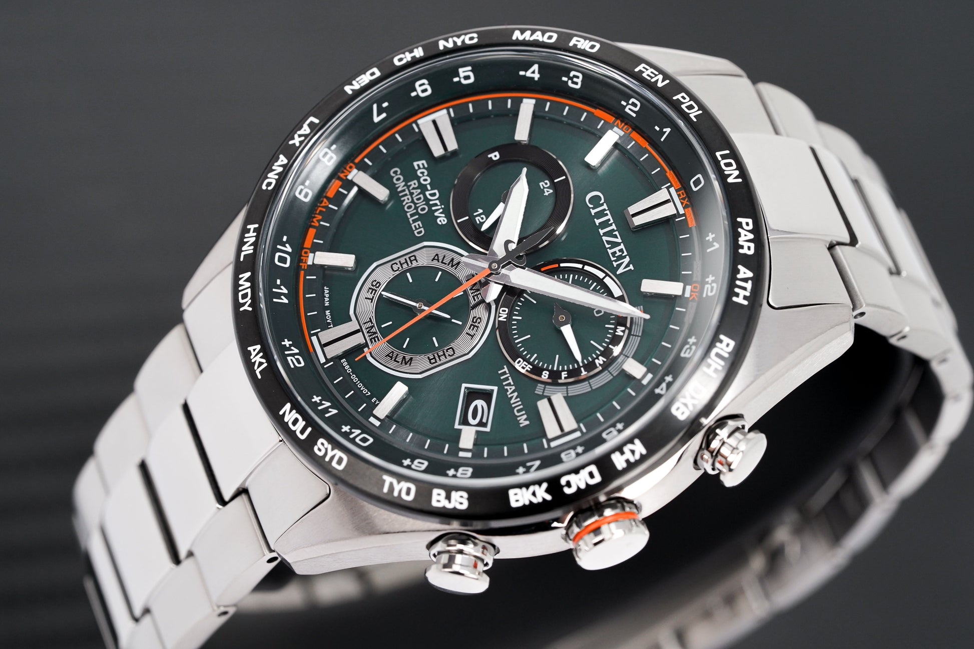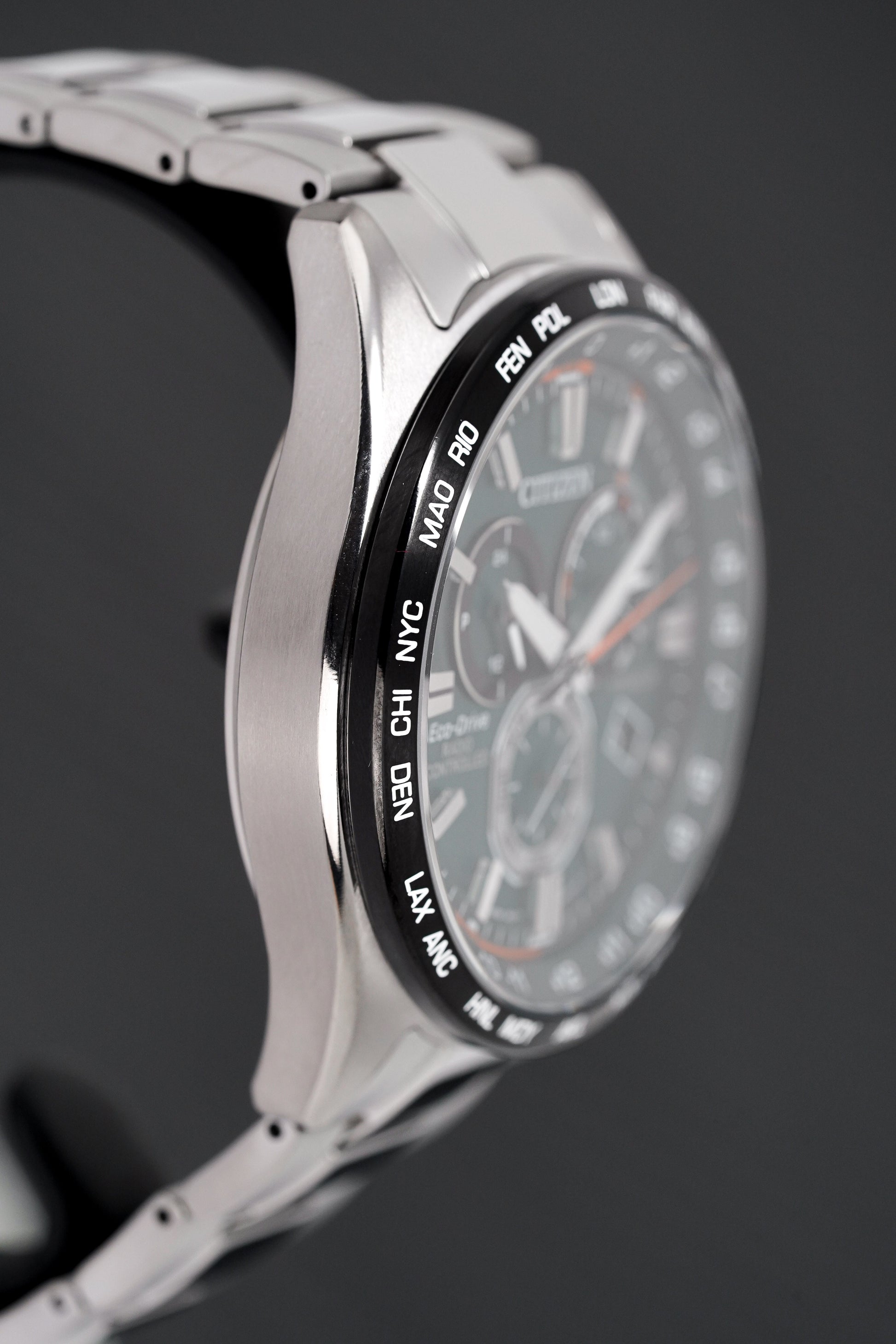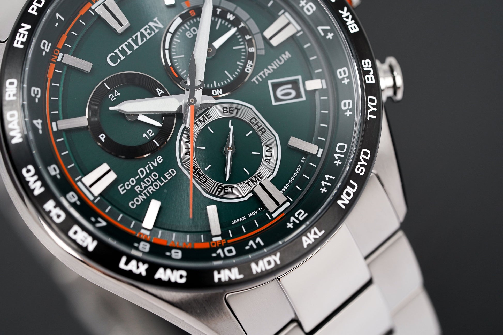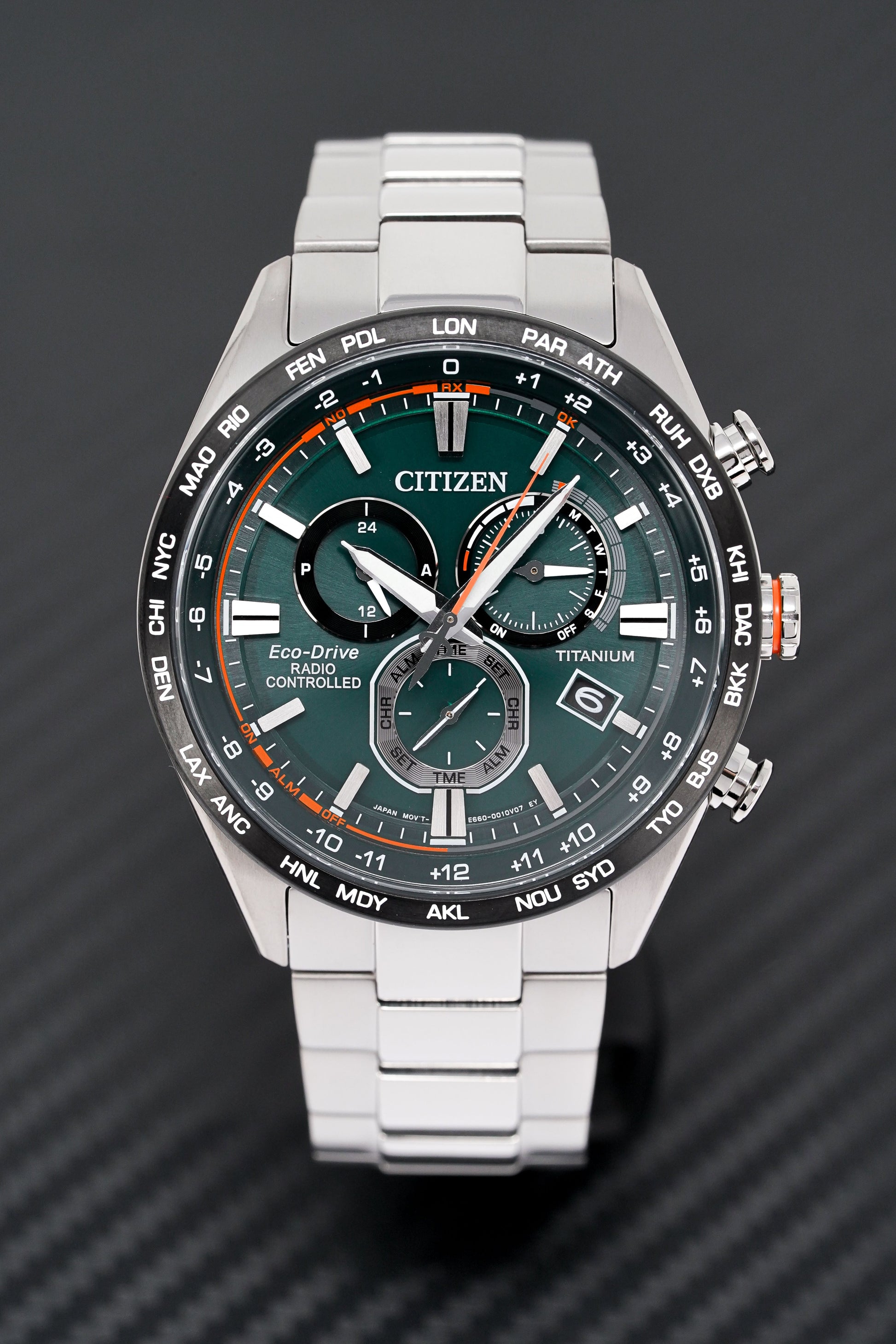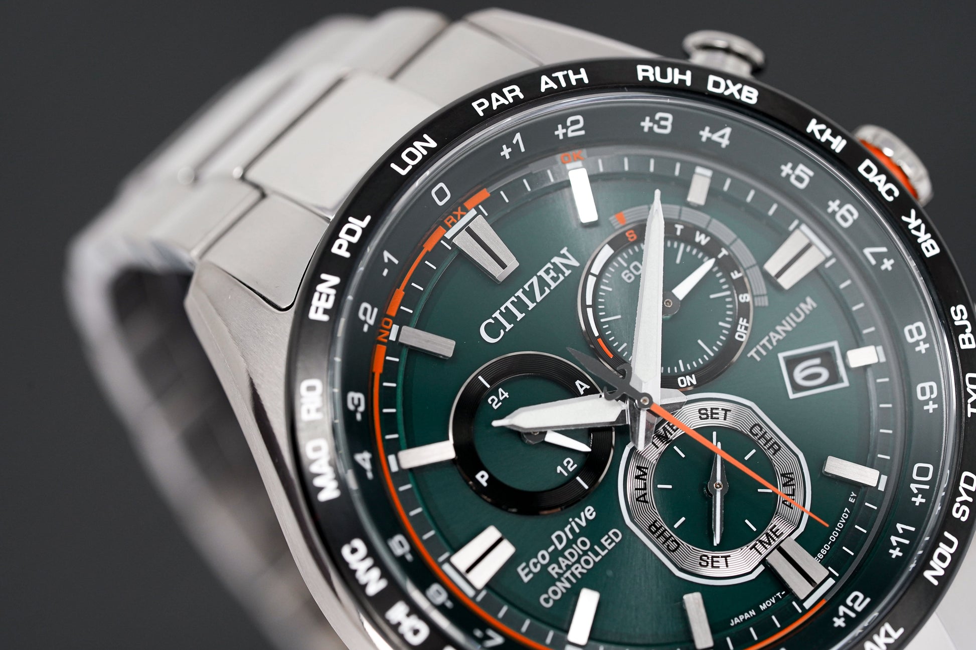 24-hour display, 3 years power reserve in the dark, 300 days power reserve, Day alert, Day/Date, Eco-Drive, Insufficient charge warning feature, Local time for 24 cities, Perpetual Calendar, Power reserve indicator, Radio controlled watch – EUR, JPY, USA, China, Stopwatch: max. 60 min, 1/1 sec., Time zones retrievable