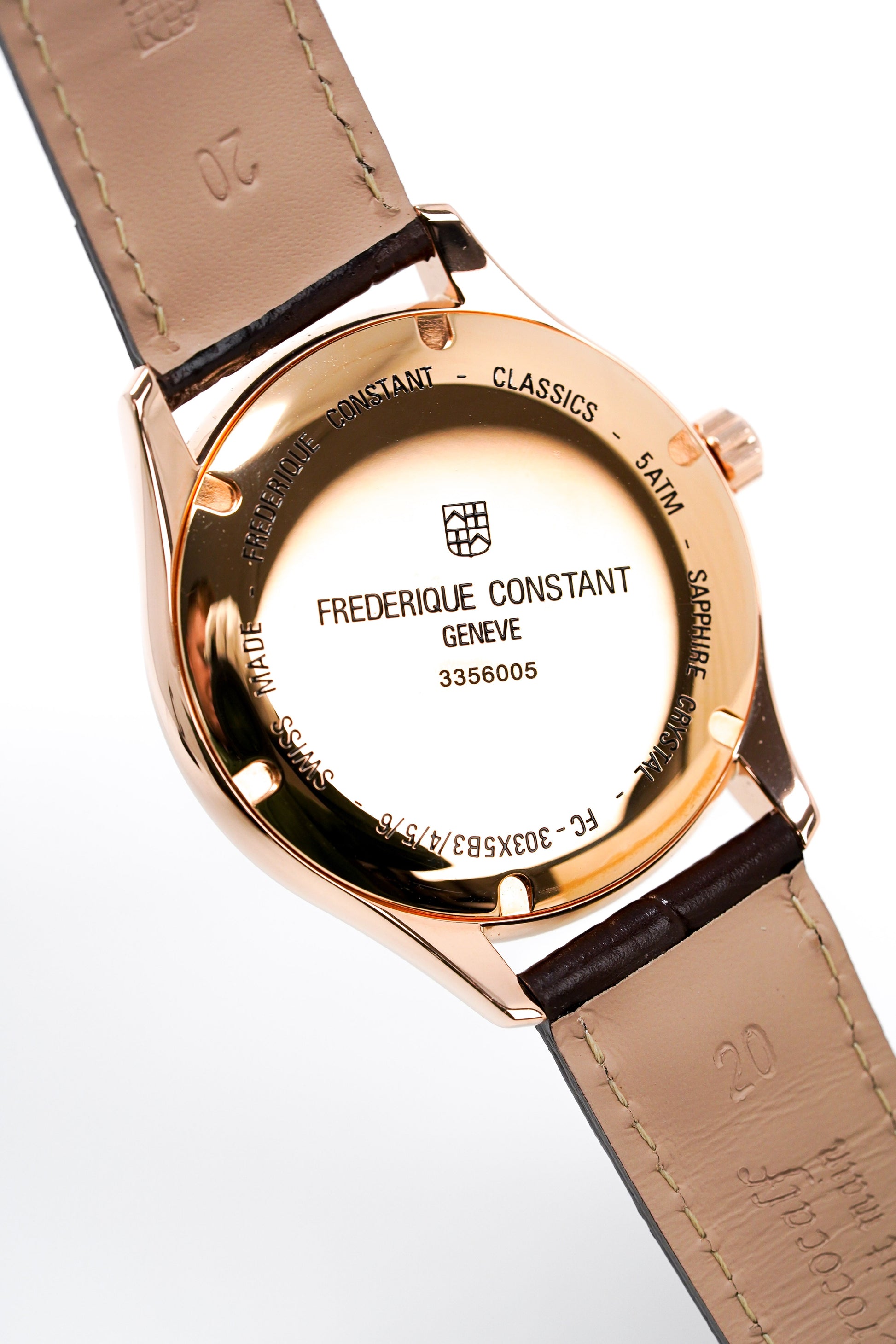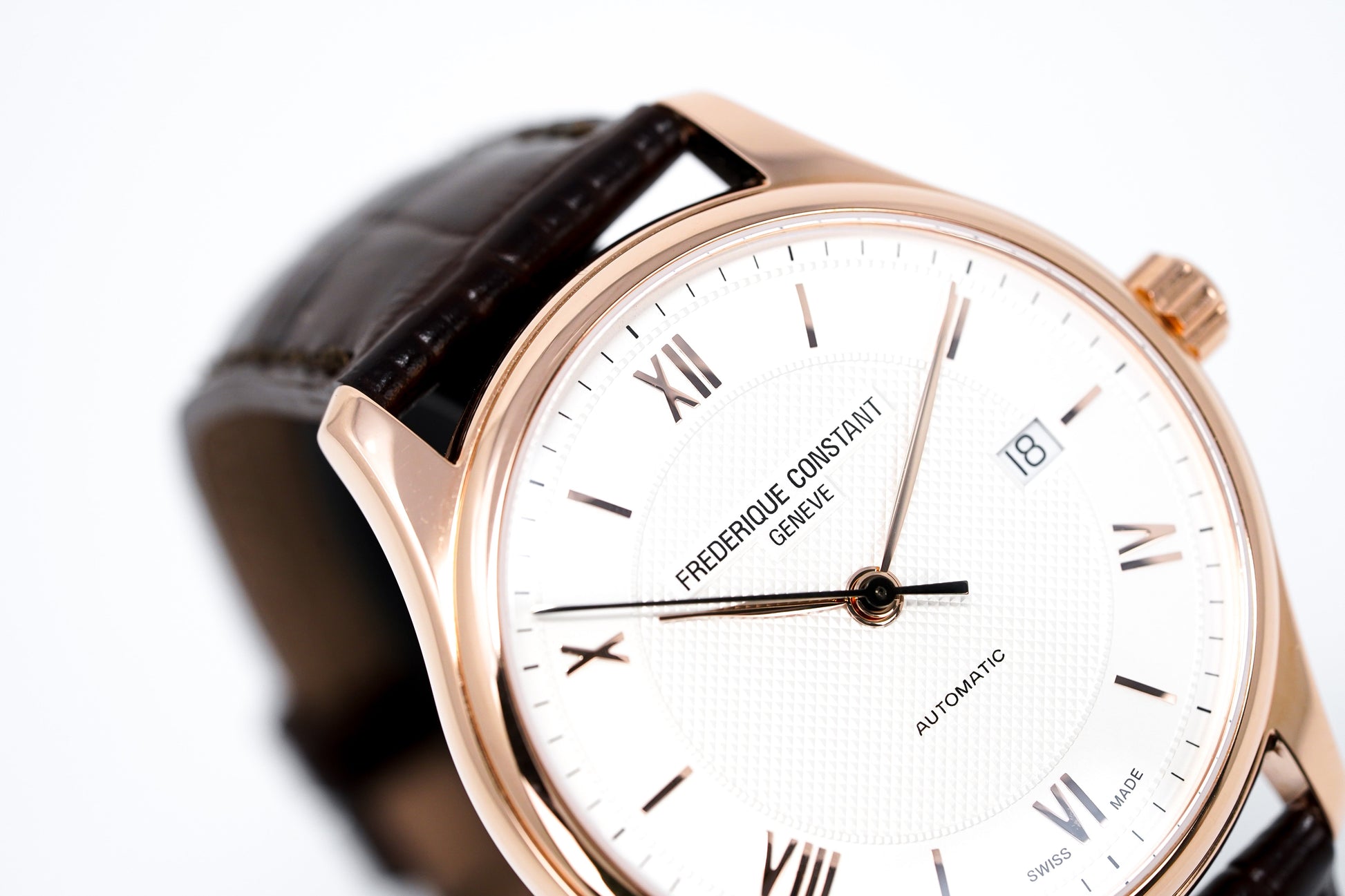 Swiss Made Automatic Self-Winding Movement. Caliber FC-303. 26 Jewels. 28,800bph. Power Reserve of 38 Hours. Date.