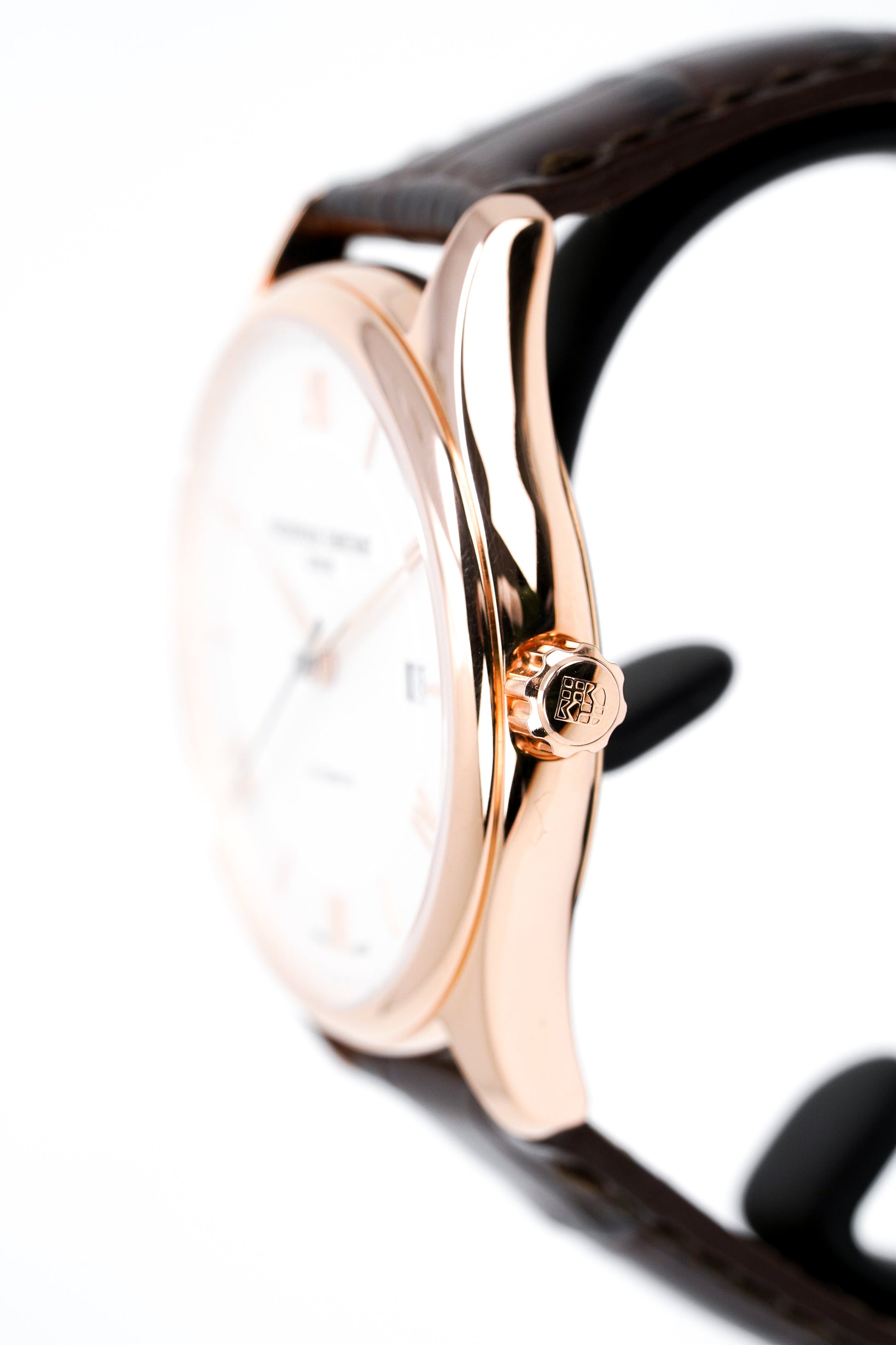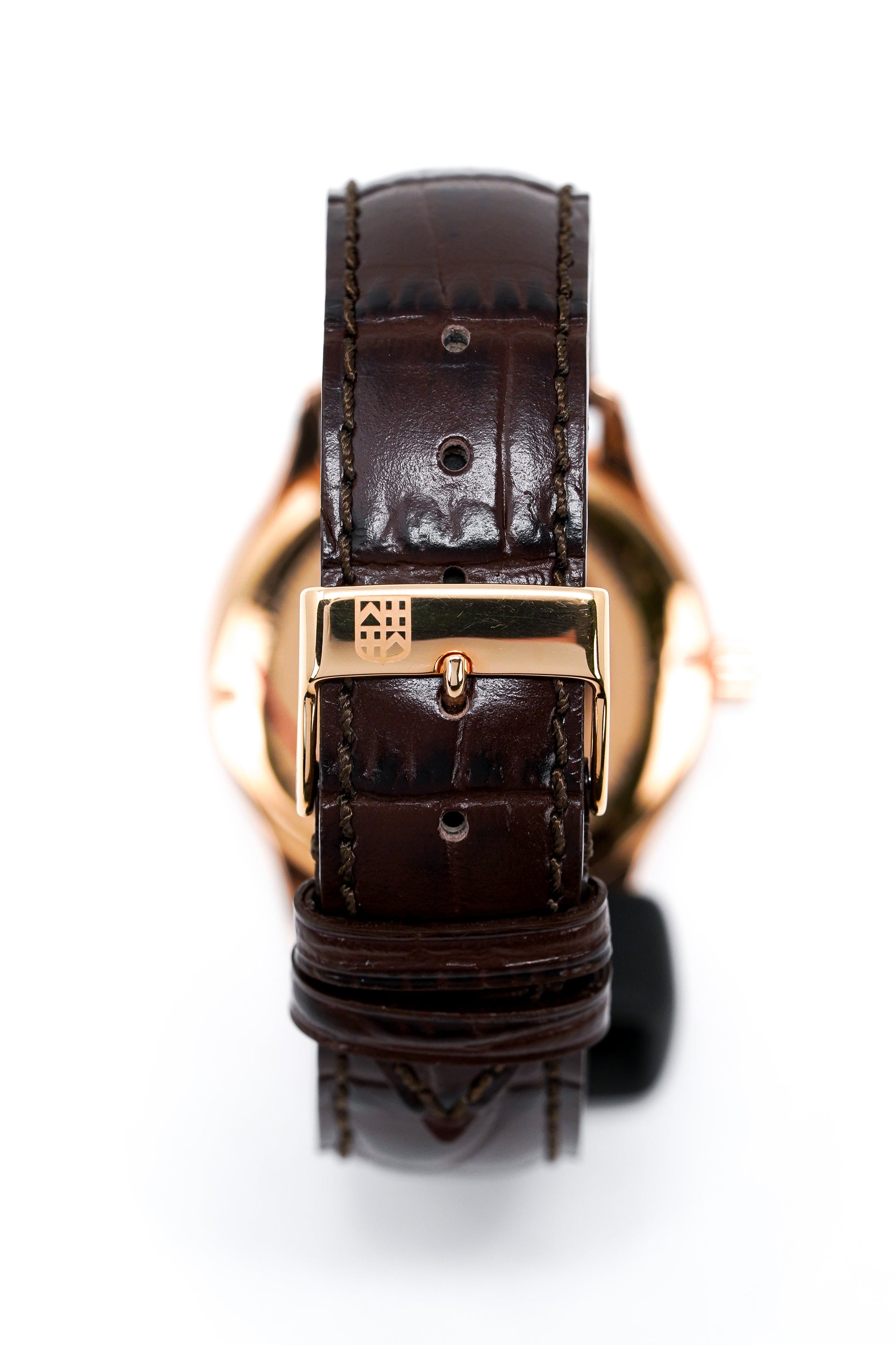 Brown Leather Strap with Rose Gold Plated Pin Buckle.
