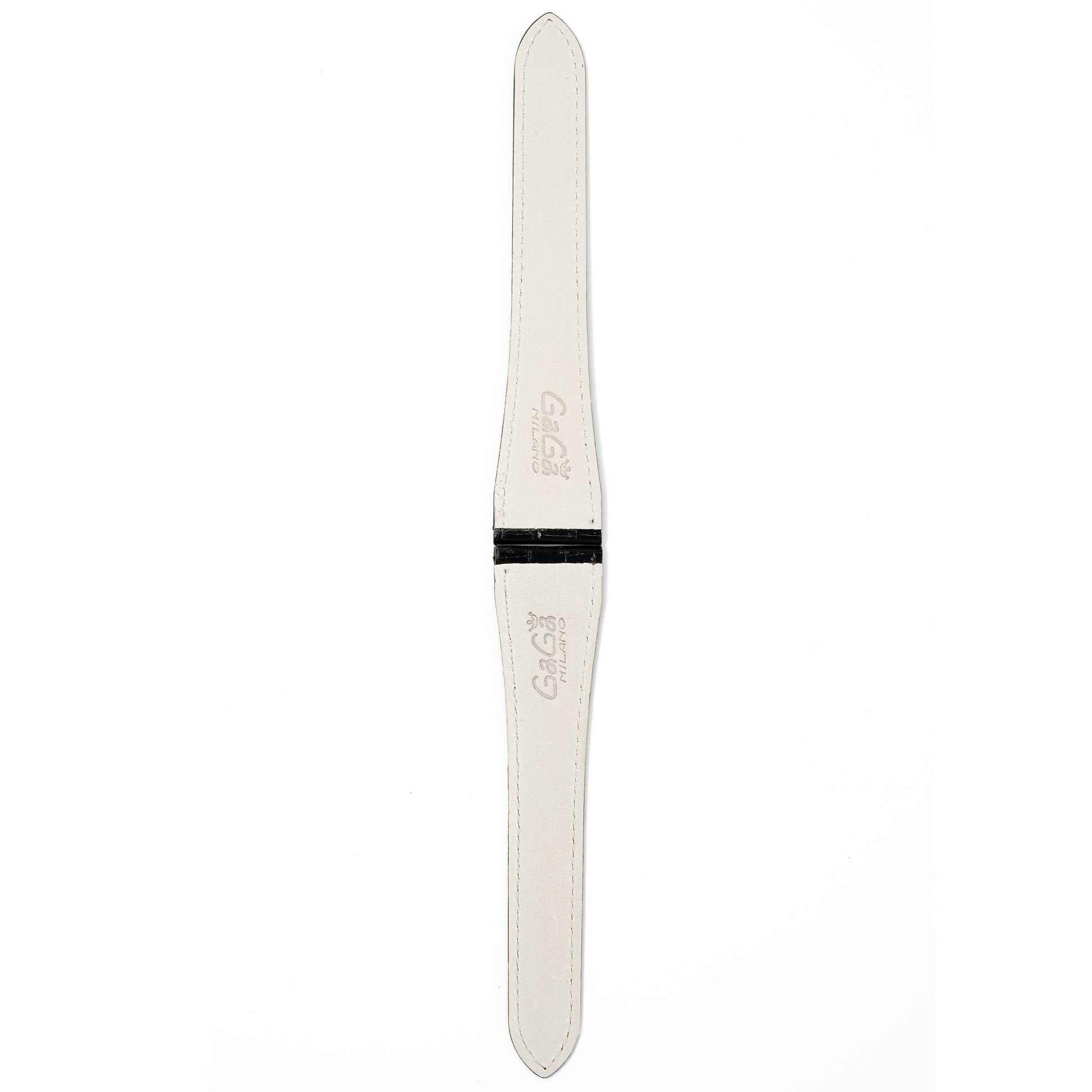 23/15mm width x 23cm Length Black Lizard Handmade in Italy Leather Strap with Orange Stitchings.