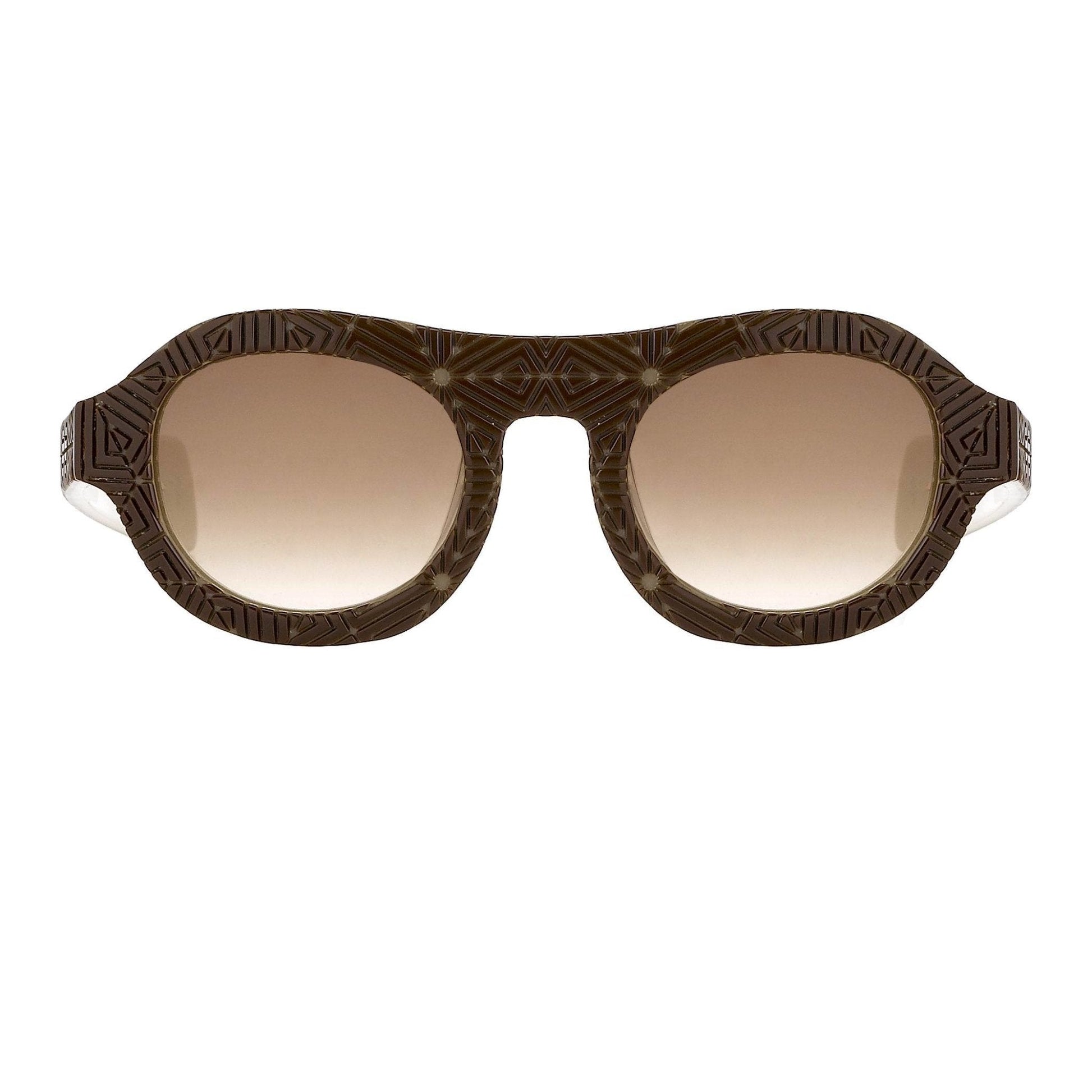 David David Sunglasses Round Solid Brown Mink Cream and Brown