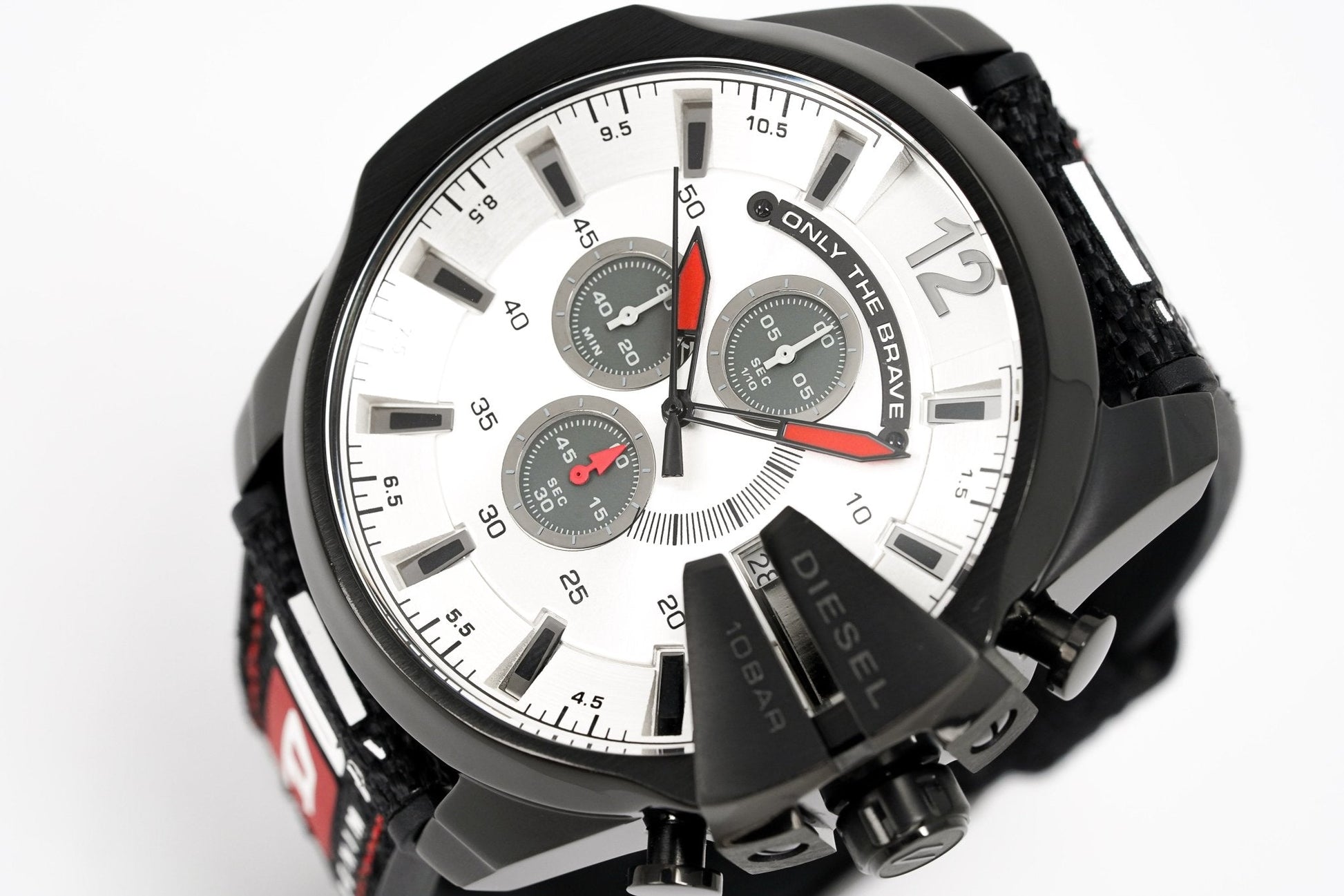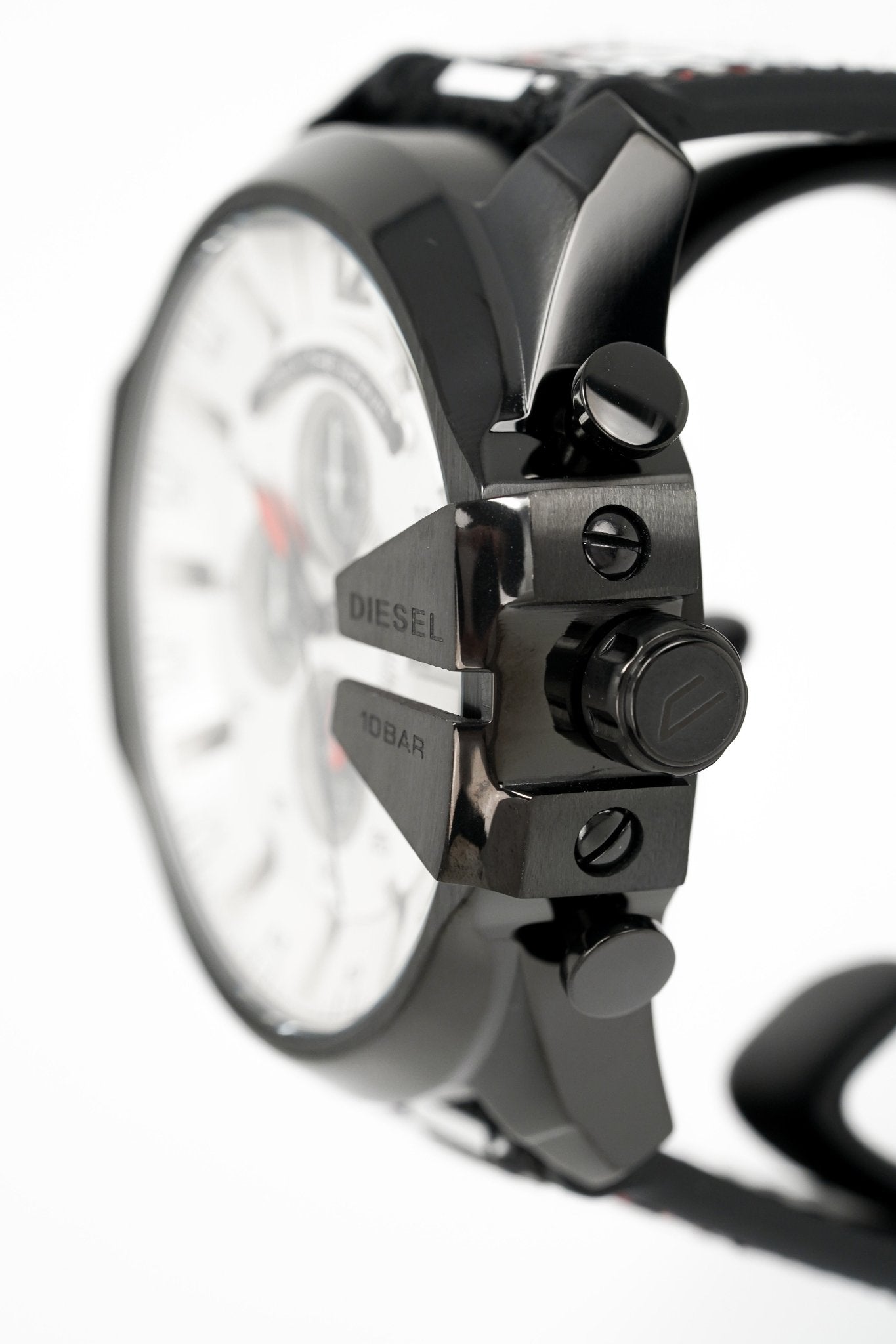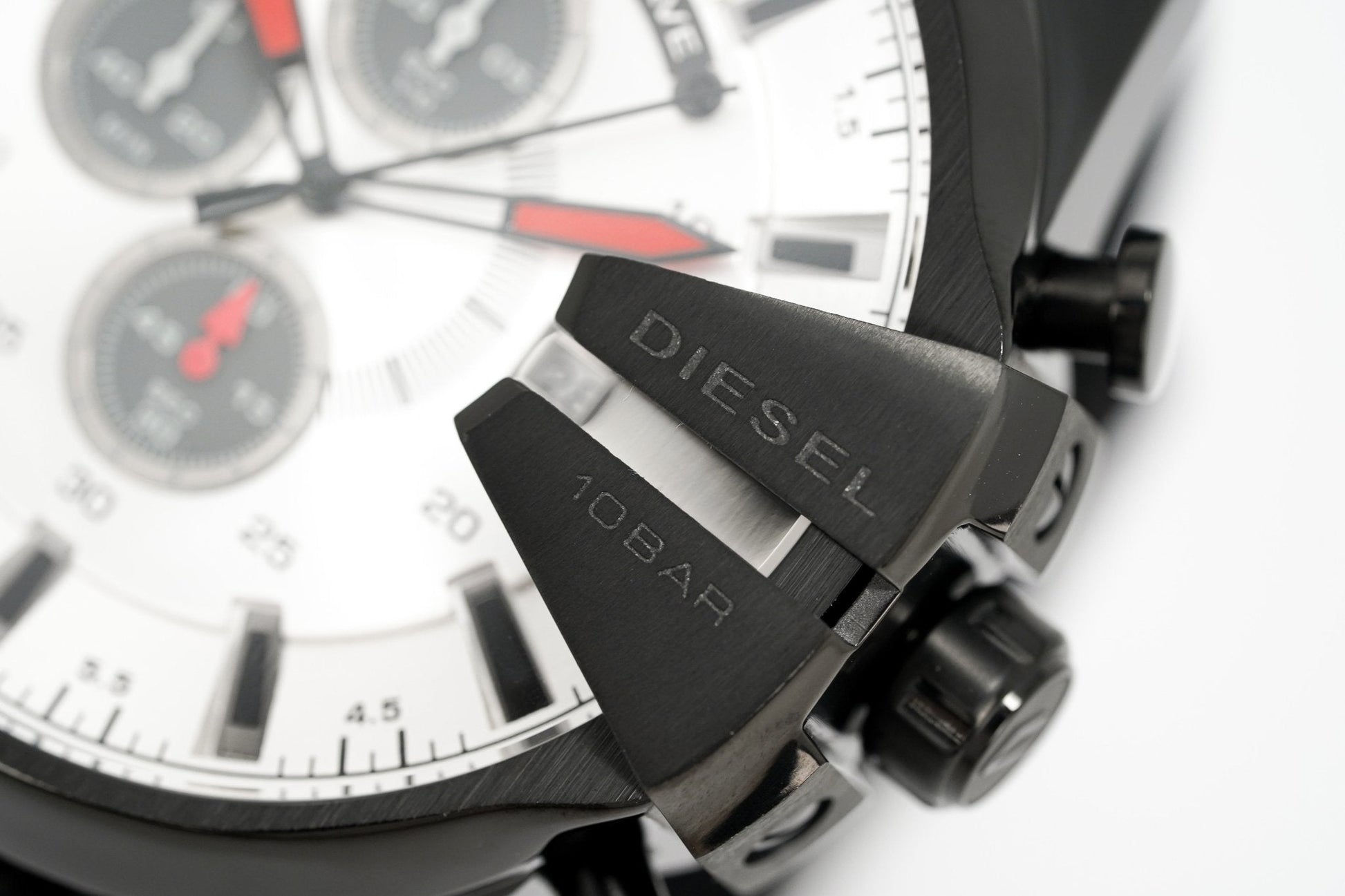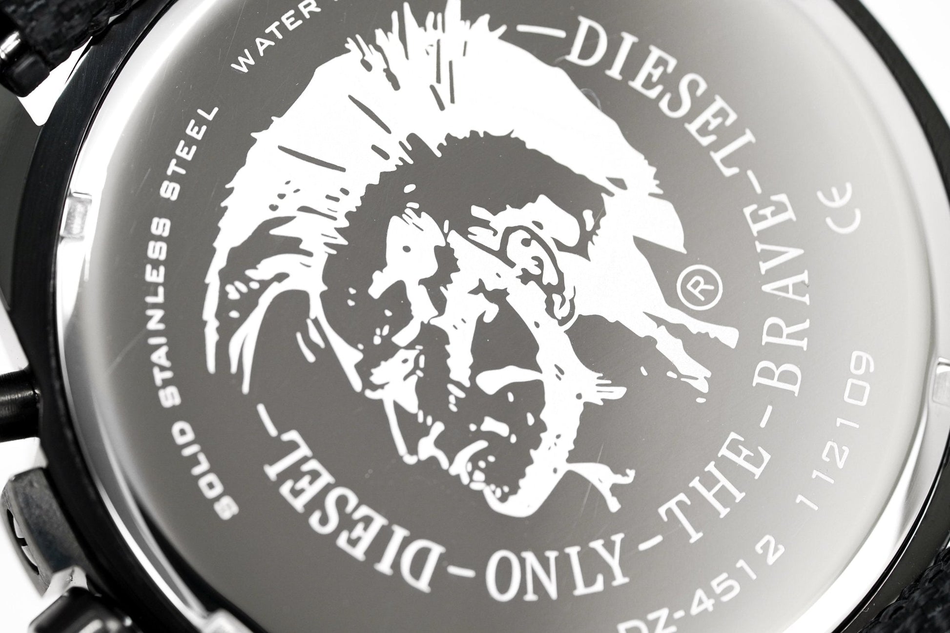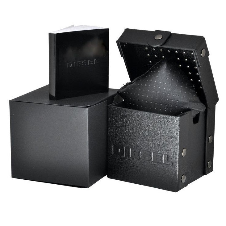 52mm x 12mm IP Black 316L Stainless Steel Case with a Polished and Brushed Finish - Fixed IP Black Stainless Steel Bezel with Diesel Engraved - Solid Stainless Steel Caseback - Scratch Resistant Mineral Crystal Glass.