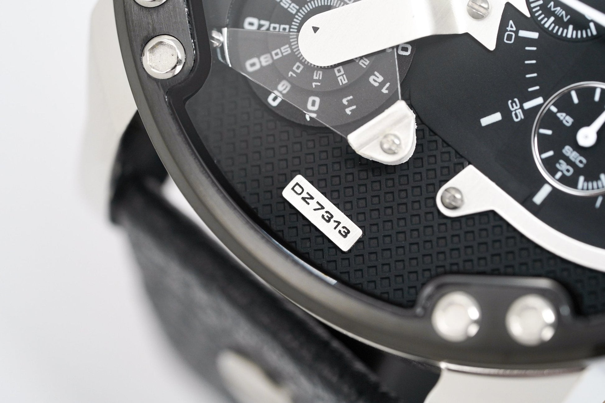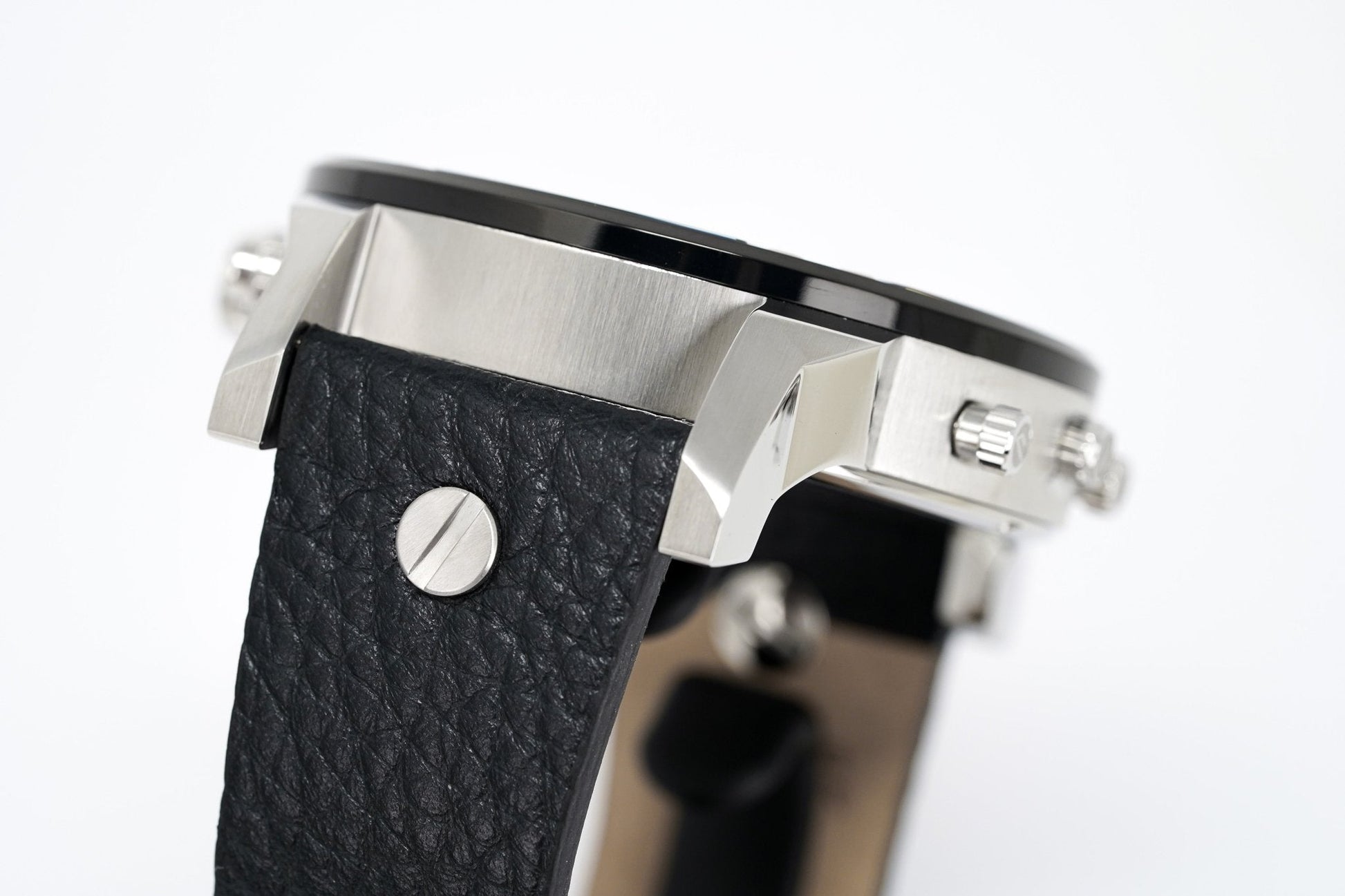 57mm x 14mm 316L Stainless Steel Case with a Polished and Brushed Finish - Fixed Black PVD Stainless Steel Bezel with Bolt Accents - Solid Stainless Steel Caseback - Scratch Resistant Mineral Crystal Glass.
