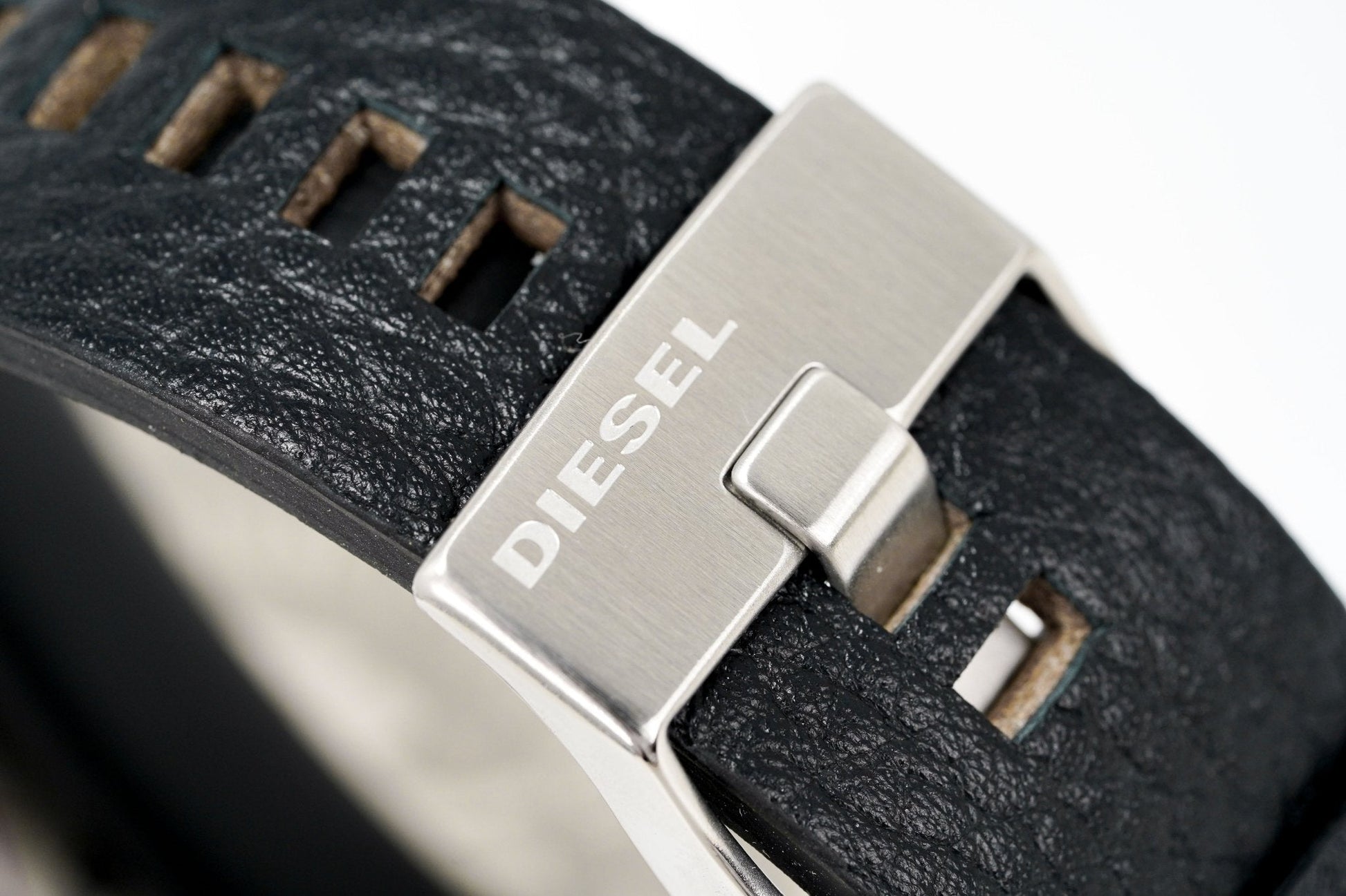 Black Leather Strap with Stainless Steel Pin Buckle.