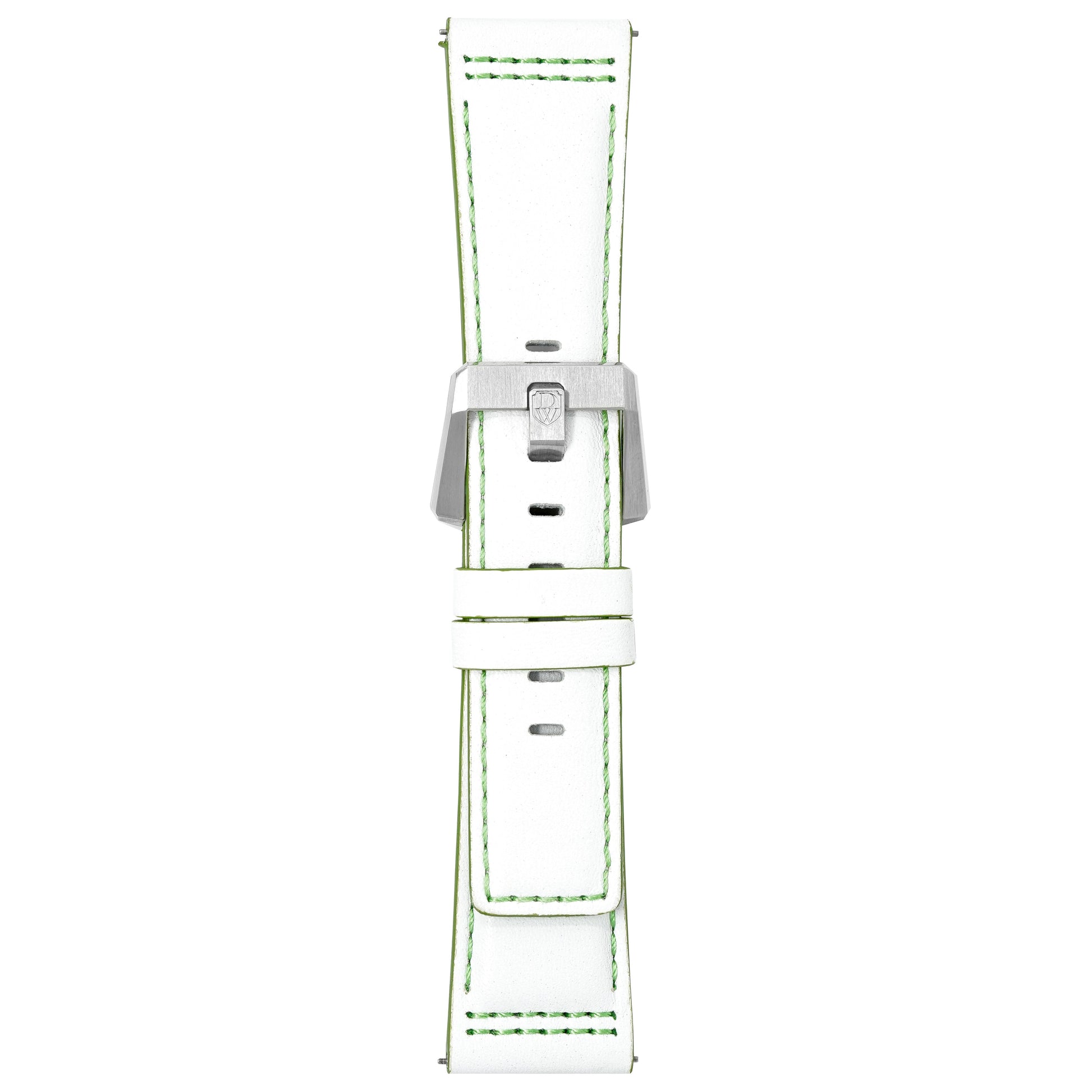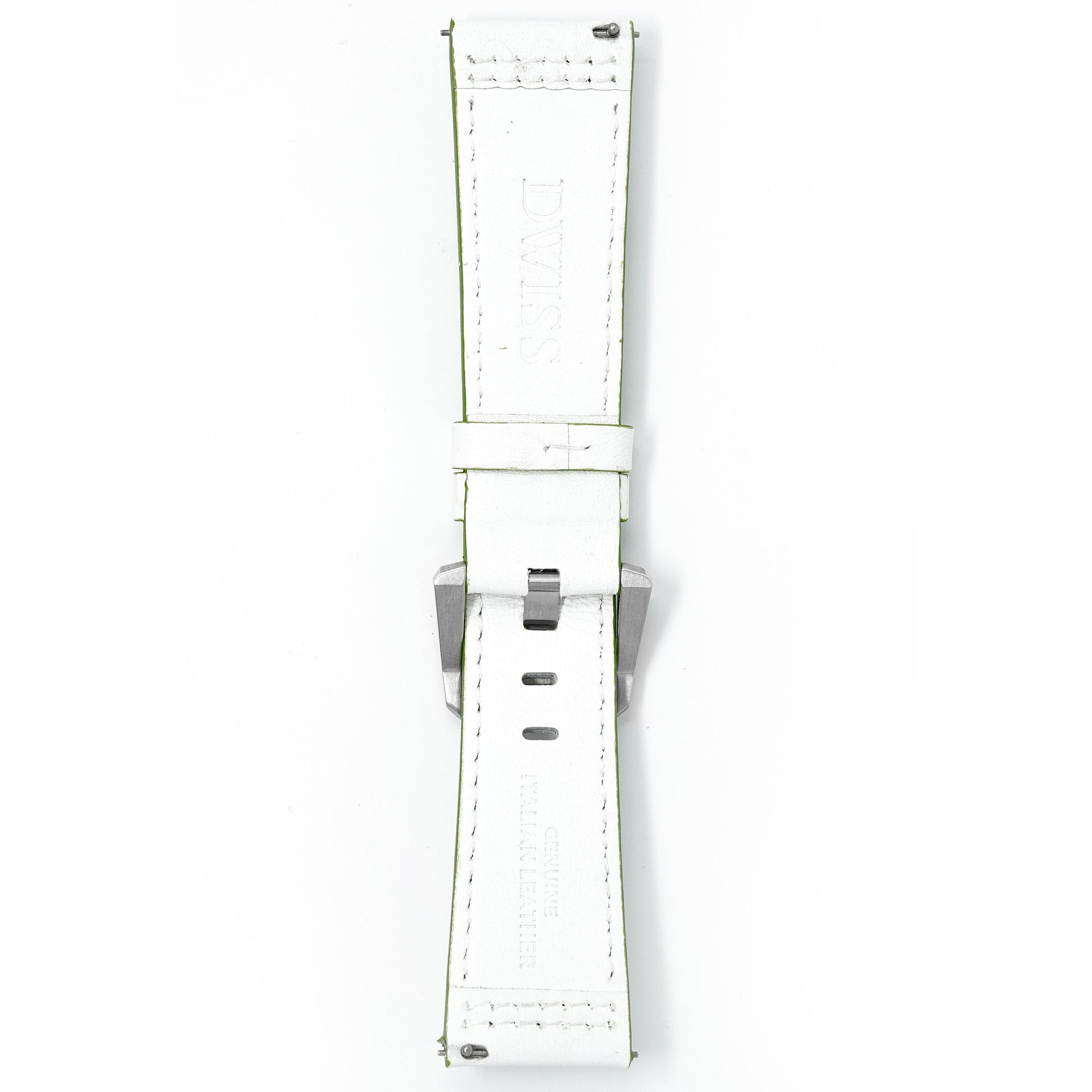 24/20mm width x 21cm Length White Genuine Italian Leather Strap with Green Stitchings - Fitted With a Stainless Steel Buckle.