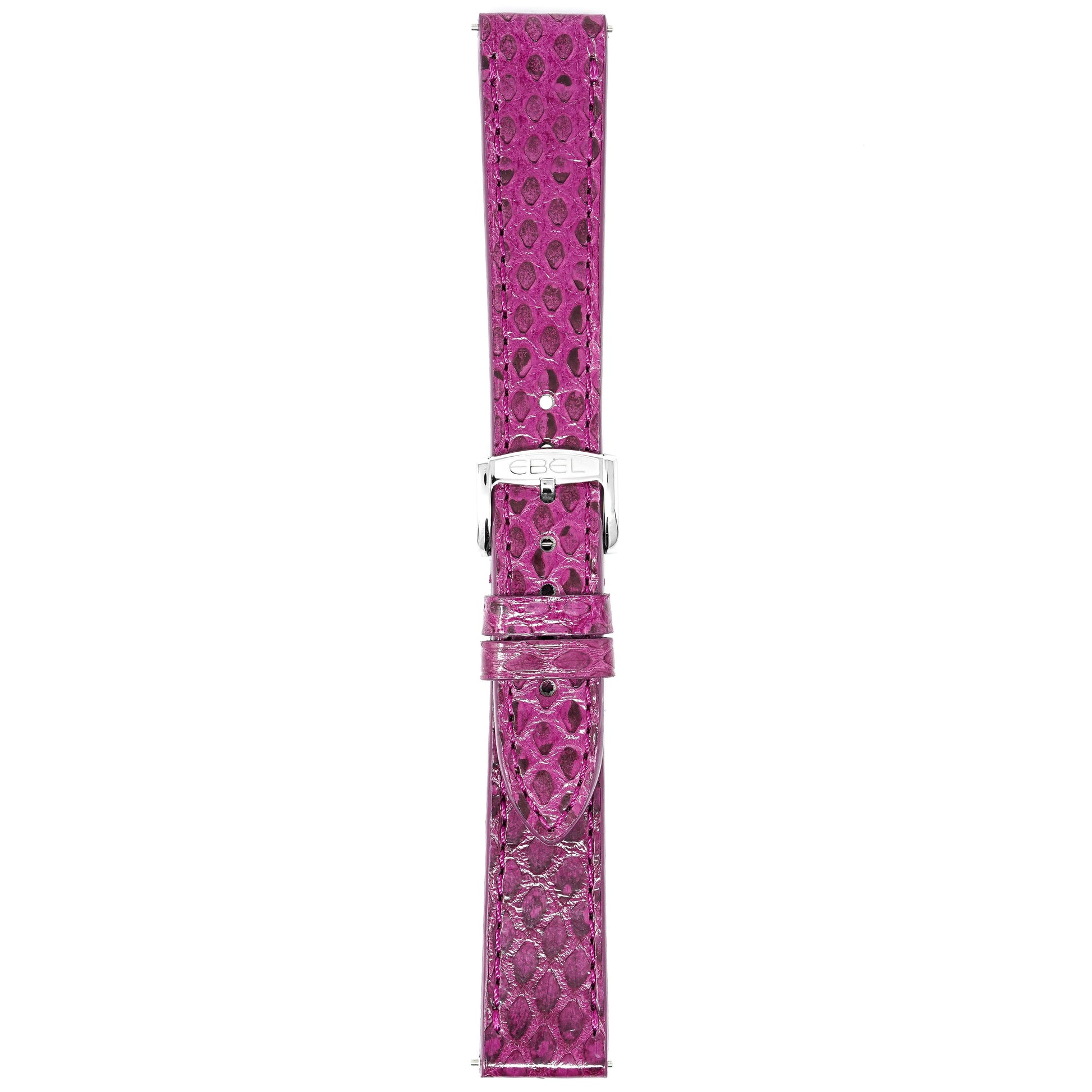 16/14mm width x 18cm Length Purple Lizard Leather Strap with Purple Stitchings - Fitted With a Stainless Steel Buckle.
