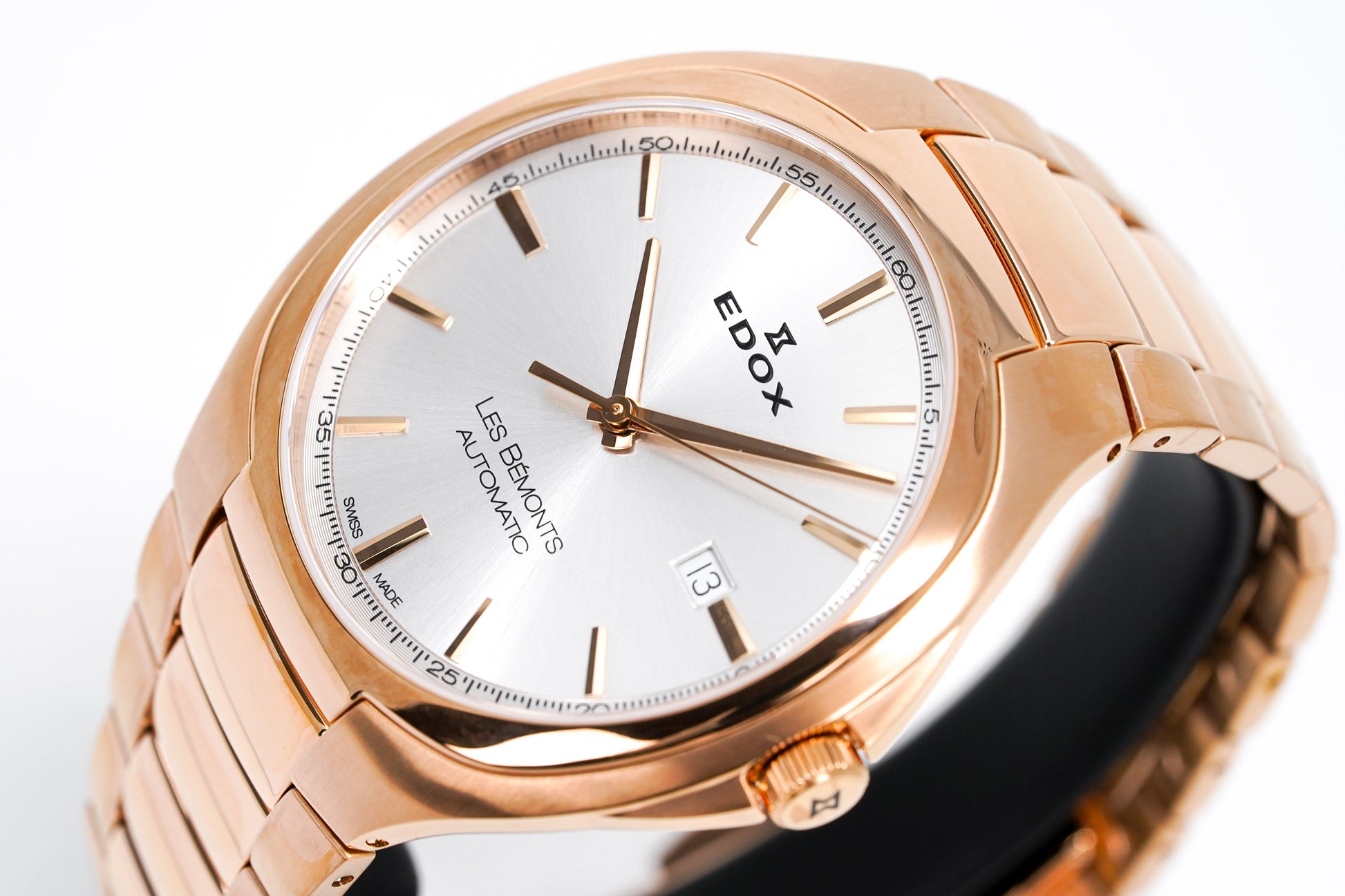 Silver Dial - Rose Gold PVD Baton Hands and Hour Indices - Date at 3 O'Clock.