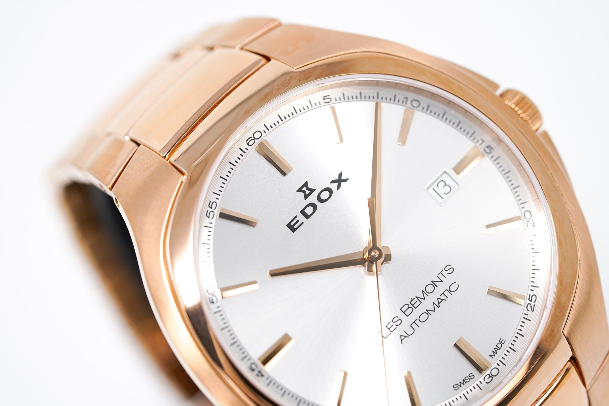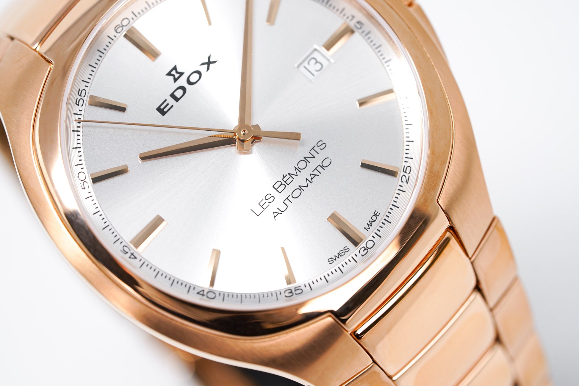 Edox Men's Automatic Watch Les Bèmonts Ultra Slim Silver Rose Gold 42mm 80114 37R AIR