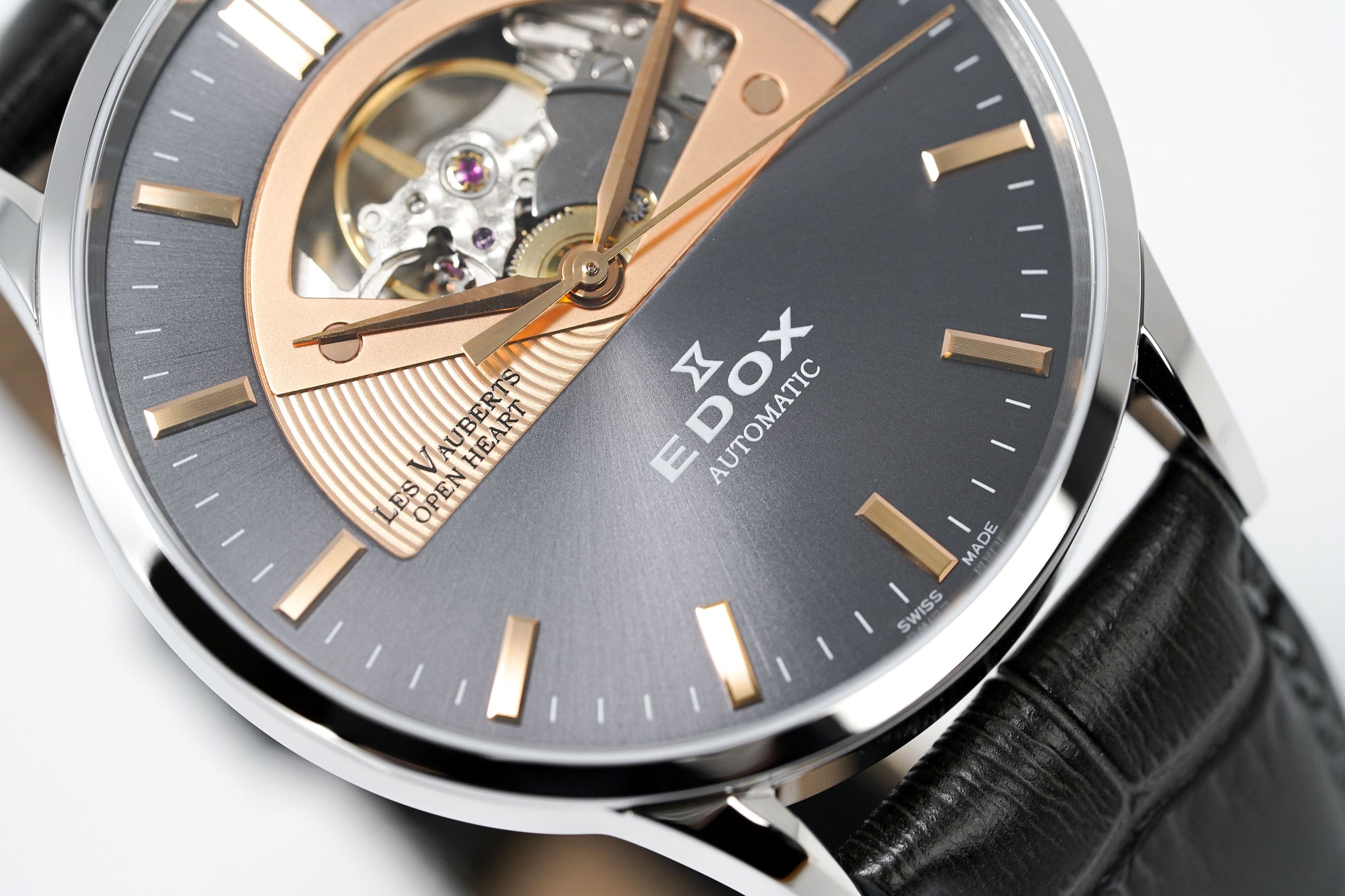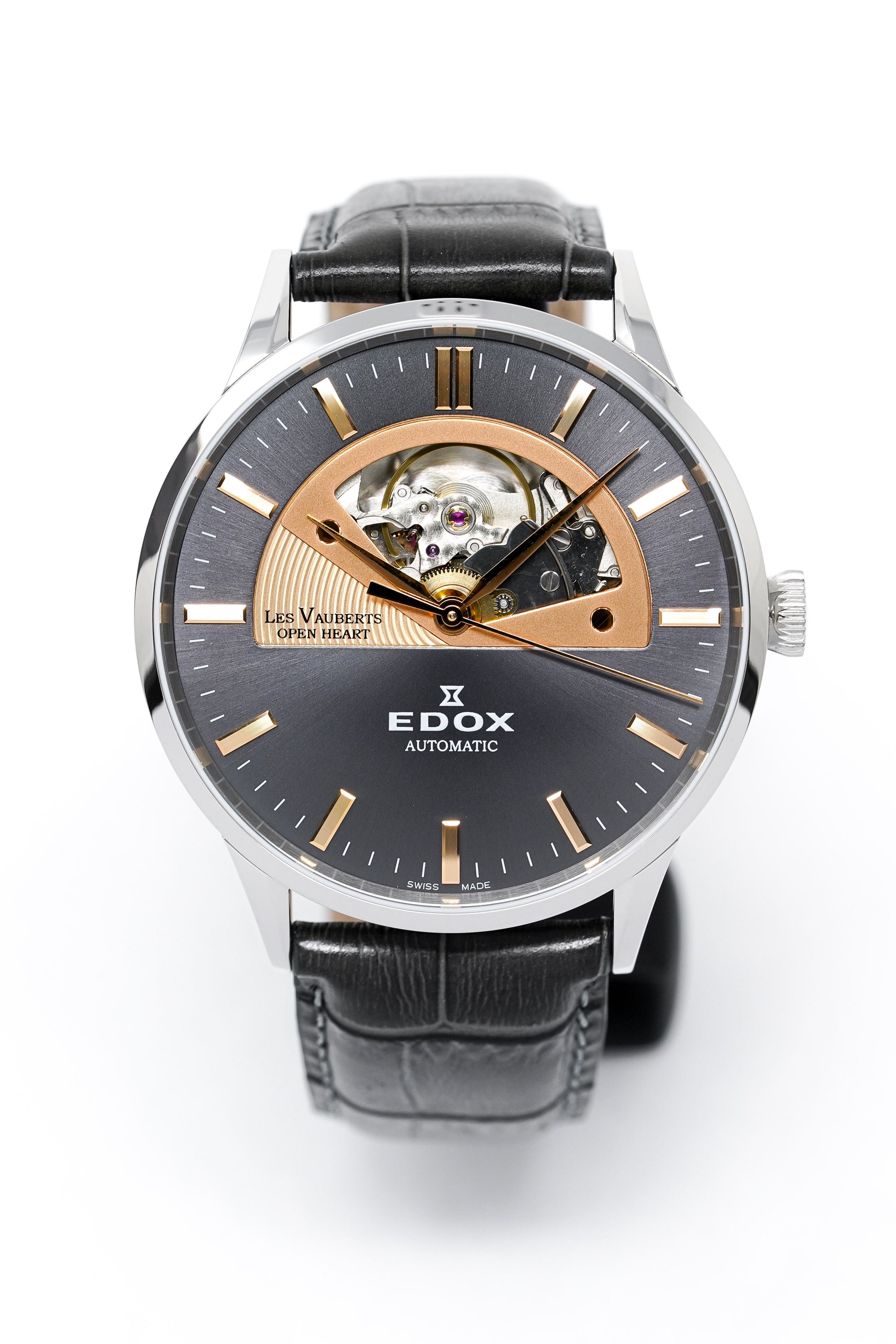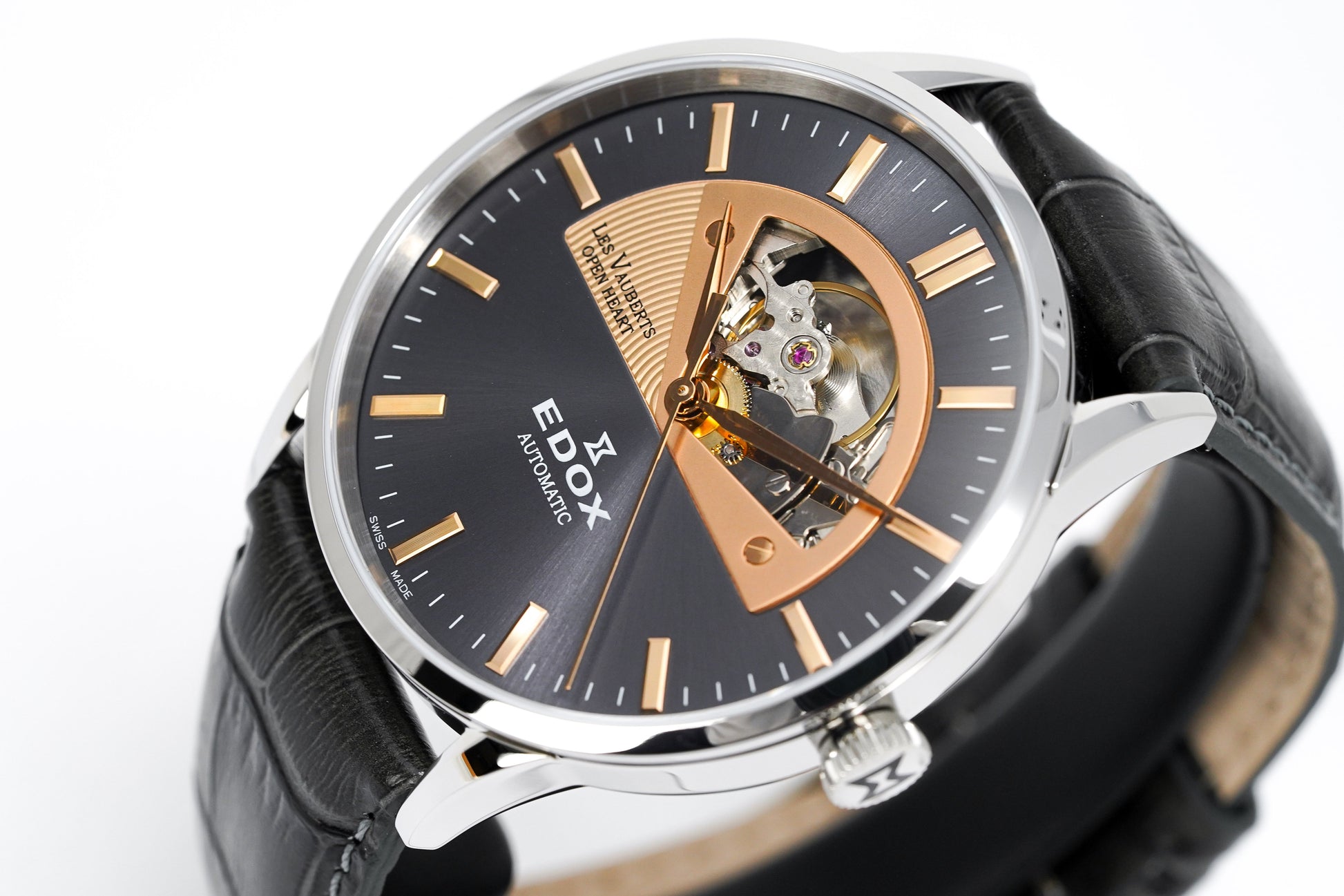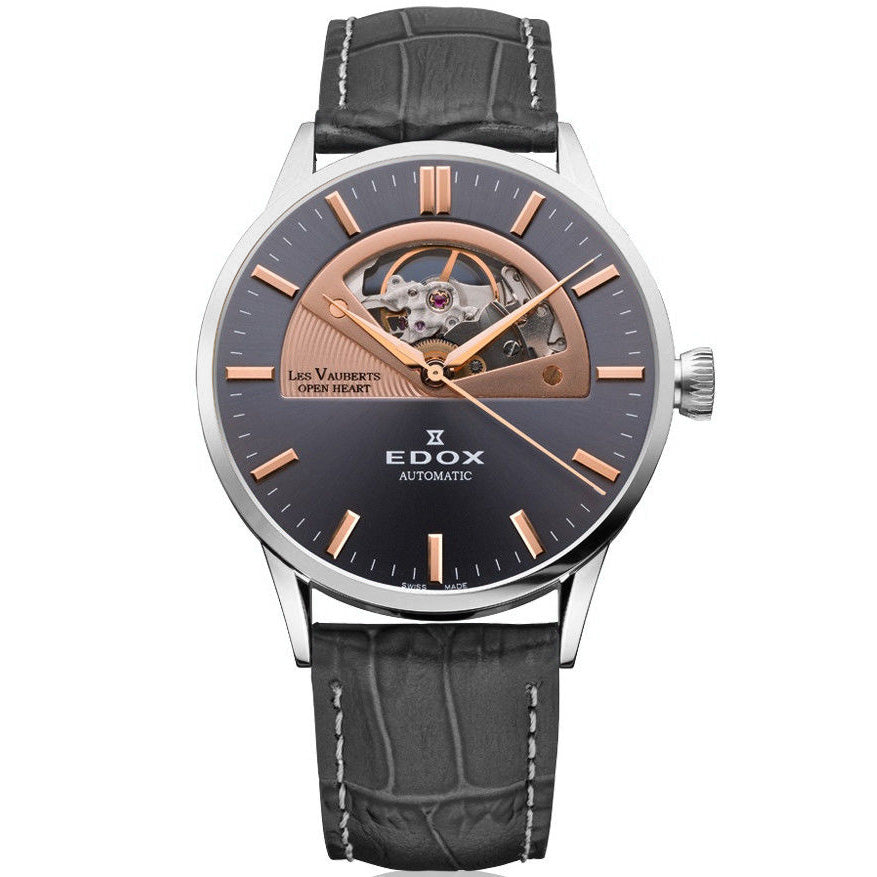 Edox Men's Automatic Watch Les Vauberts Open Heart Rose Gold 43mm 850143GIR