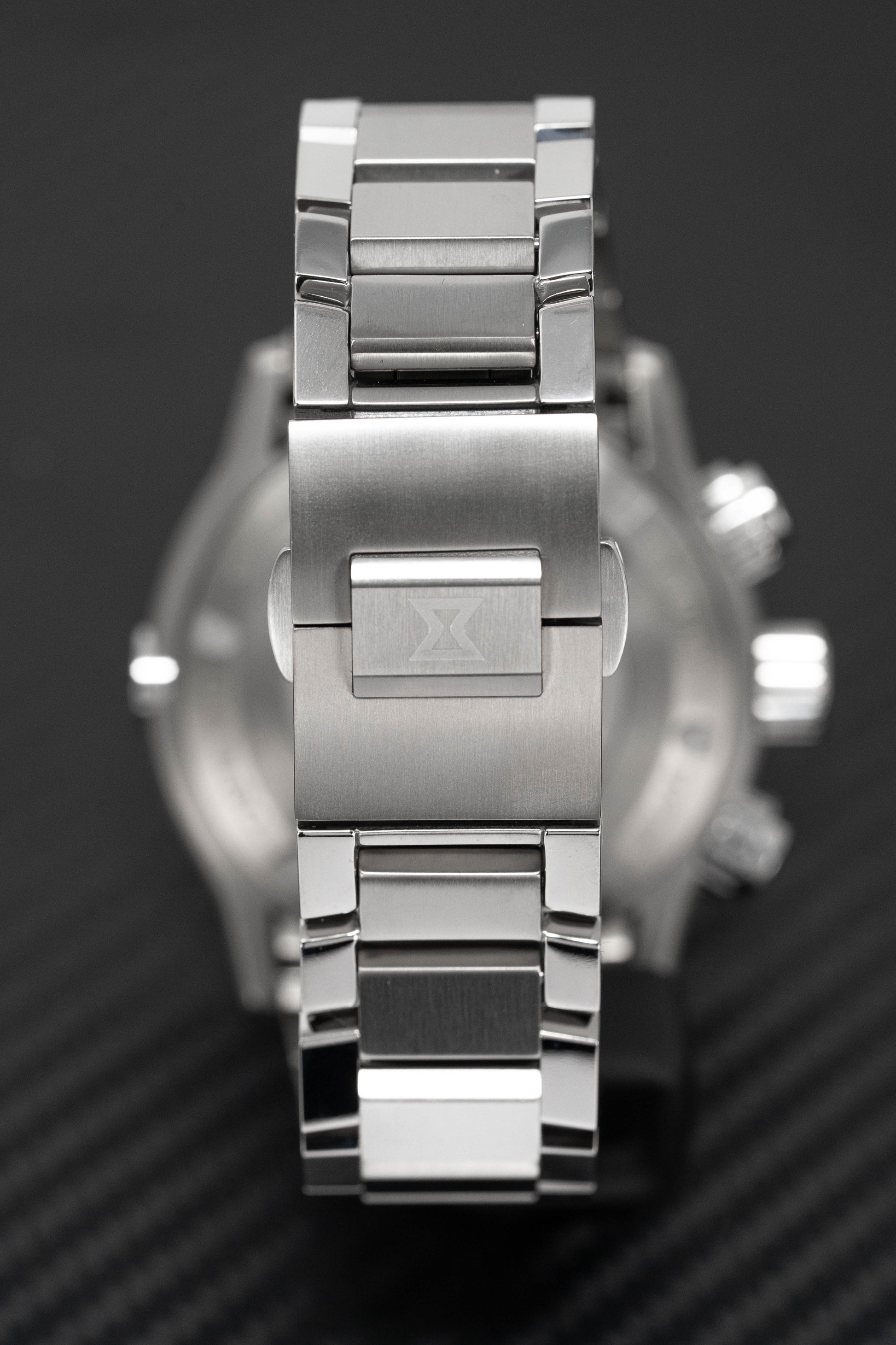 45mm x 15.5mm Titanium Case - 3mm Thick Scratch Resistant Sapphire Crystal - Solid Caseback - Screw Down Crown - Rotating Ceramic Black Bezel -Double O'Ring - Helium Valve.