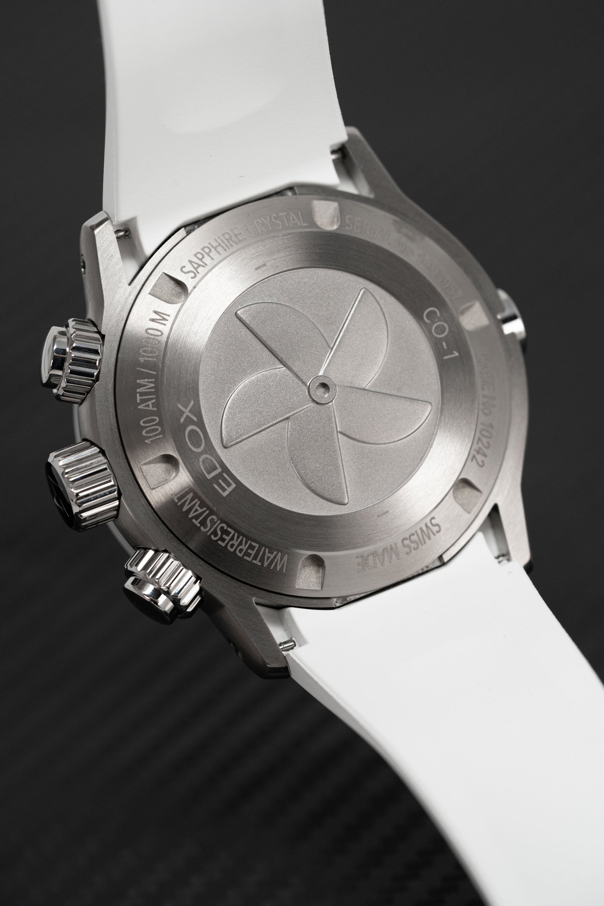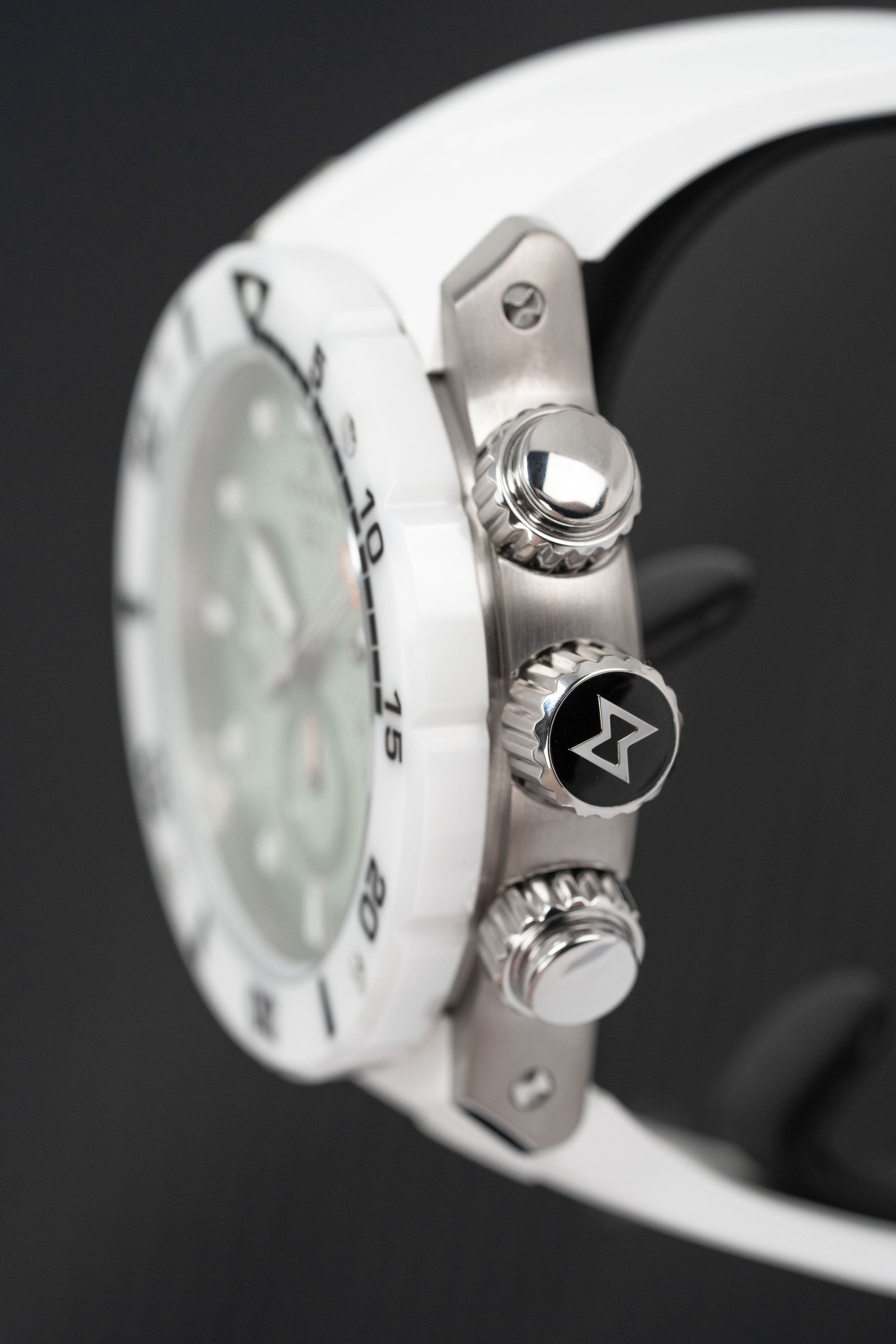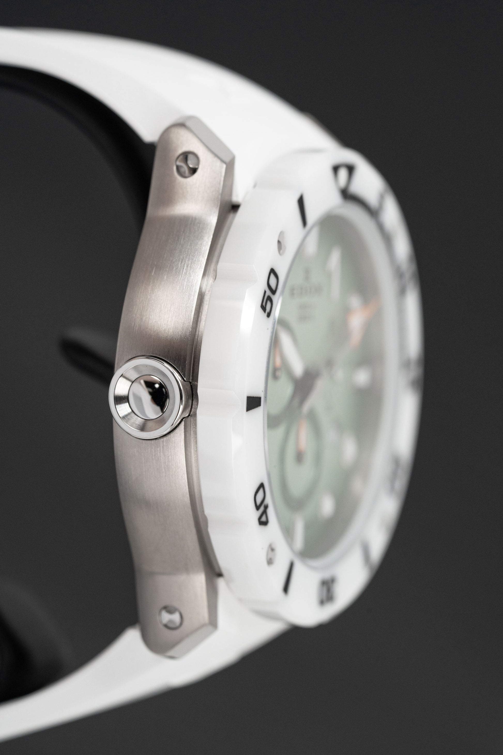 45mm x 15.5mm Titanium Case - Scratch Resistant Sapphire Crystal - Solid Caseback - Screw Down Crown - Rotating Ceramic White Bezel -Double O'Ring - Helium Valve.