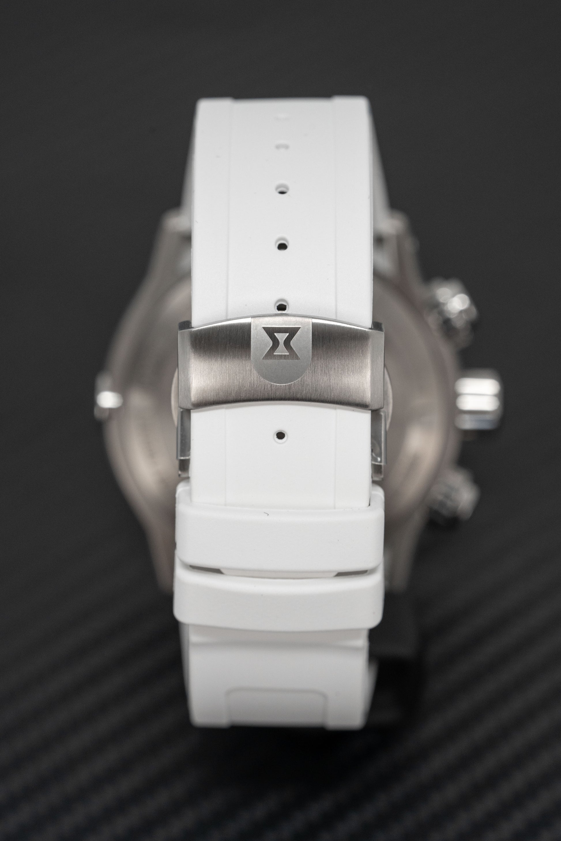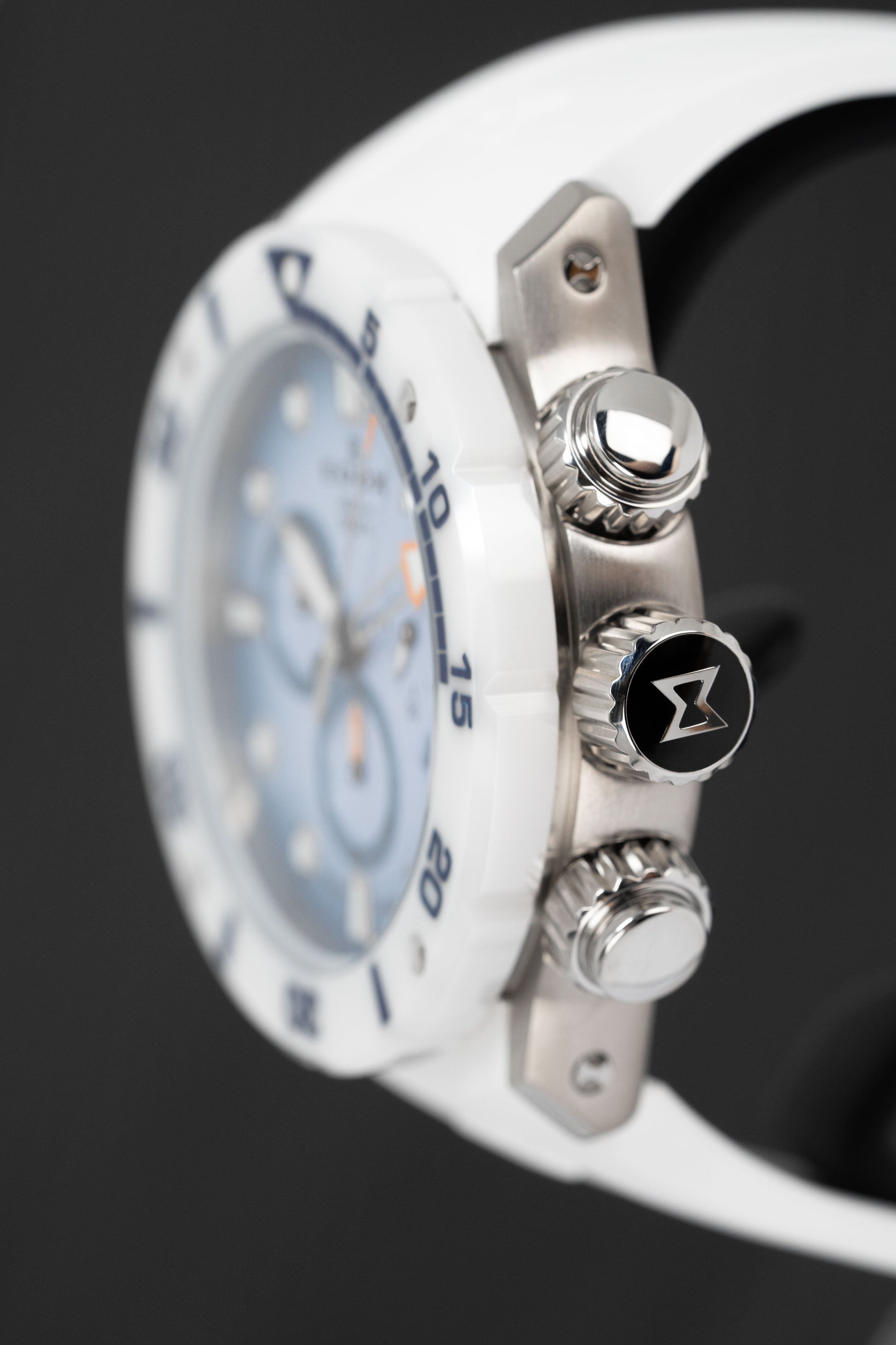 45mm x 15.5mm Titanium Case - Scratch Resistant Sapphire Crystal - Solid Caseback - Screw Down Crown - Rotating Ceramic White Bezel -Double O'Ring - Helium Valve.