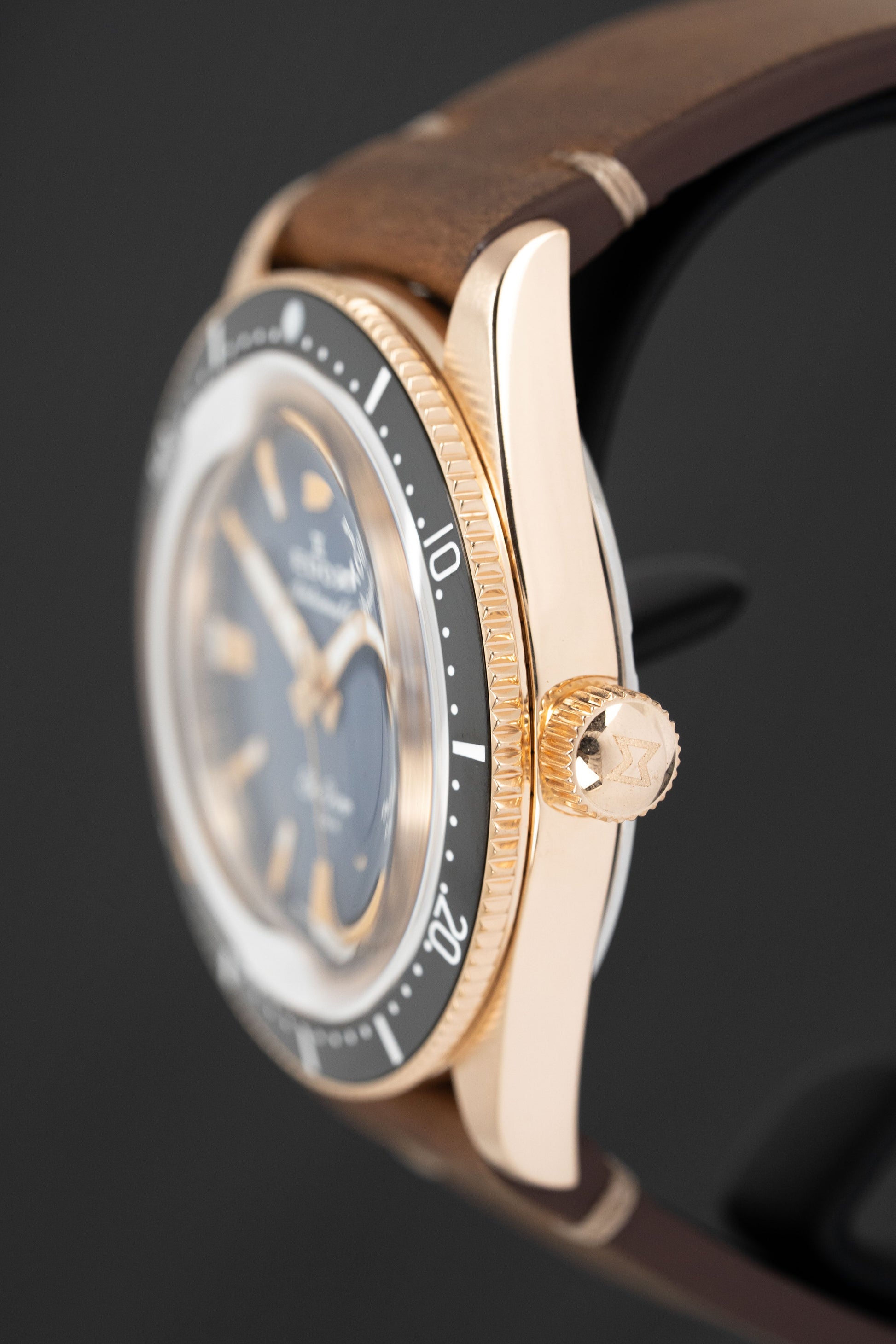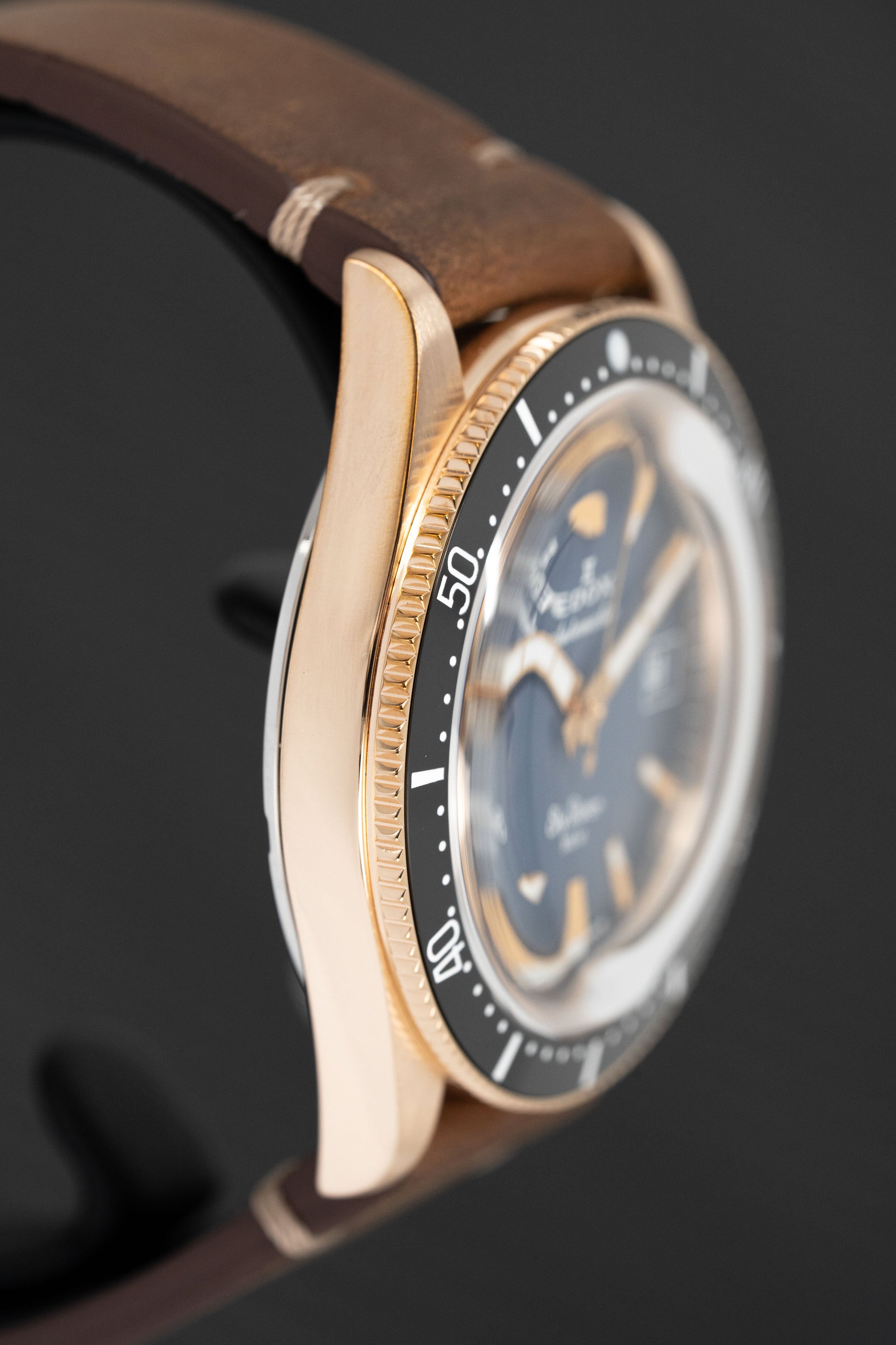 42mm x 14mm Bronze Case - Domed Sapphire Crystal Glass - Solid Caseback - Screw Down Crown - Double O'Ring - Helium Valve - Unidirectional Ceramic Bezel.