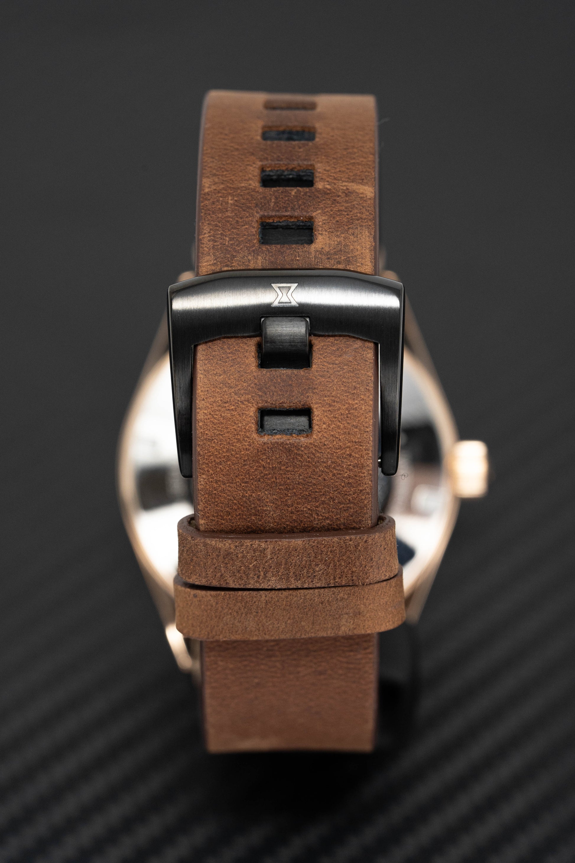 22mm Lug Width - Brown Leather Strap with Black PVD 316L Stainless Steel Pin Buckle - Extra Black Leather Strap - Limited Edition of 600 Pieces.
