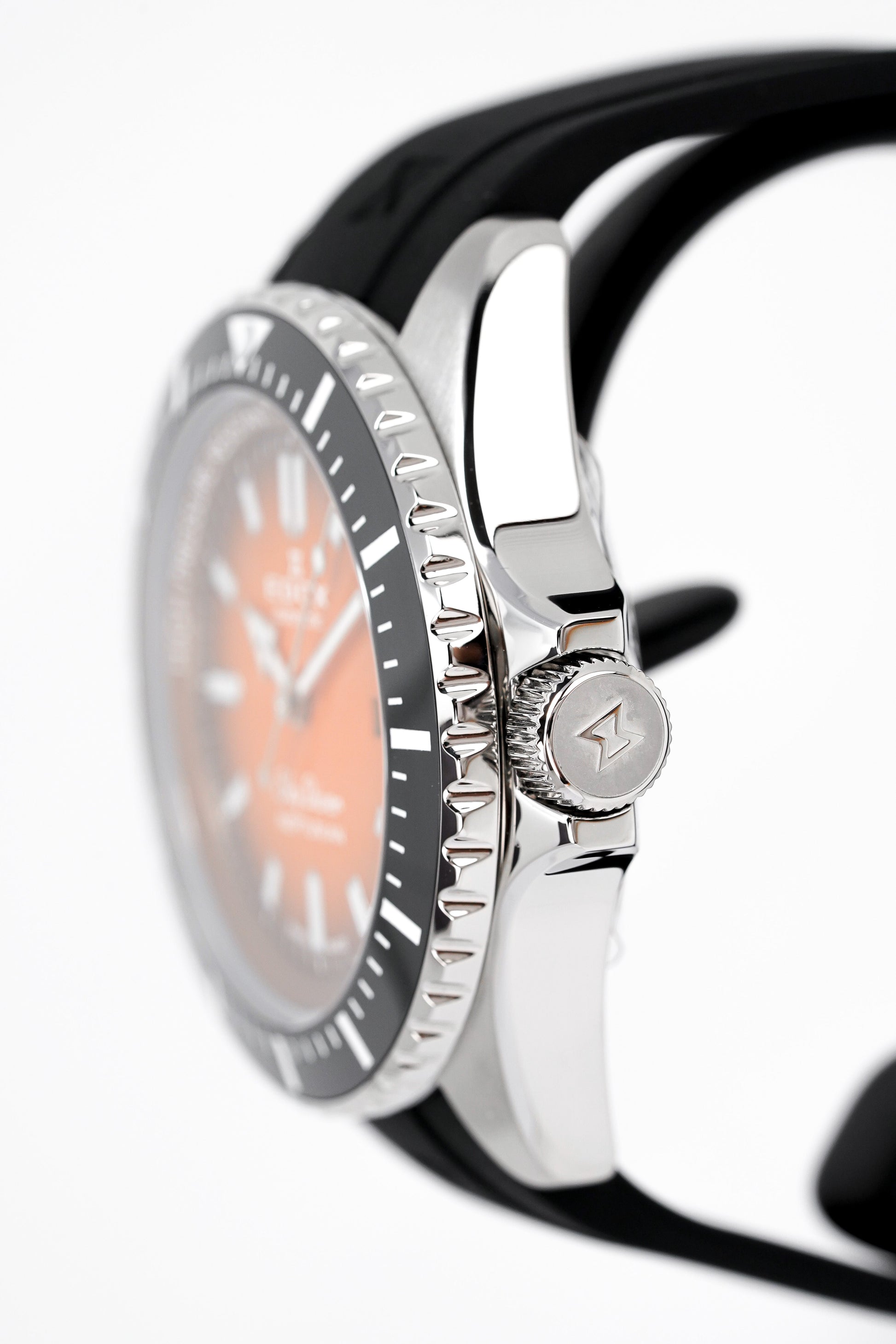 Orange Graduated Dial - Super-Luminova X1 Hour Indices and Hour, Minute, and Seconds Hand - Date at 3 O'Clock.