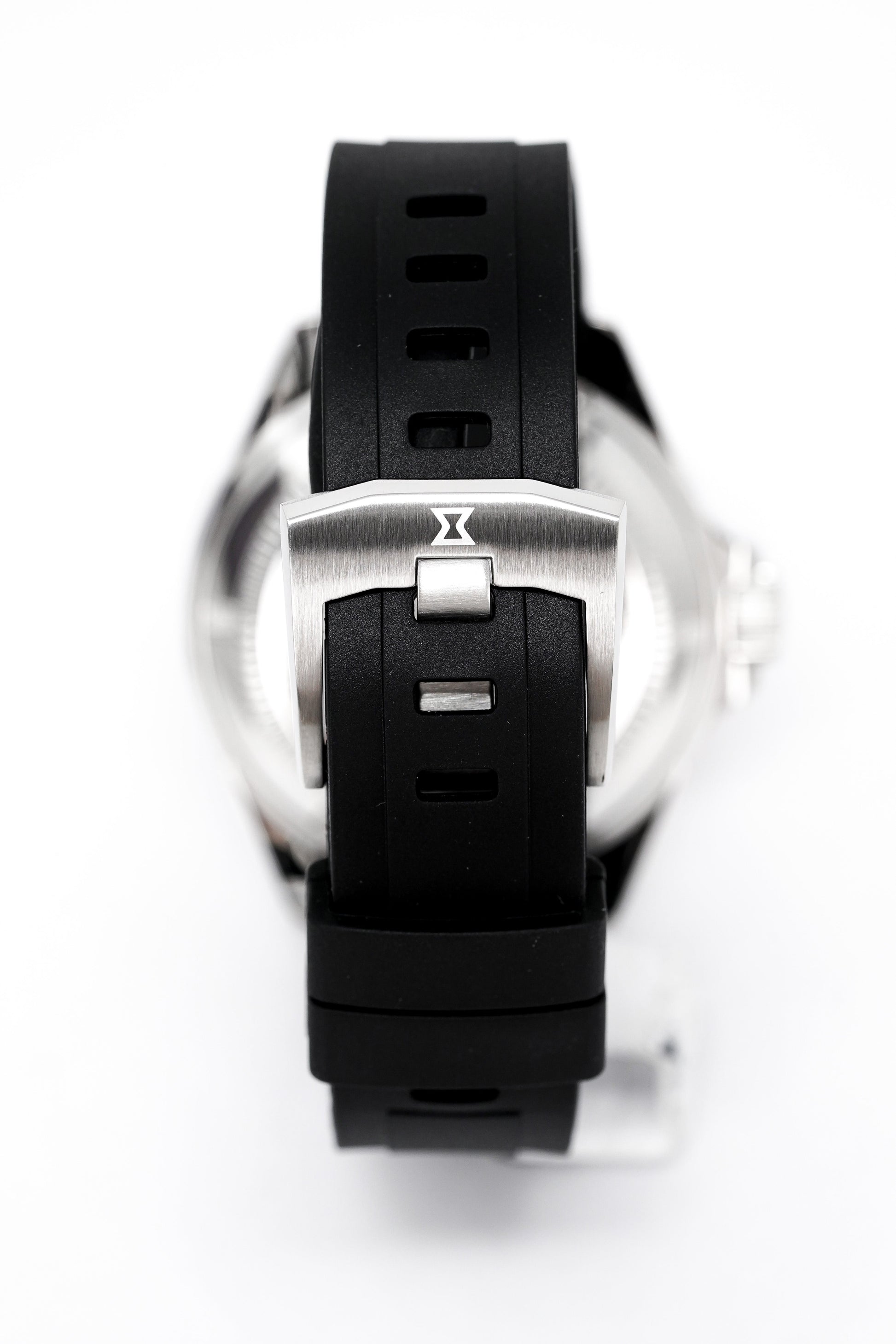 21mm Lug Width - Black Silicone Rubber Strap with 316L Stainless Steel Pin Buckle.
