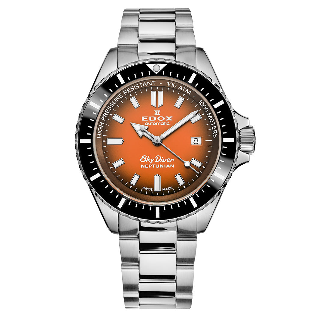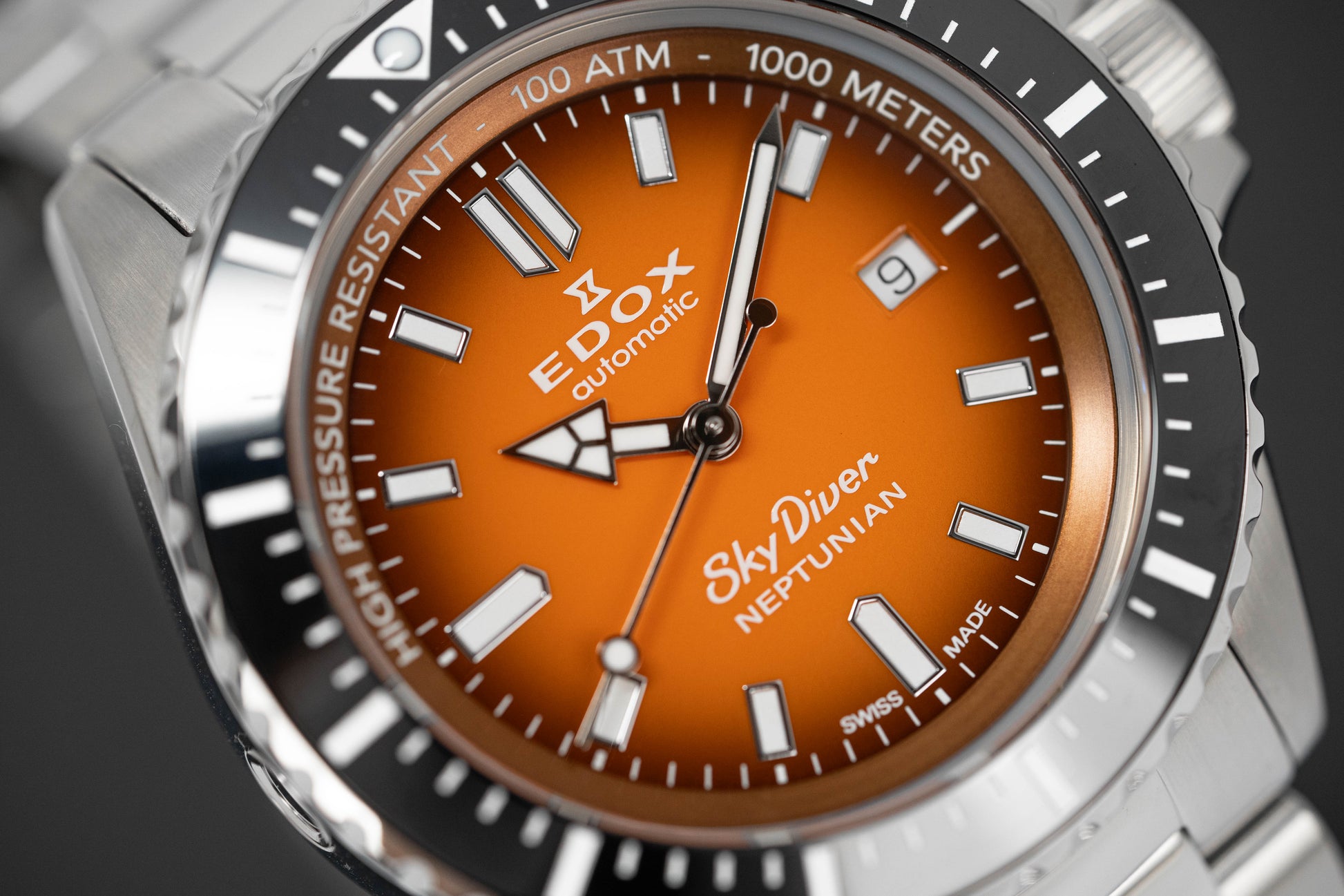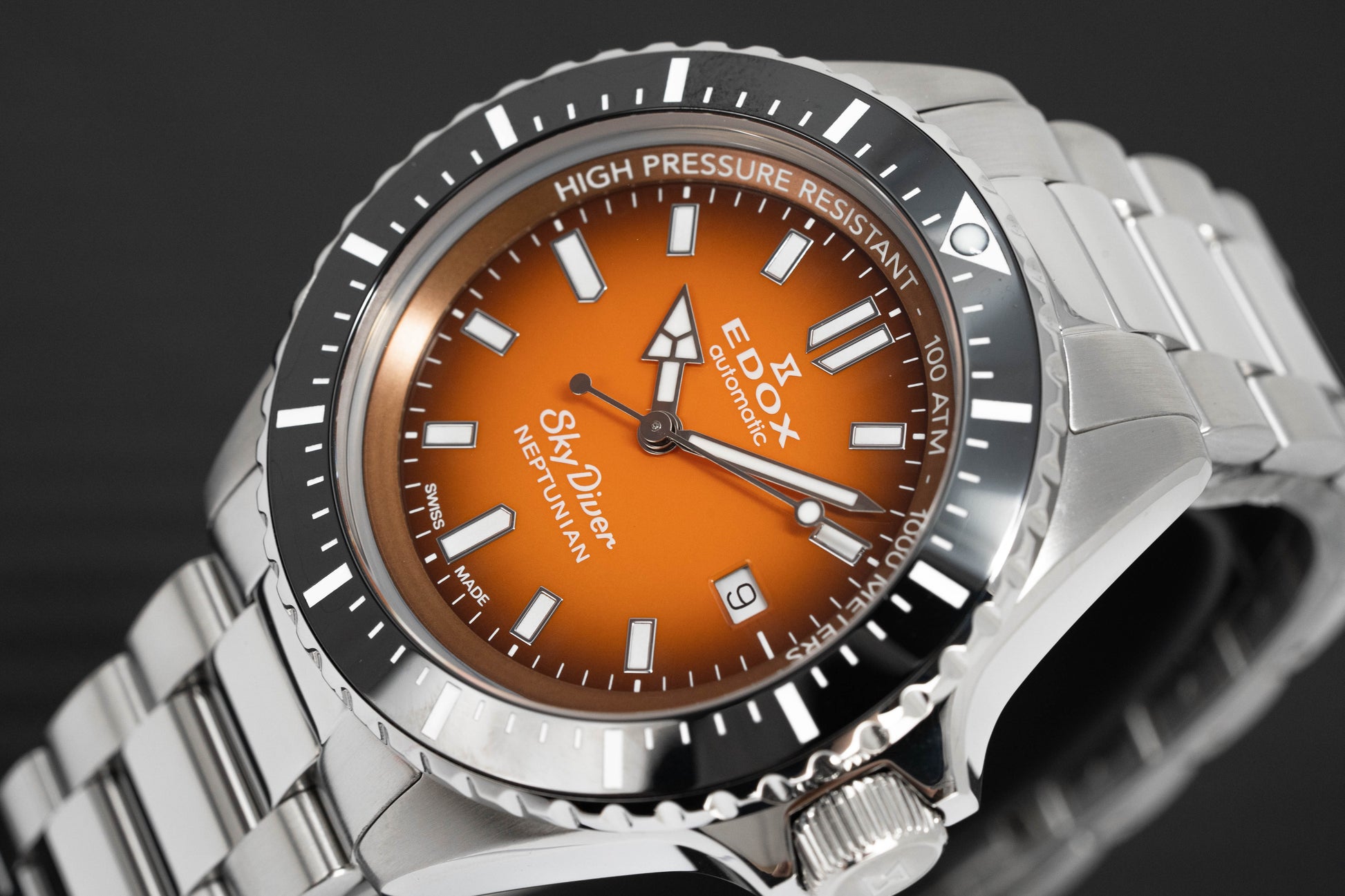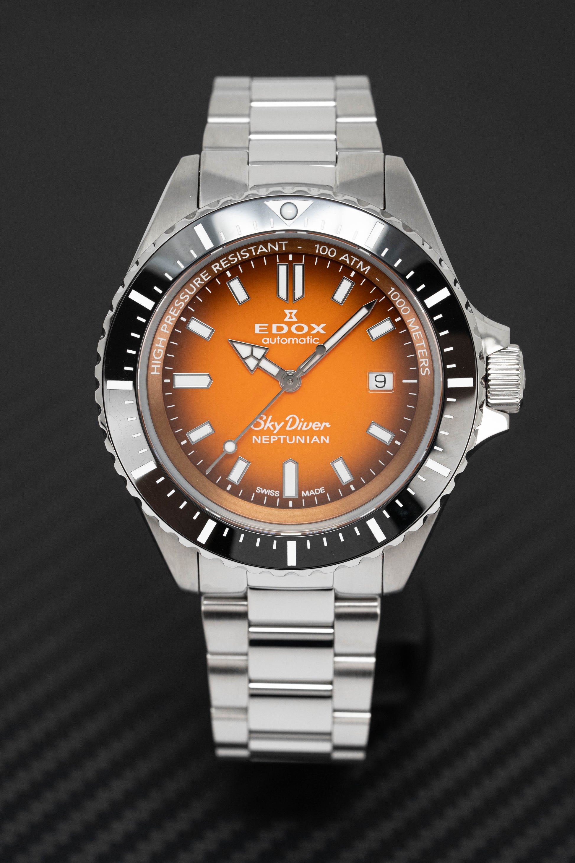 Edox Men's Watch Neptunian Sky Diver Automatic Steel Orange 80120-3NM-ODN