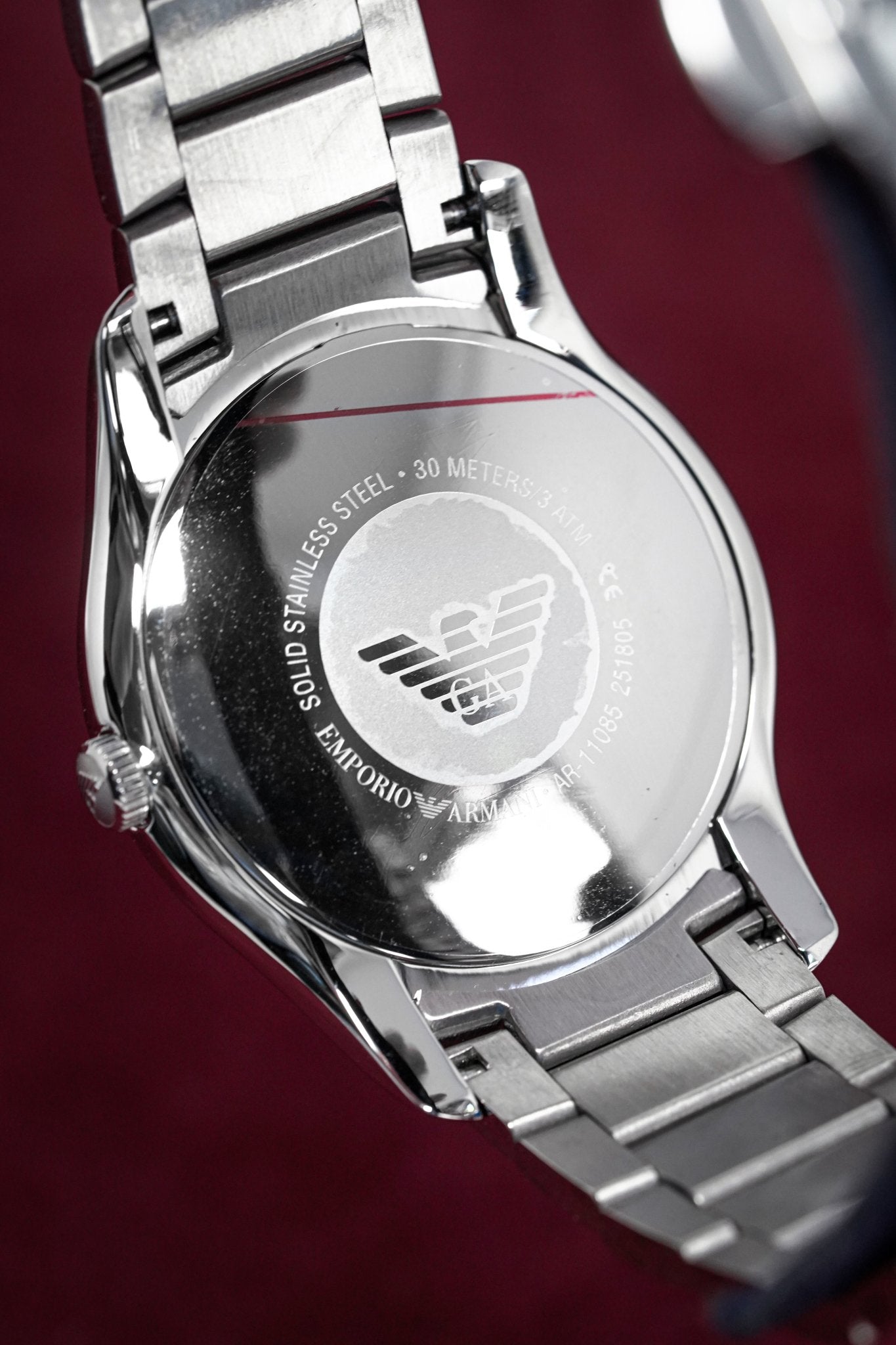 43mm x 10mm Stainless Steel Case. Solid Caseback.