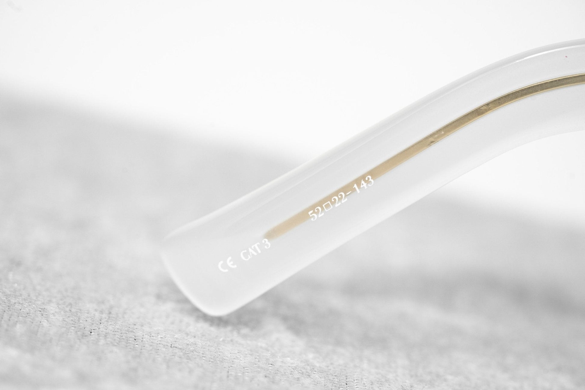 Temple Material: Stainless Steel with Transparent White Acetate Earpieces
