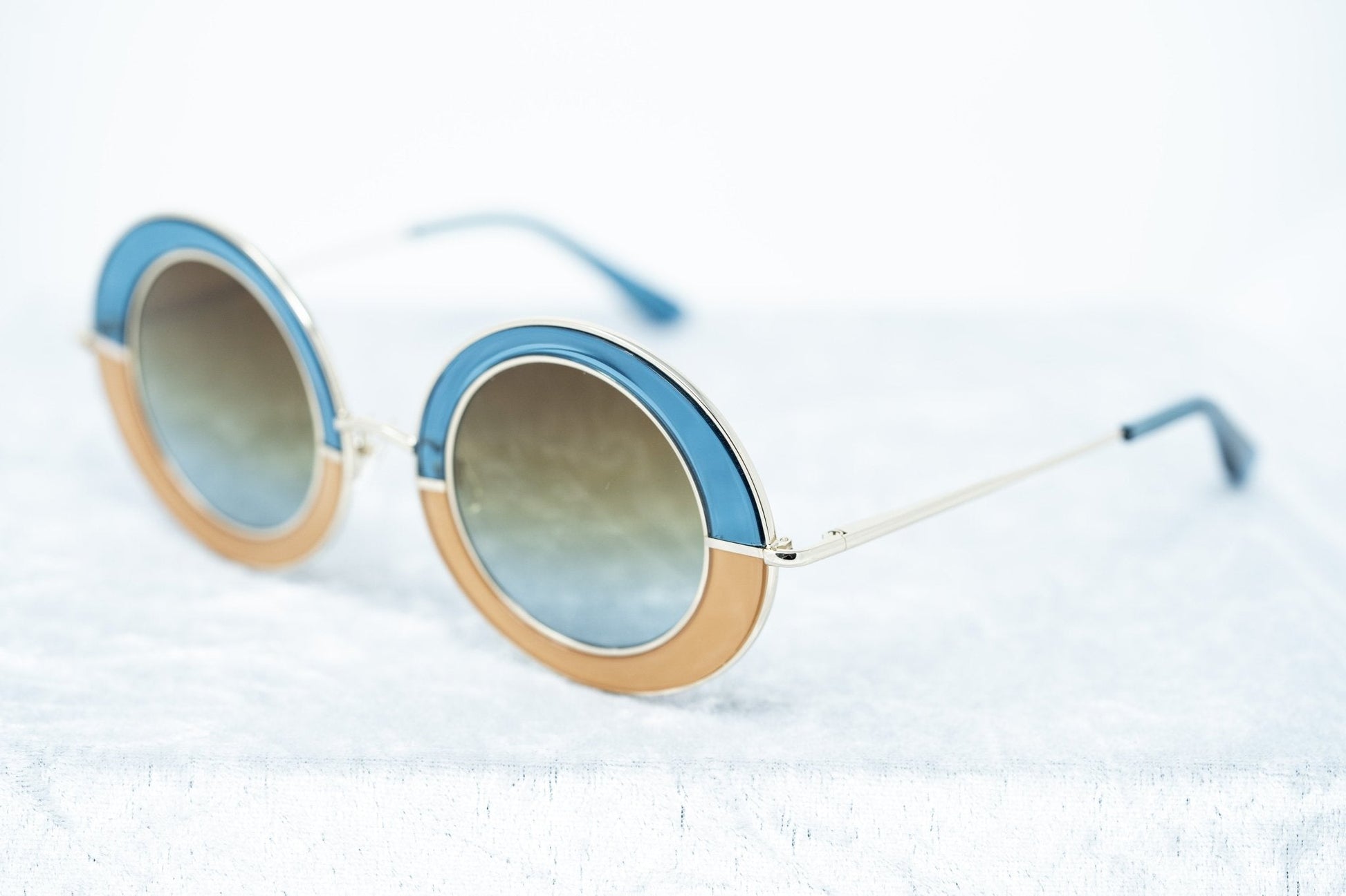 Frame Color: Transparent Blue/Amber with Gold Trimming