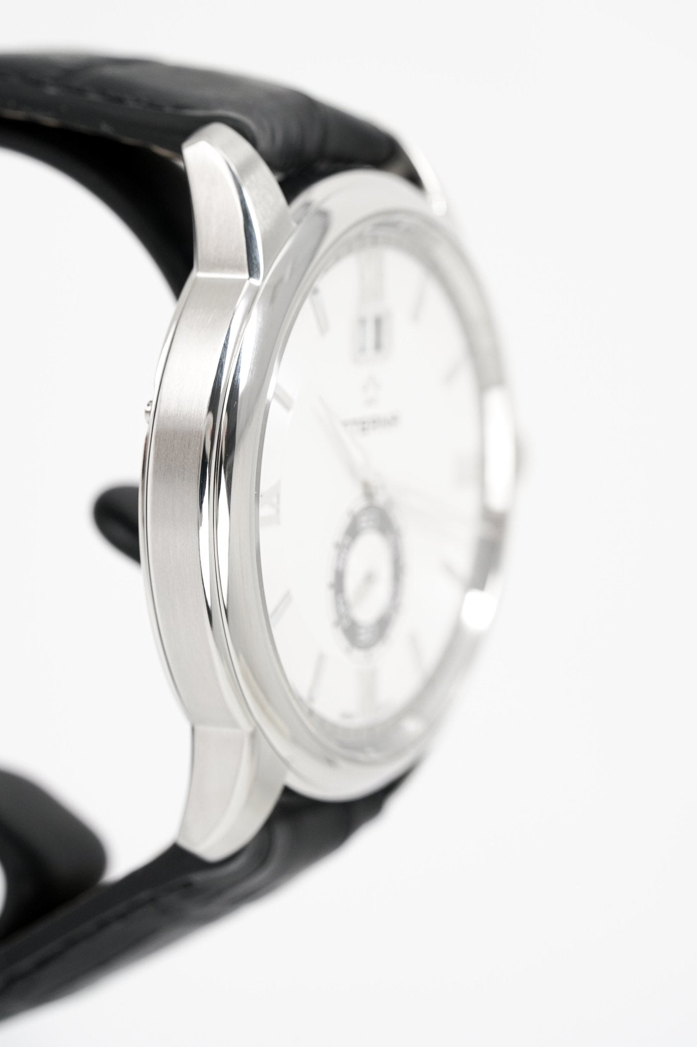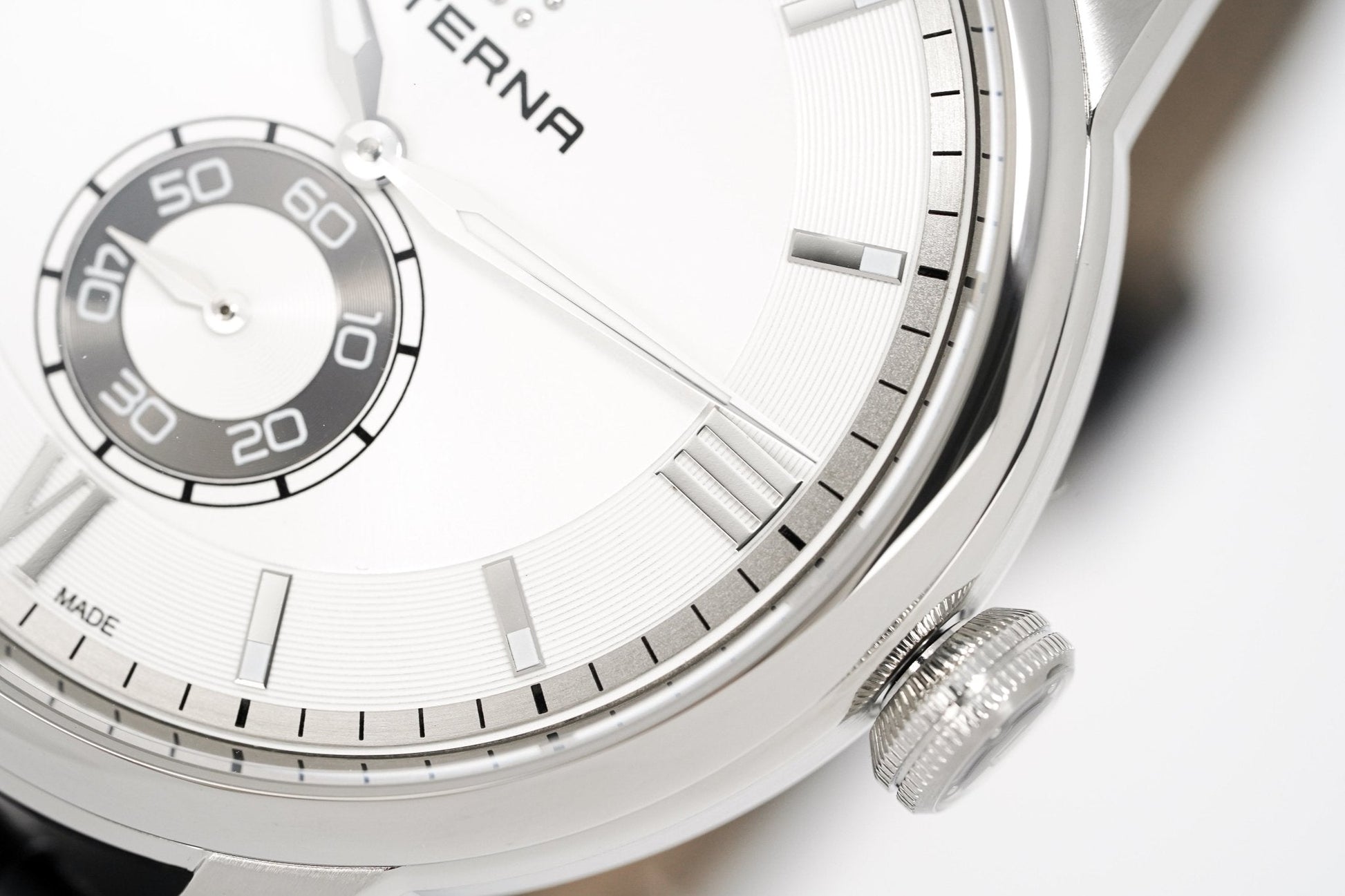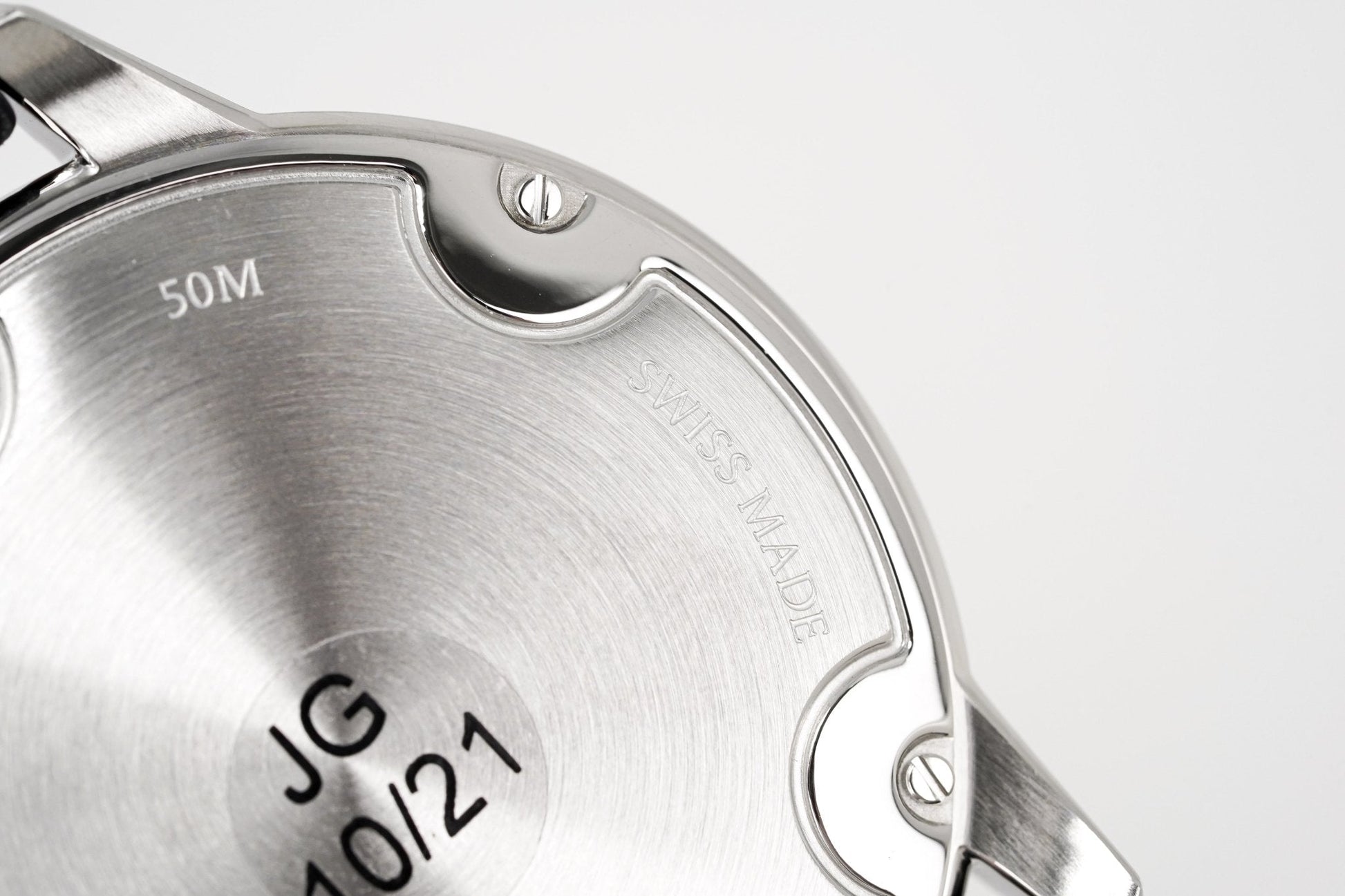 40mm 316L Stainless Steel Case, Solid Caseback, Smooth Bezel and Stainless Steel Crown. Sapphire Crystal. Big Date at 12 O'clock.