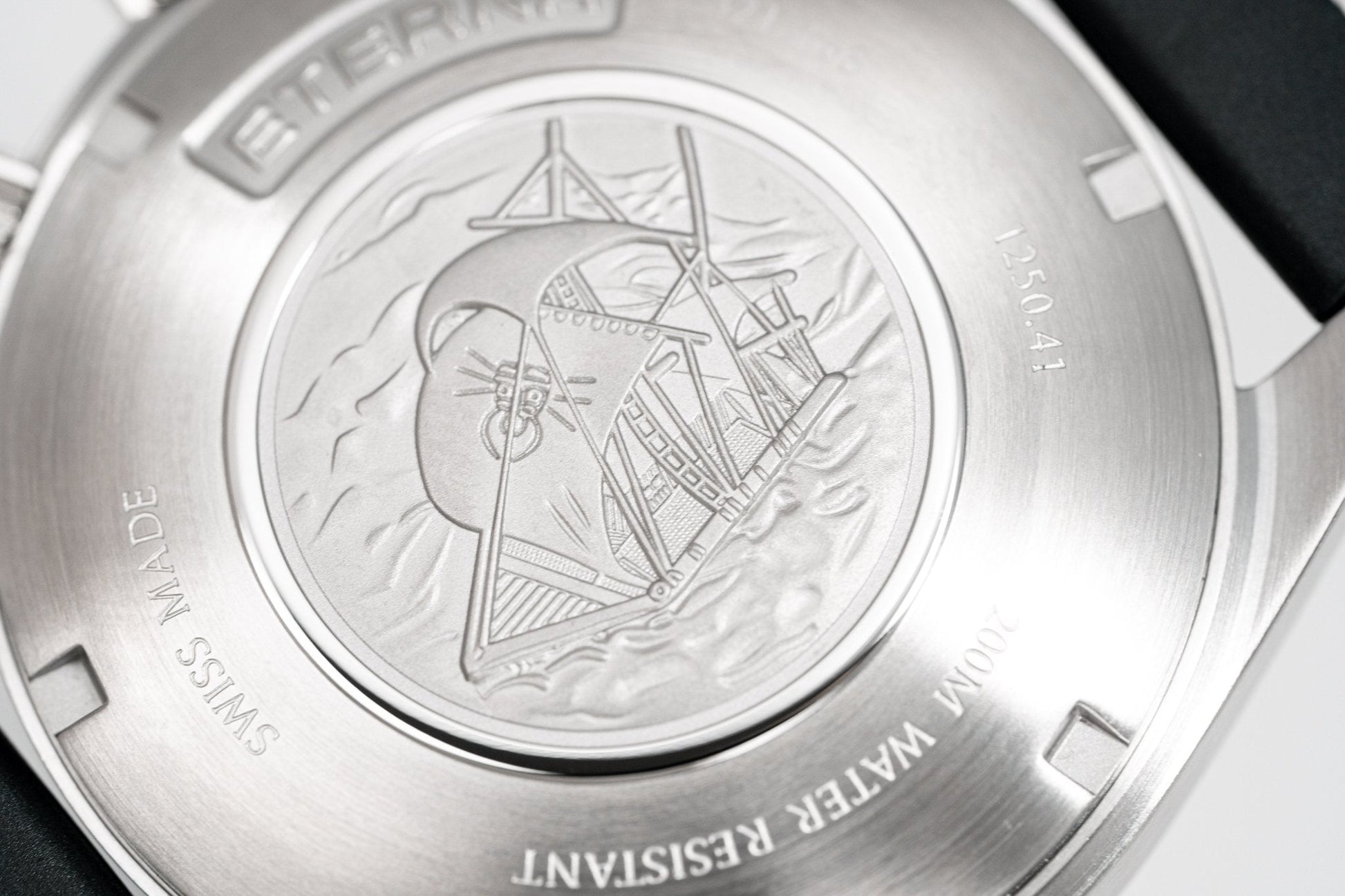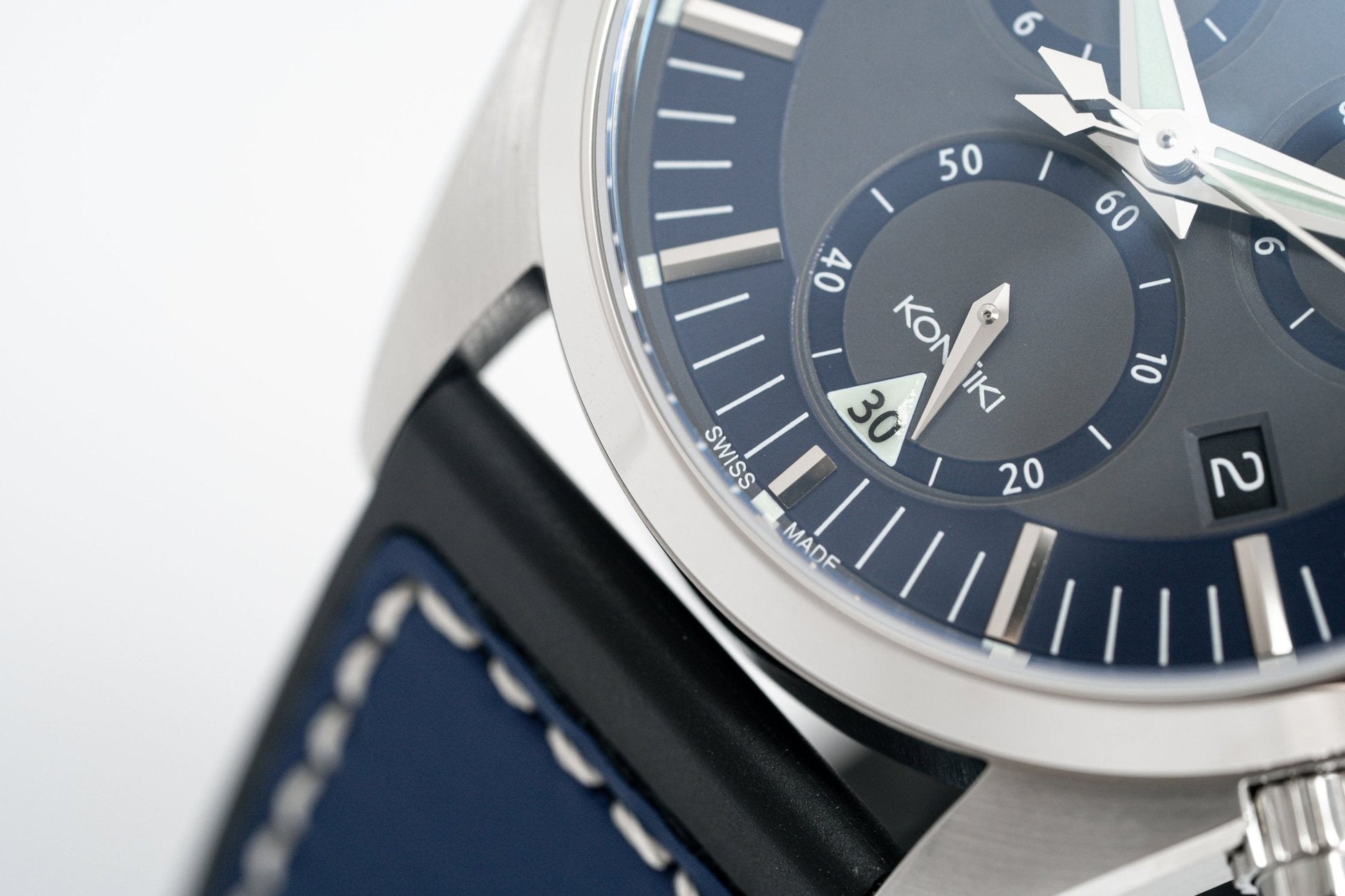 42mm 316L Stainless Steel Case, Caseback Engraved With 1947 KonTiki expedition of Thor Heyerdahl And Black PVD Bezel and Crown. Sapphire Crystal.