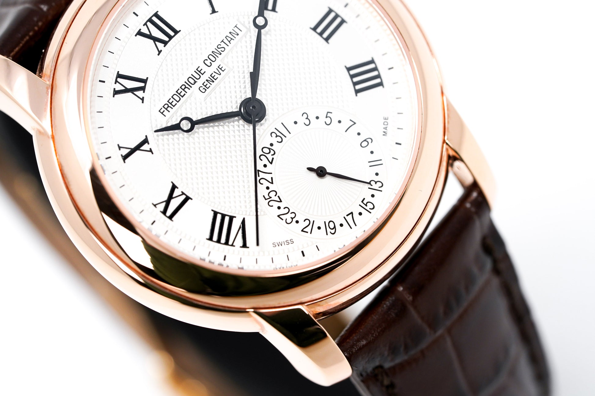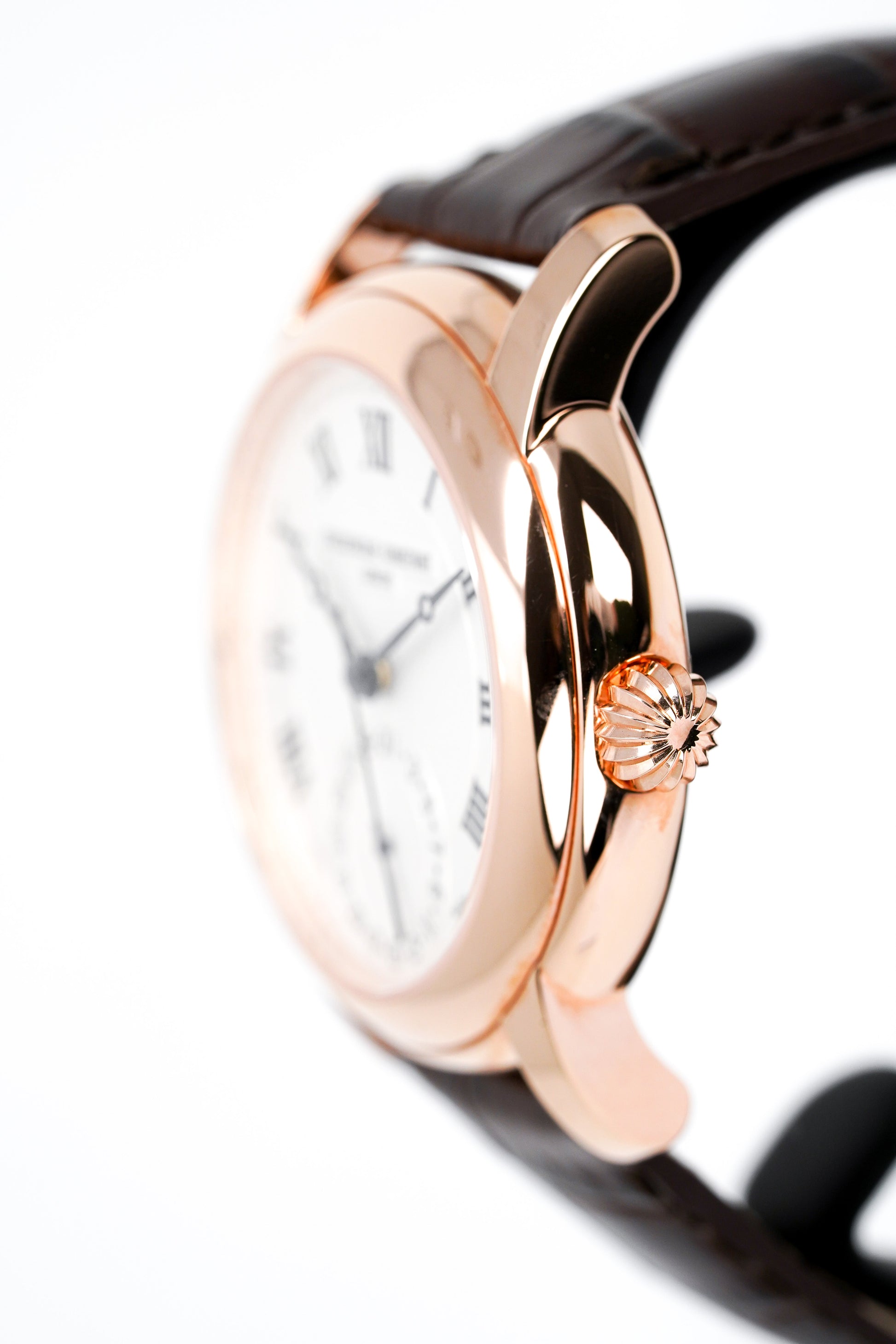 Swiss Made Automatic Movement. Caliber FC-710. 26 Jewels. 28,800bph. Power Reserve of 38 Hours. Day Counter at 6 O'clock.