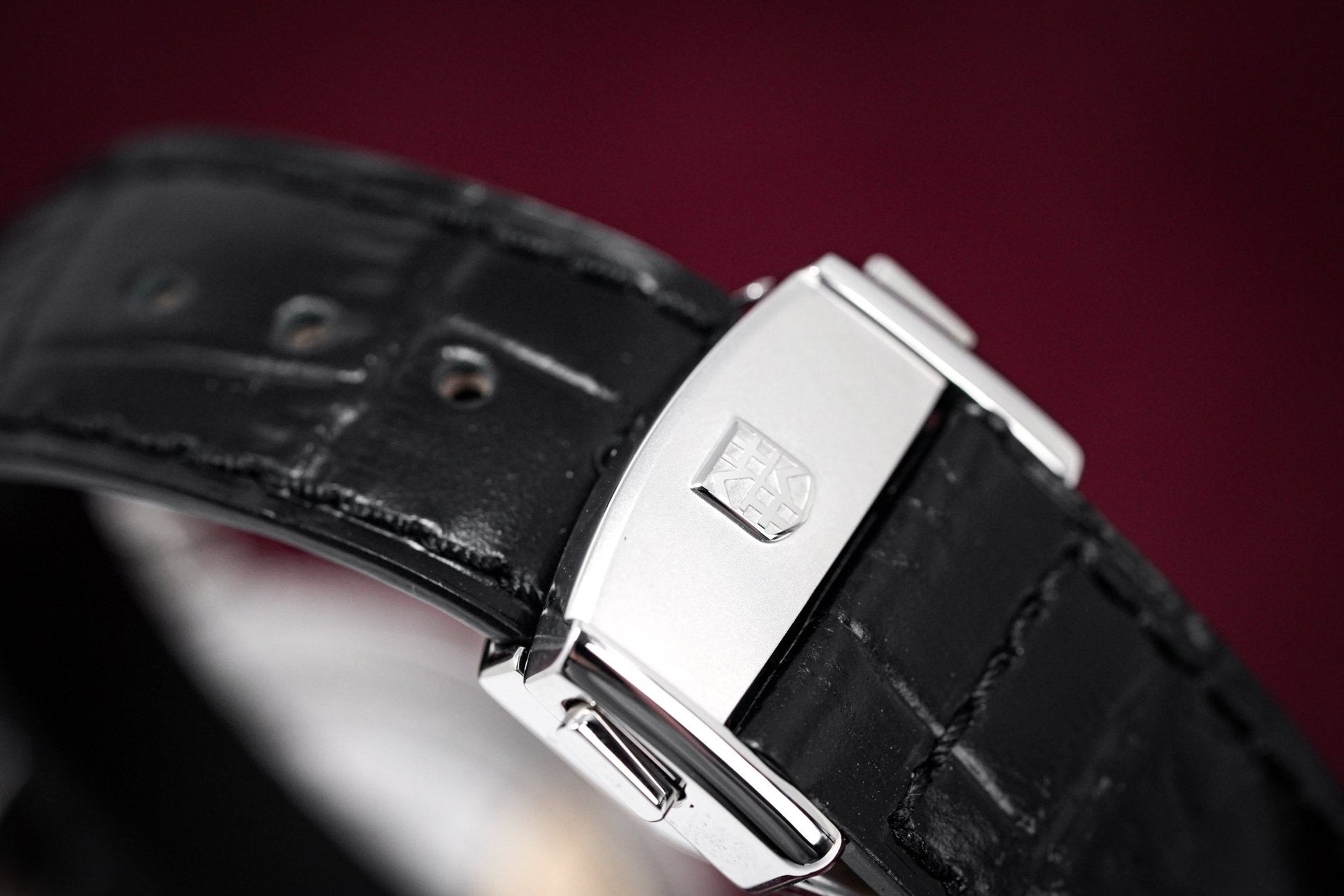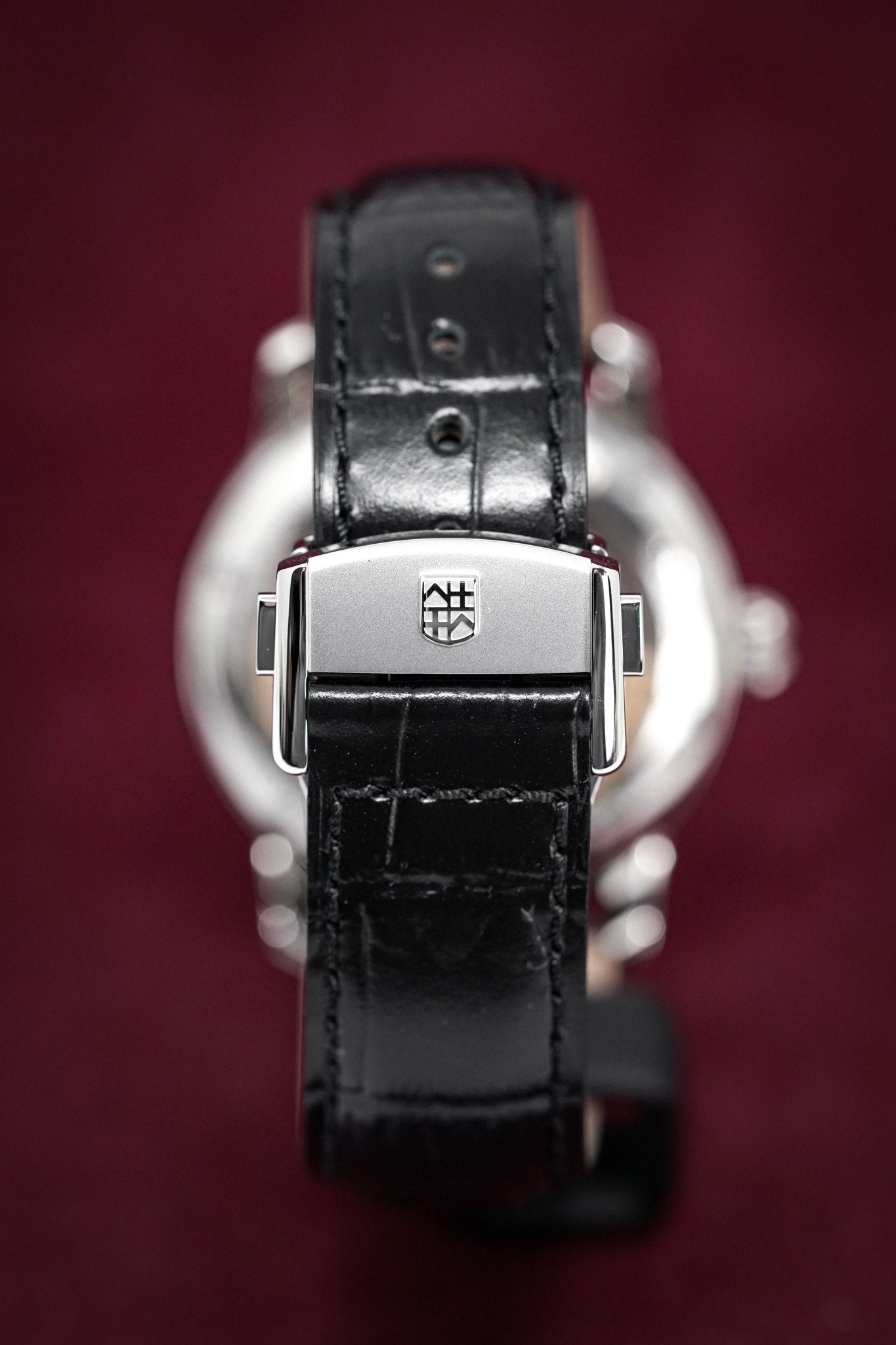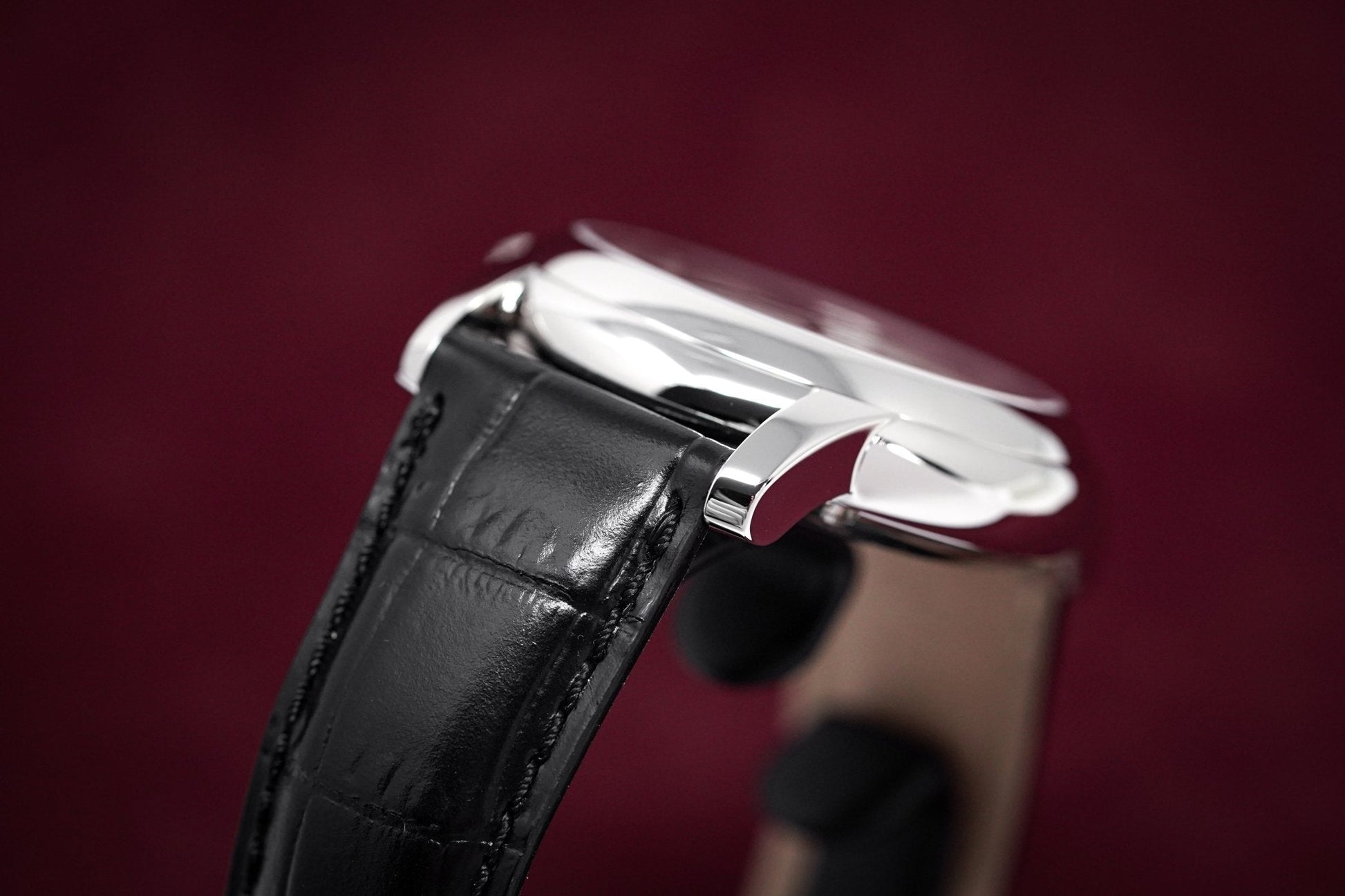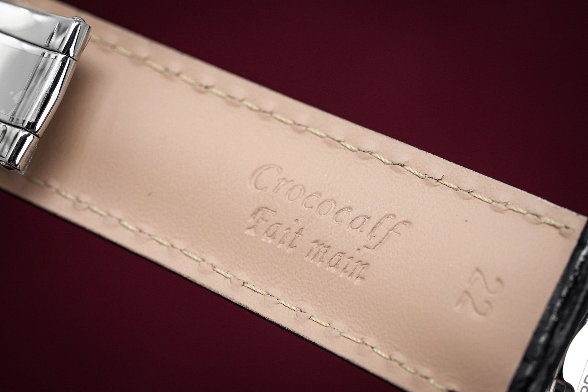 21mm x 18cm Black Crococalf Leather with 316L Stainless Steel Deployment Clasp.
