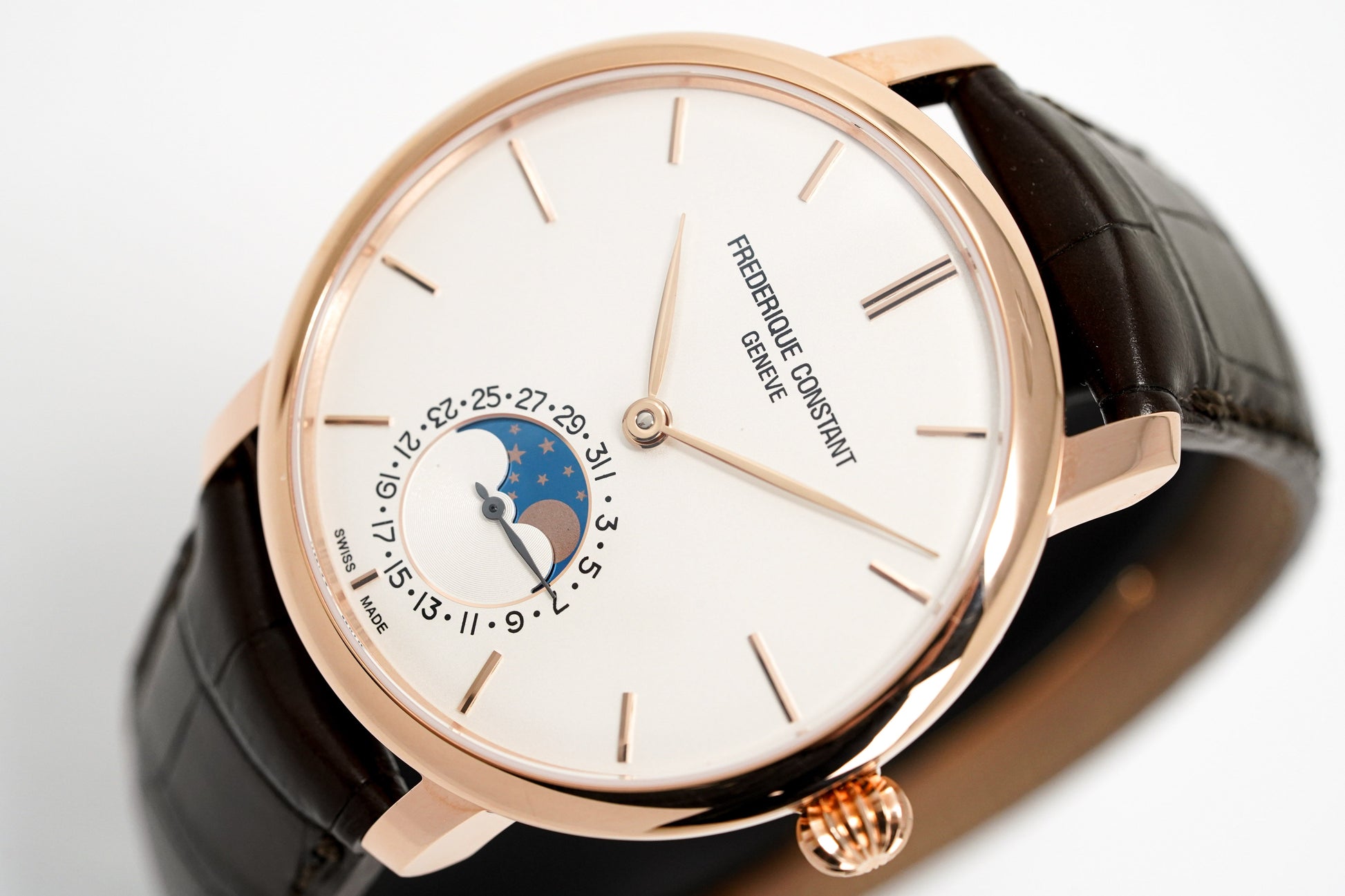 Frederique Constant Watch Men's Slimline Moonphase Rose Gold PVD FC-705V4S4