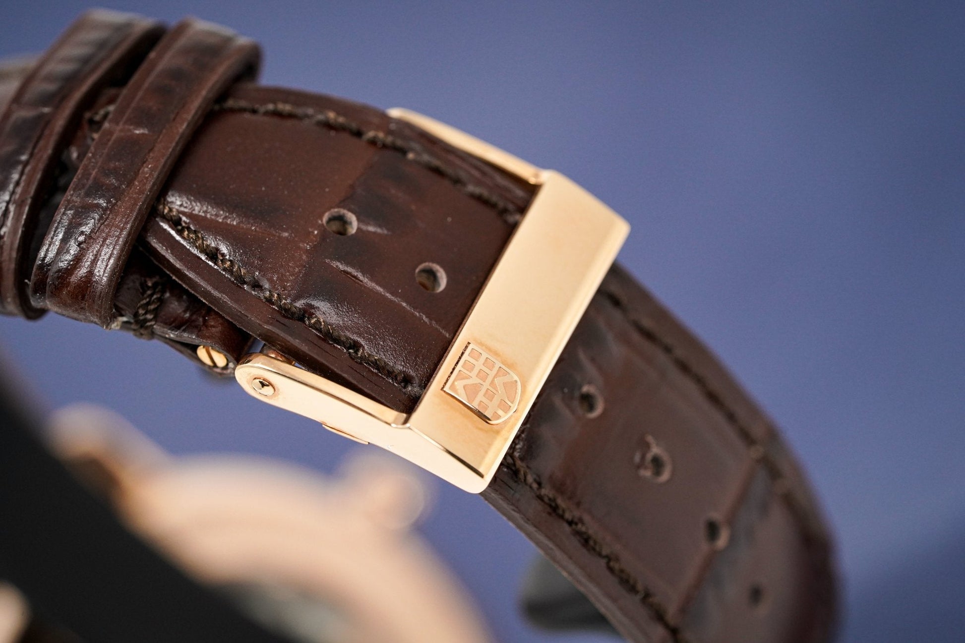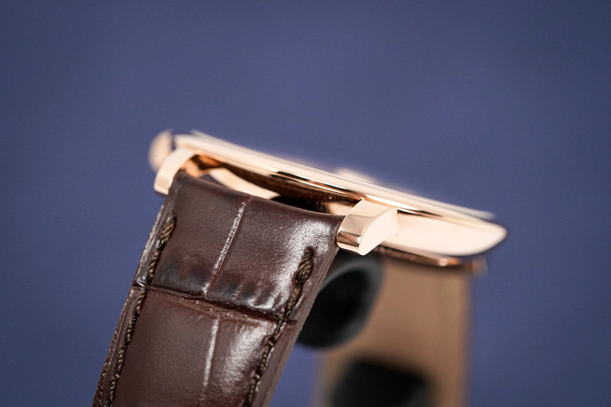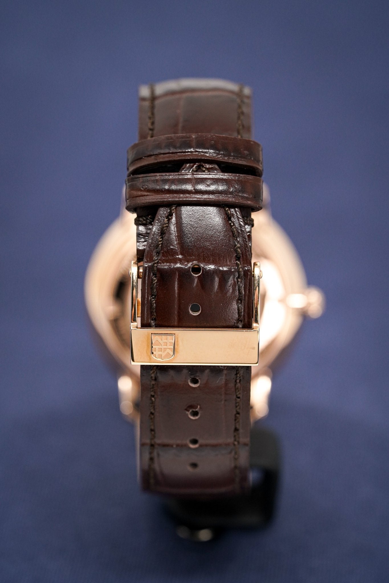19mm x 18cm Brown Crococalf Leather Strap with Rose Gold Plated Stainless Steel Deployment Buckle.