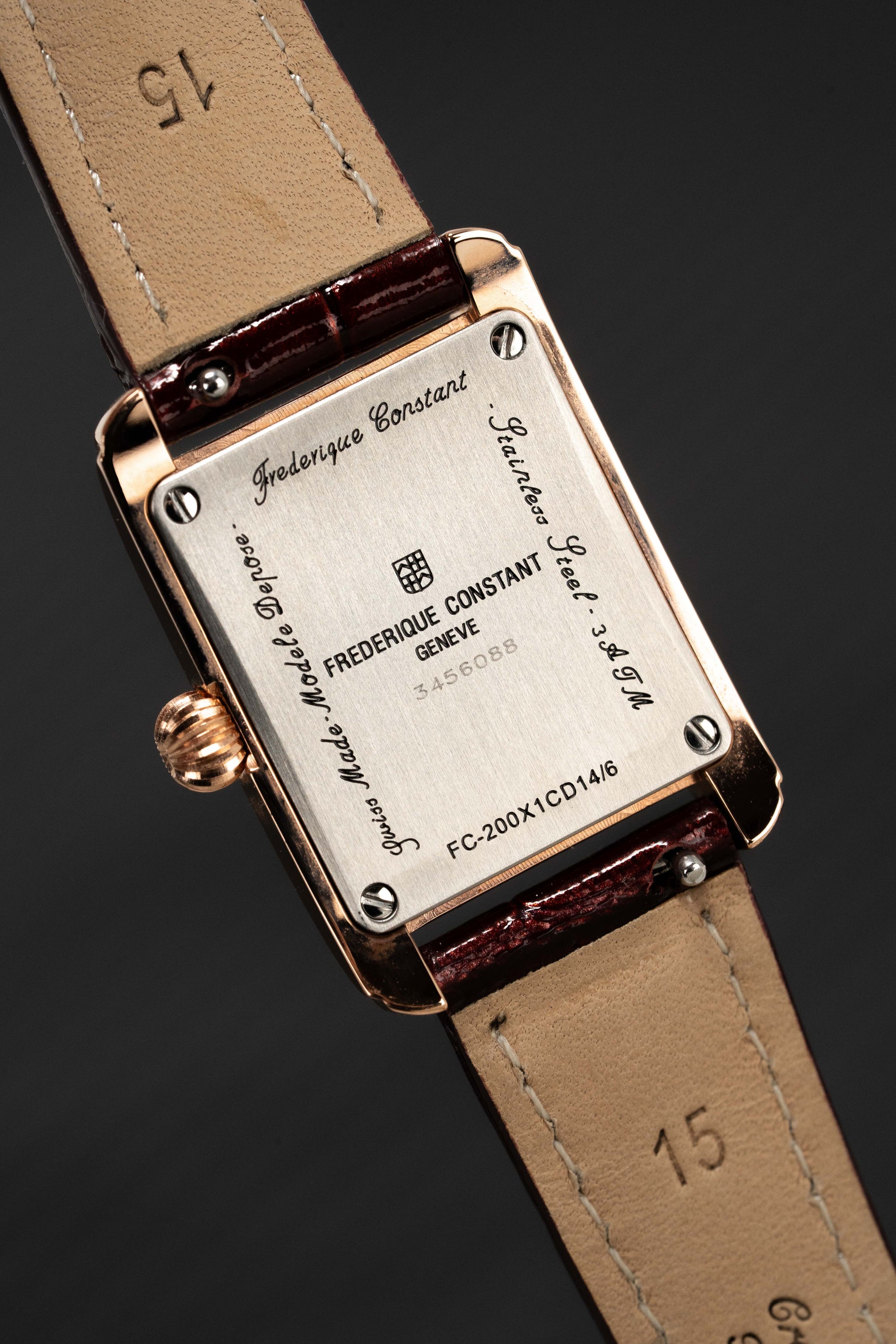 Frederique Constant Watch Ladies Classic Carree Rose Gold PVD FC-200MCD14