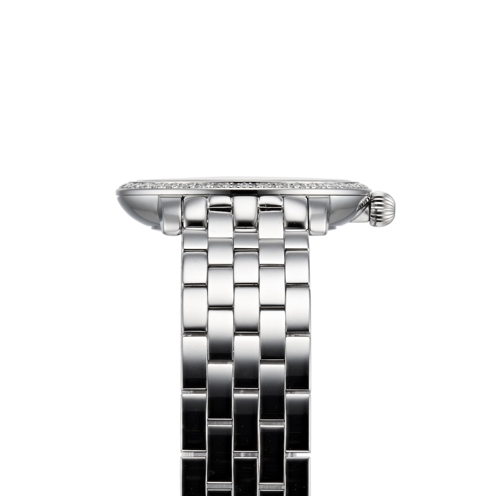 25mm x 5.5mm 316L Stainless Steel Case - Polished Solid Caseback - Push Pull Crown - Scratch Resistant Sapphire Crystal - Hand Set Diamonds On The Bezel.