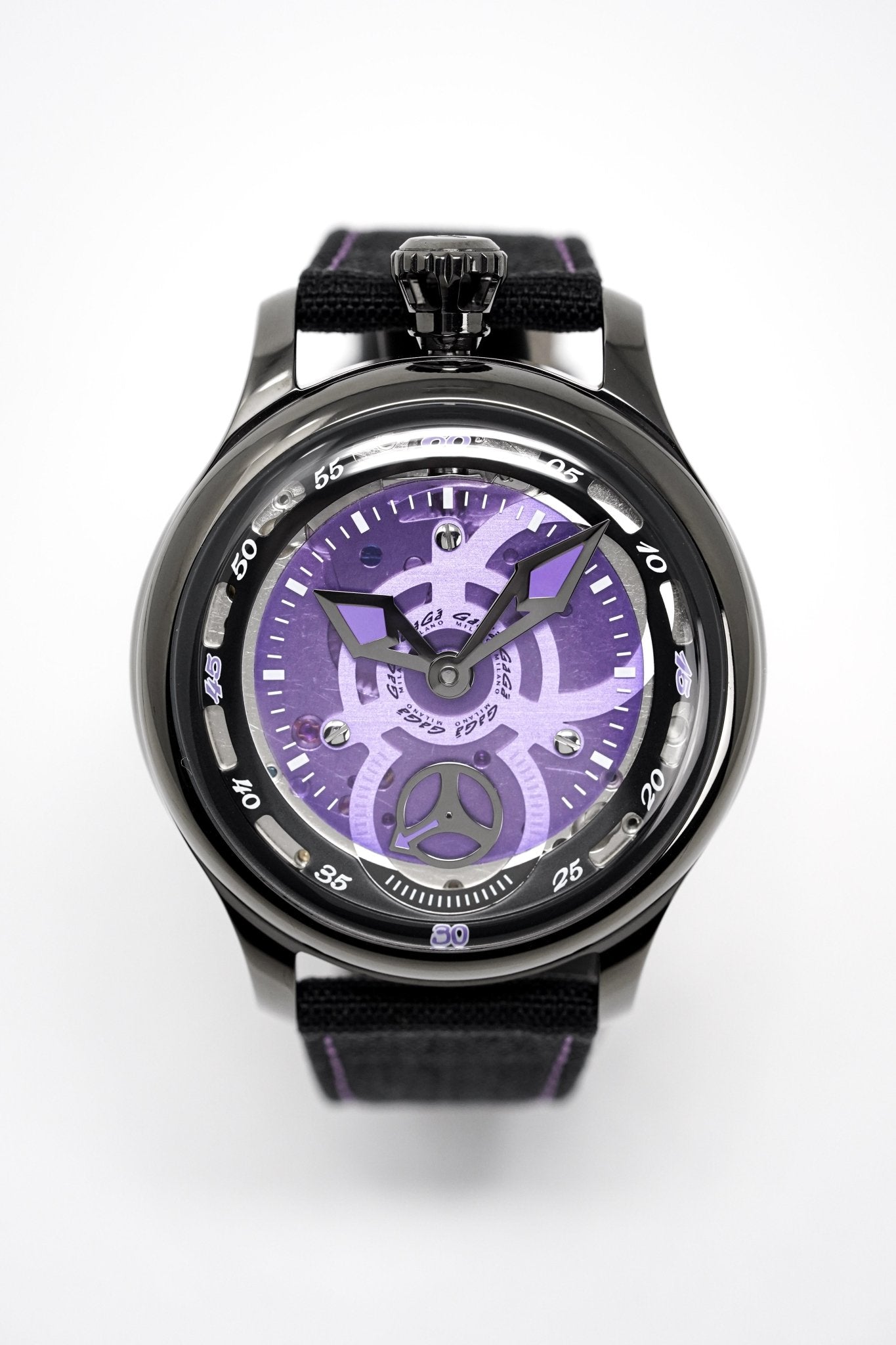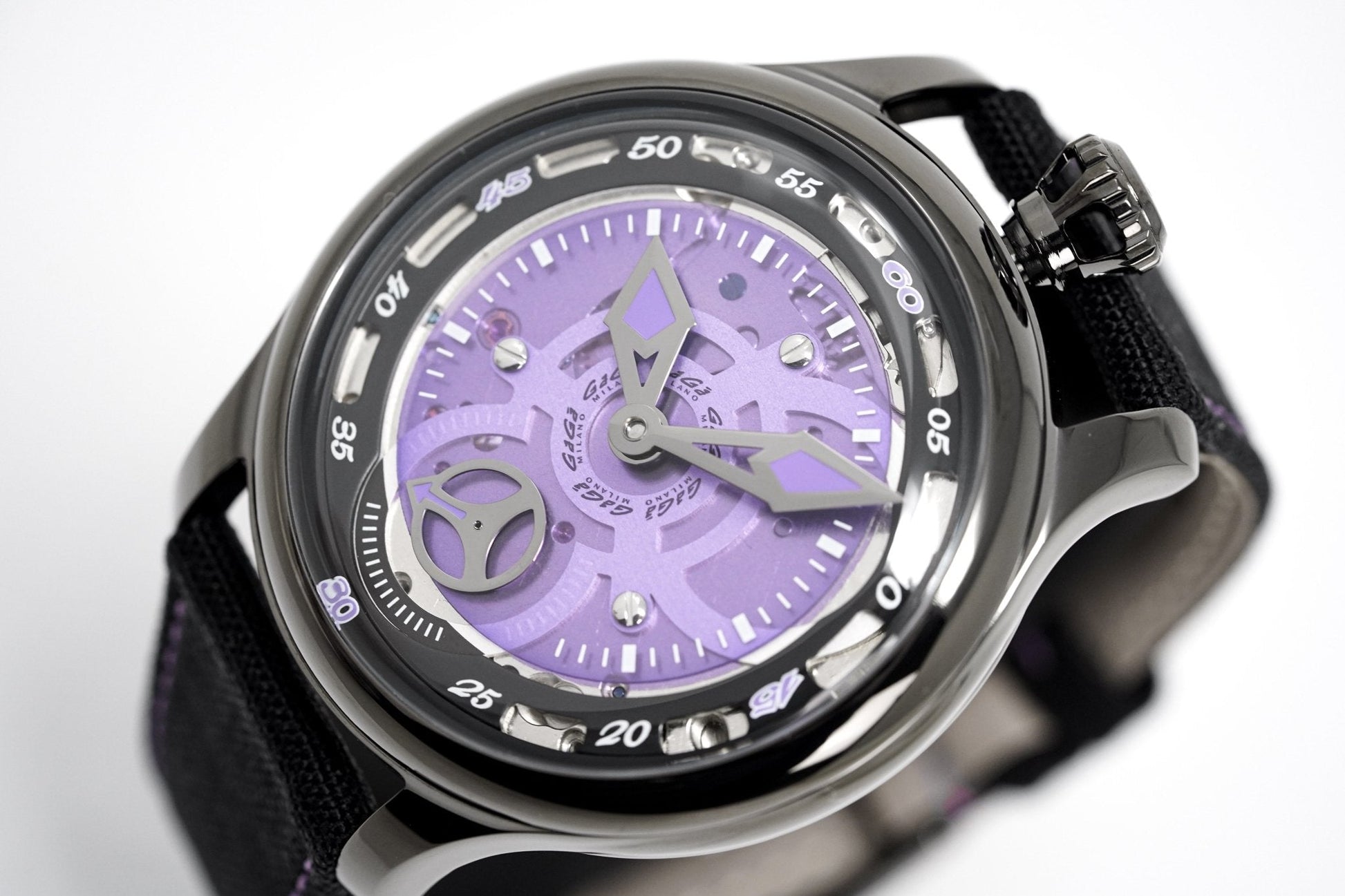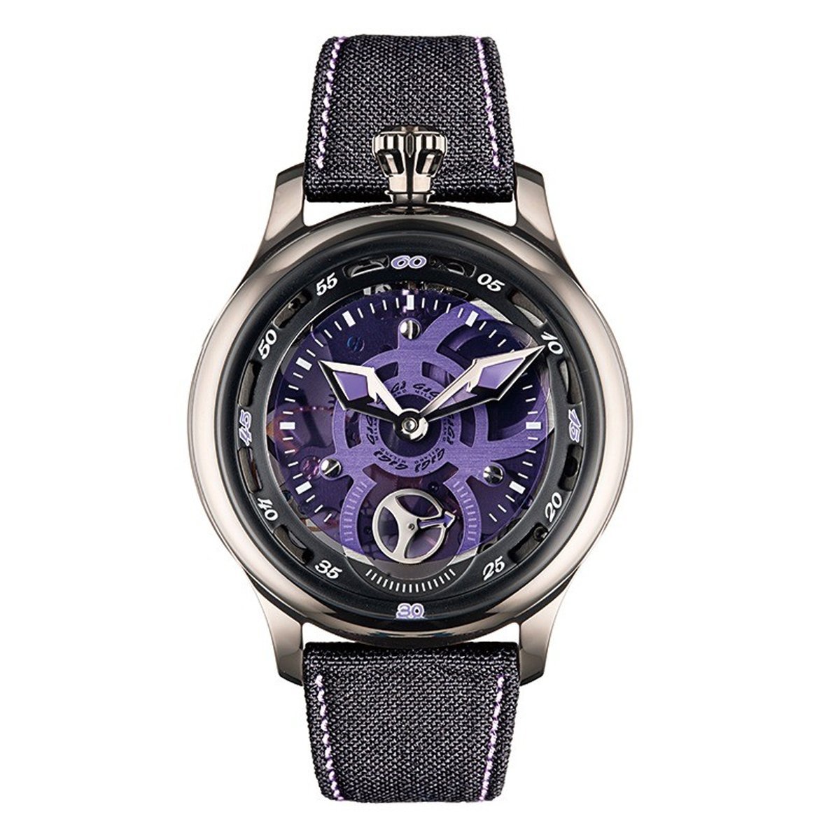 Purple Skeleton Dial - White Indexes and Stainless Steel Hands - Small Seconds at 6 O'Clock