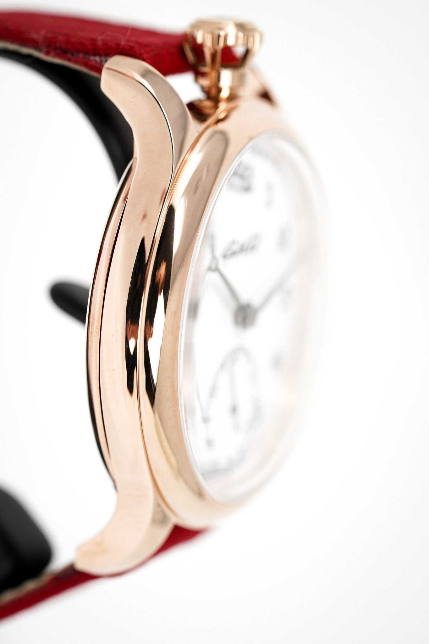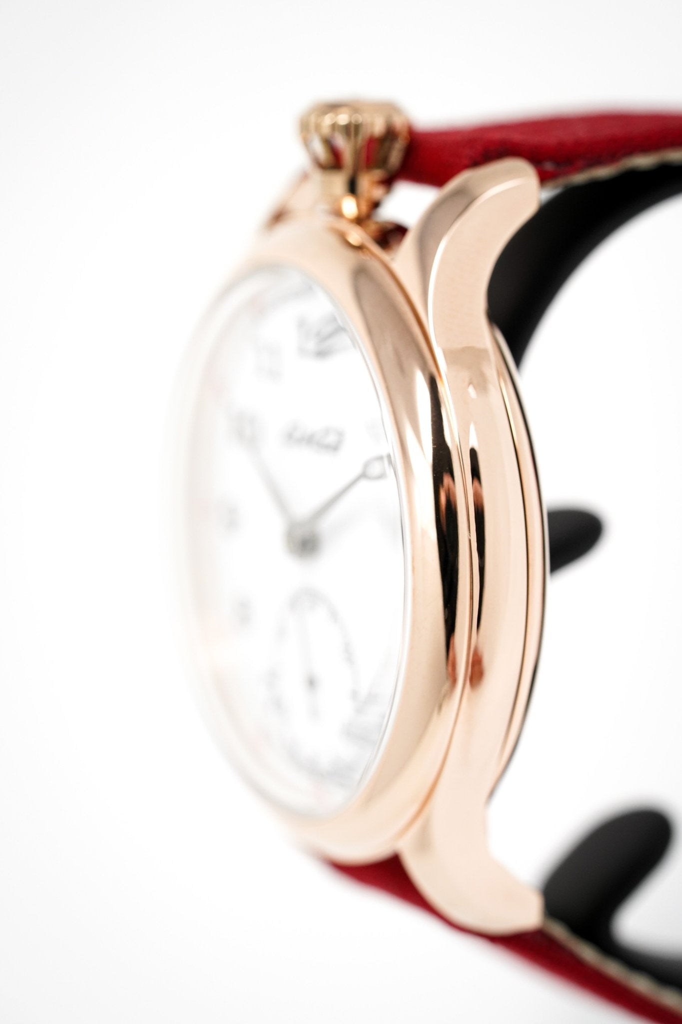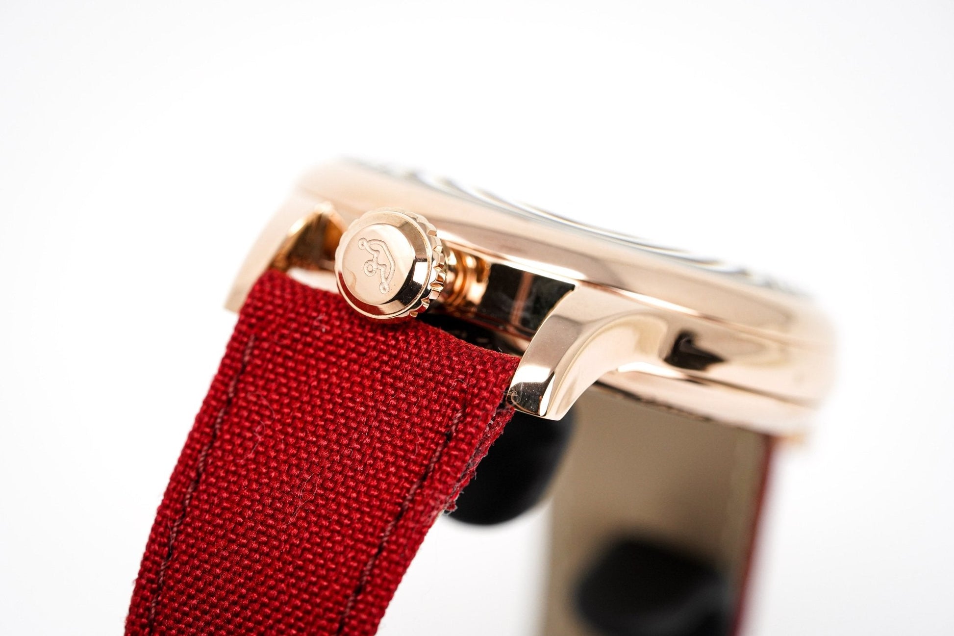 46mm x 14mm Rose Gold Plated 316L Stainless Steel Case - Domed Anti-Reflective Sapphire Crystal. Screwed Down Caseback with Porthole.