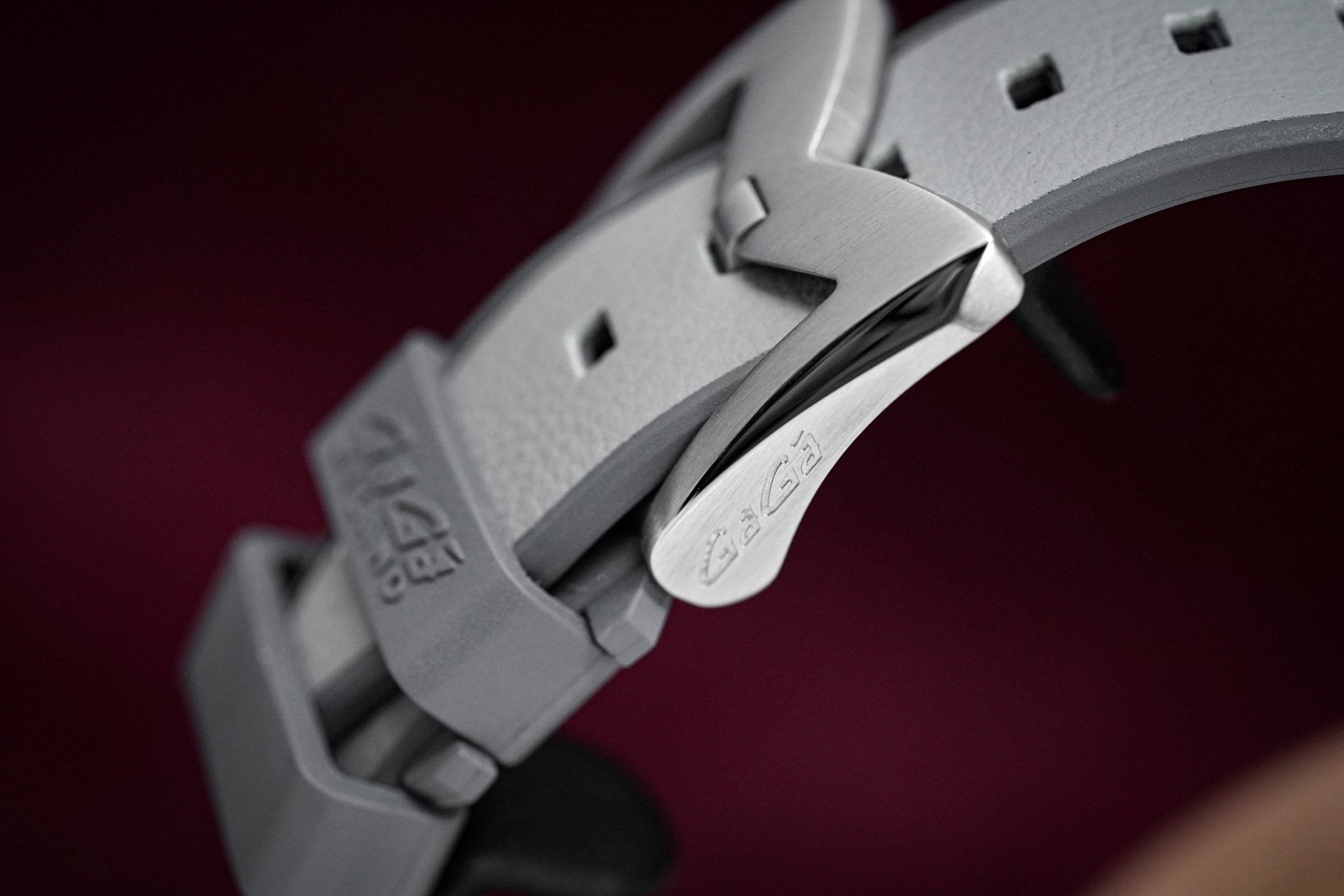 22mm x 18cm Grey Rubber Strap with upper Leather Insert. 316L Stainless Steel Buckle.
