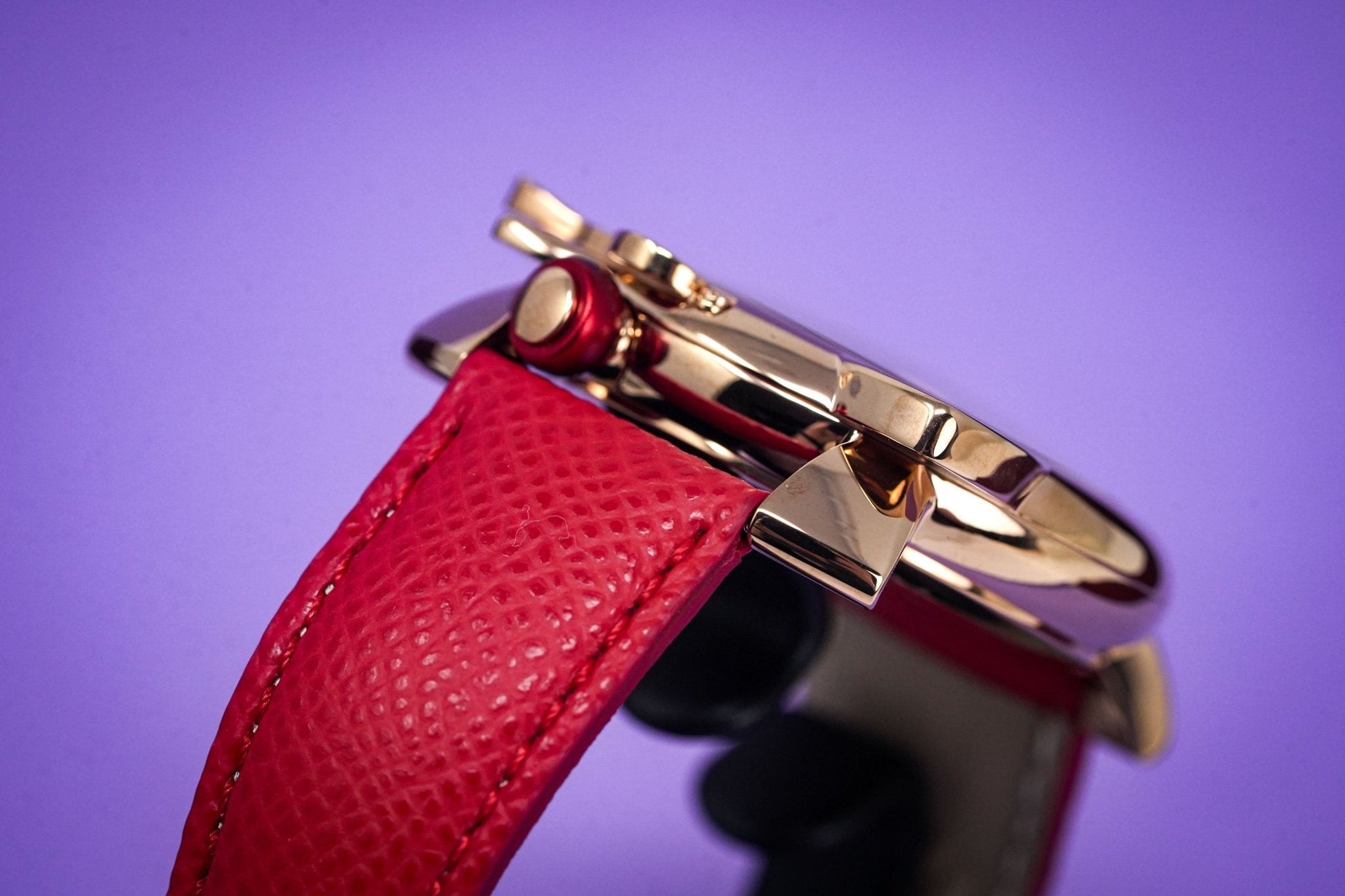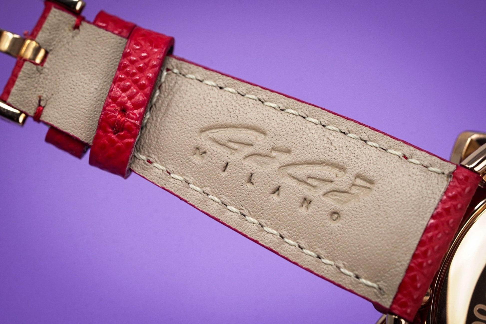 20mm x 16cm Handmade Italian Red Leather Strap with Rose Gold Plated 316L Stainless Steel Buckle