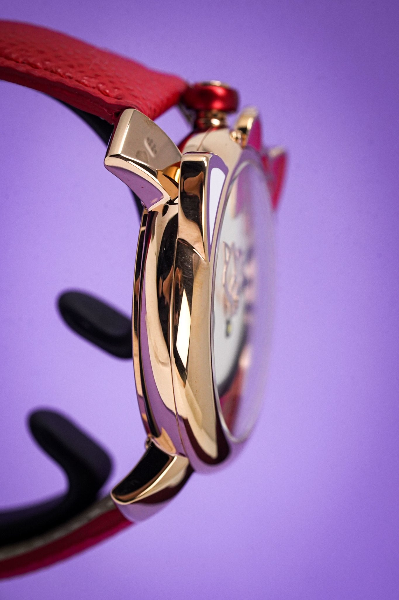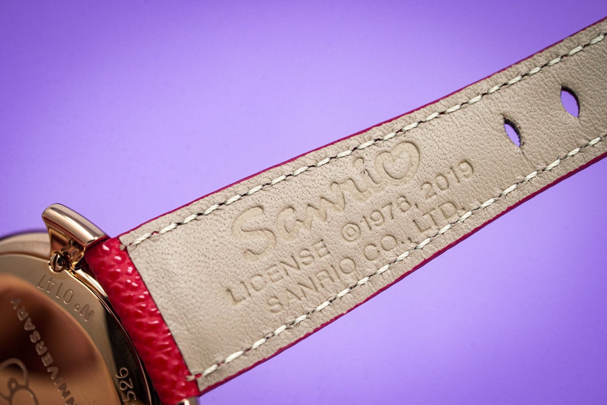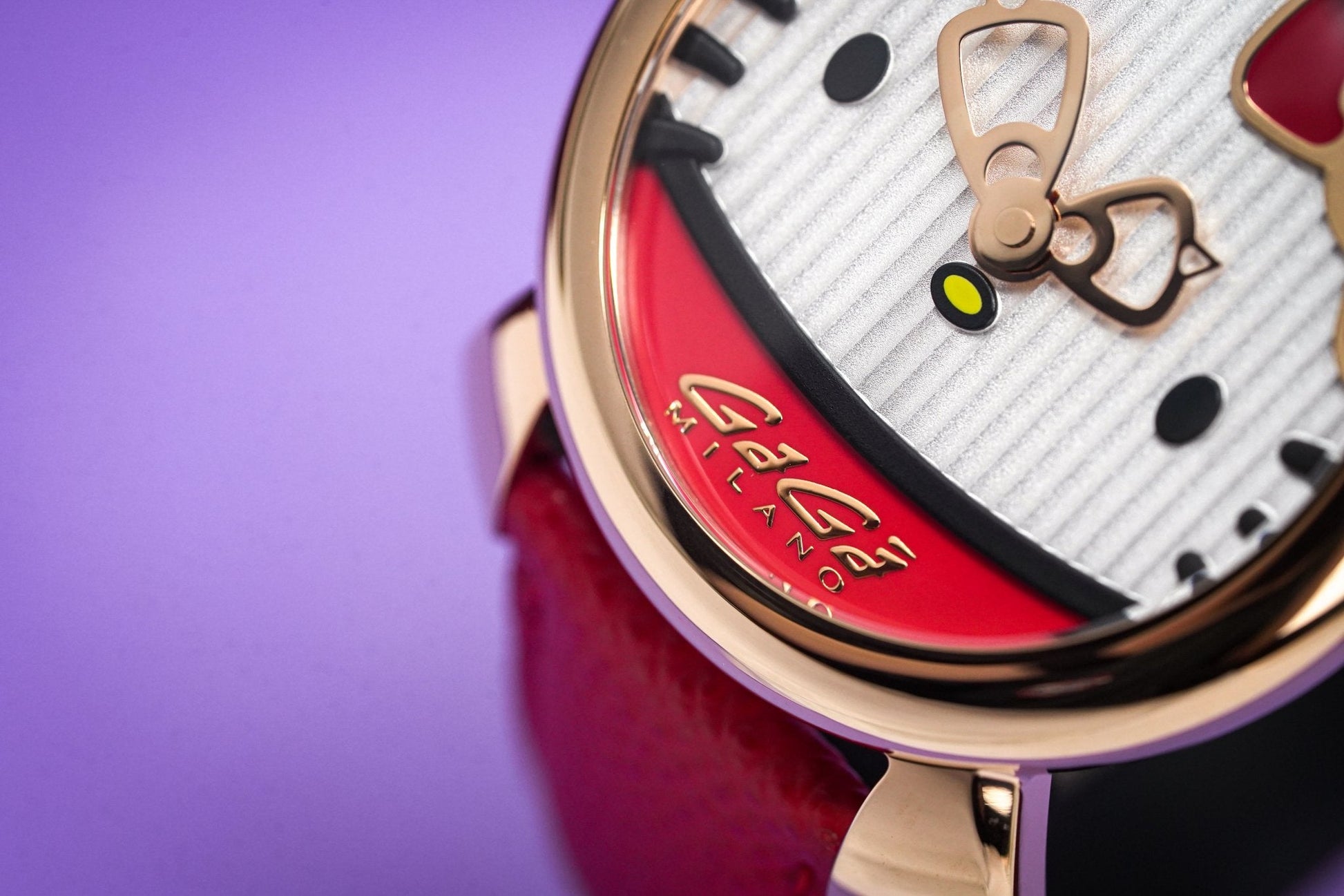 40 x 14mm Rose Gold Plated 316L Stainless Steel Case - Red Hello Kitty Bowtie Design and Ears - Domed Anti-Reflective Sapphire Crystal