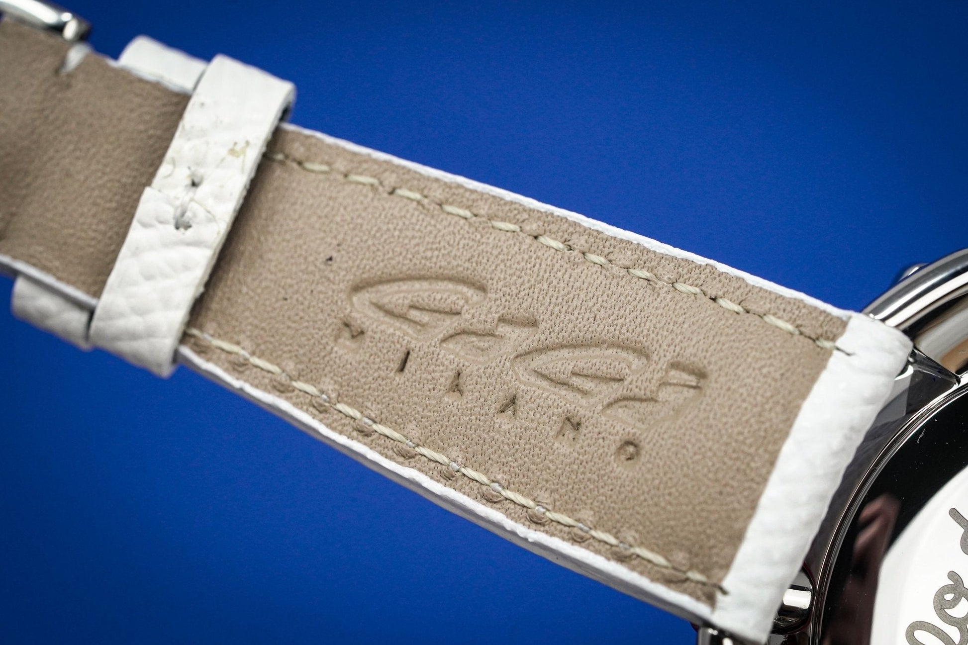 20mm x 16cm Handmade Italian White Leather Strap with 316L Stainless Steel Buckle