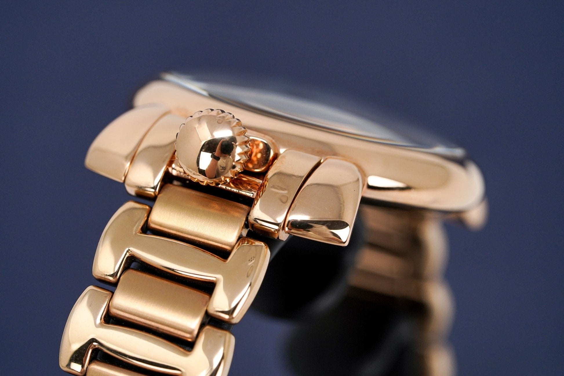 35mm x 9mm Polished Rose Gold Plated 316L Stainless Steel Case - Mineral Glass with Sapphire Treatment - Screw Down Crown at 12 O'Clock - Solid Caseback.