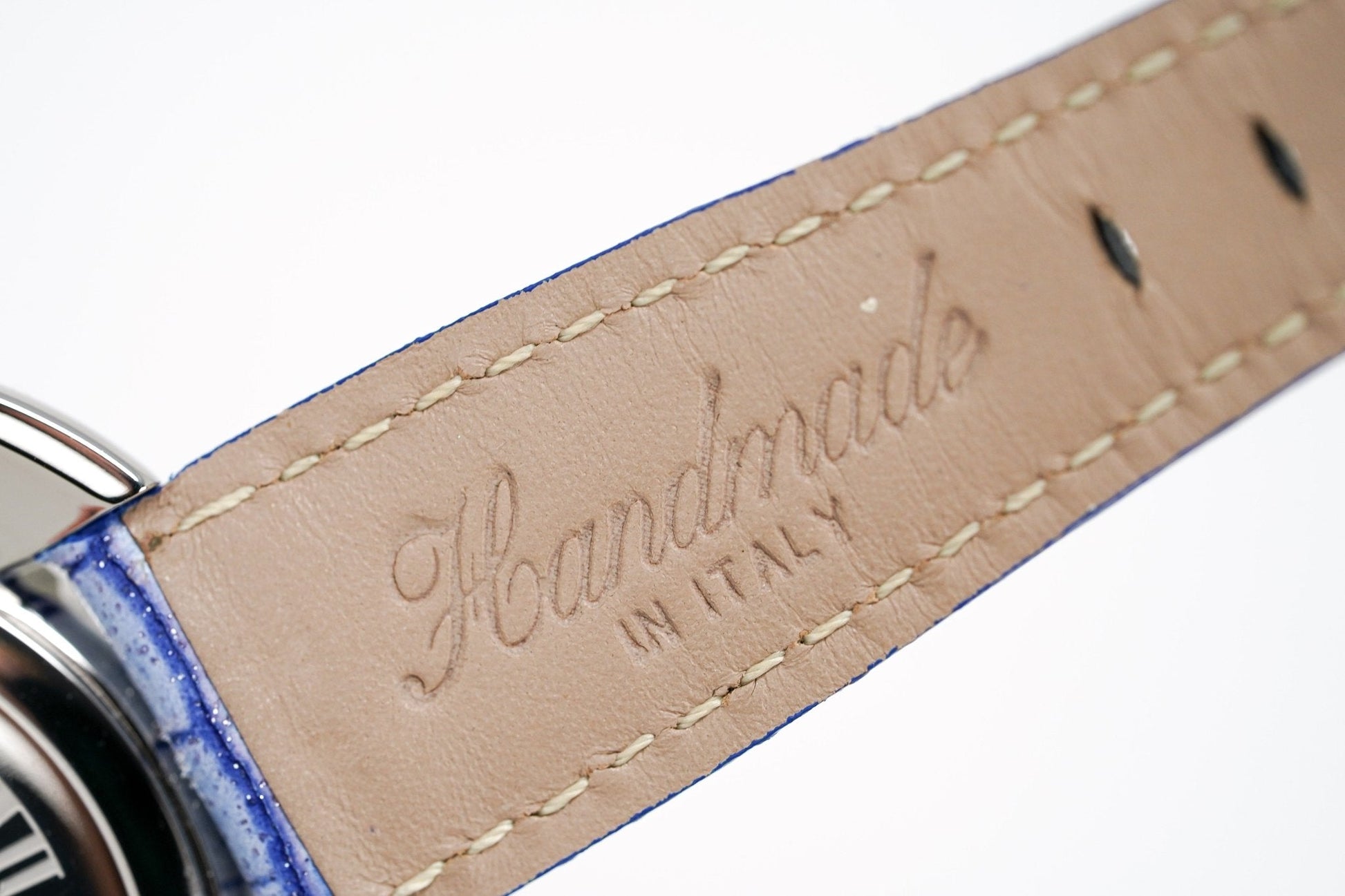 20/14mm x 15.5cm Handmade Italian Blue Glitter Croco Imitation Leather Strap with 316L Stainless Steel Buckle.