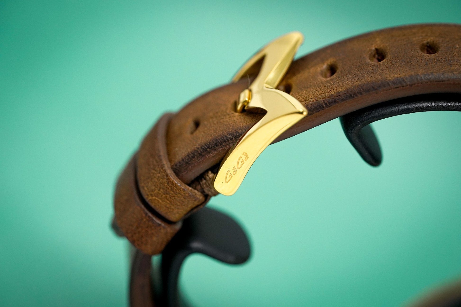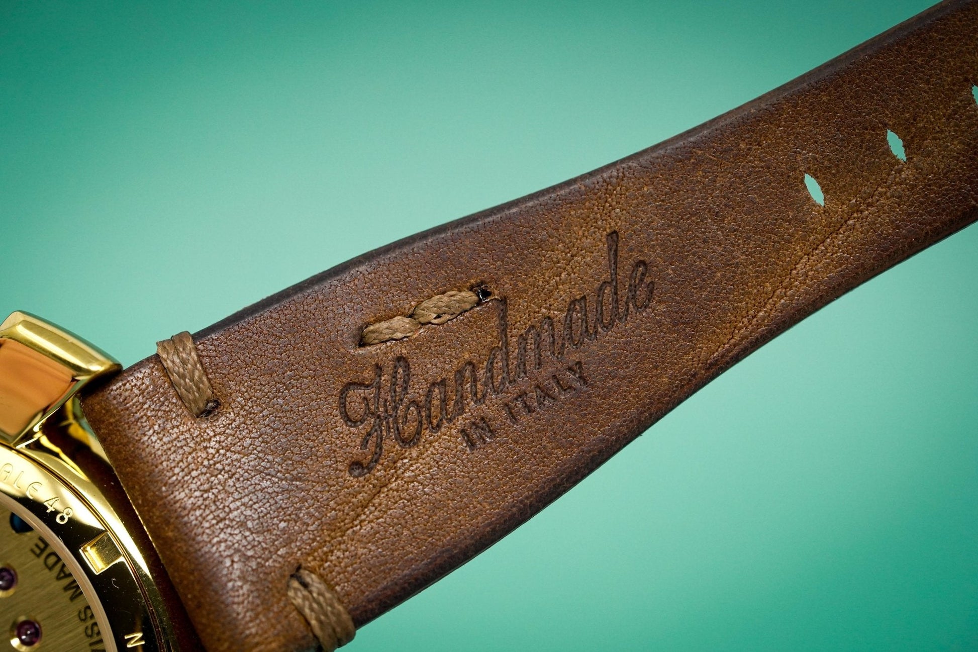 24mm x 19cm Handmade Italian Brown Leather Strap and a Yellow Gold PVD PVD Stainless Steel Buckle