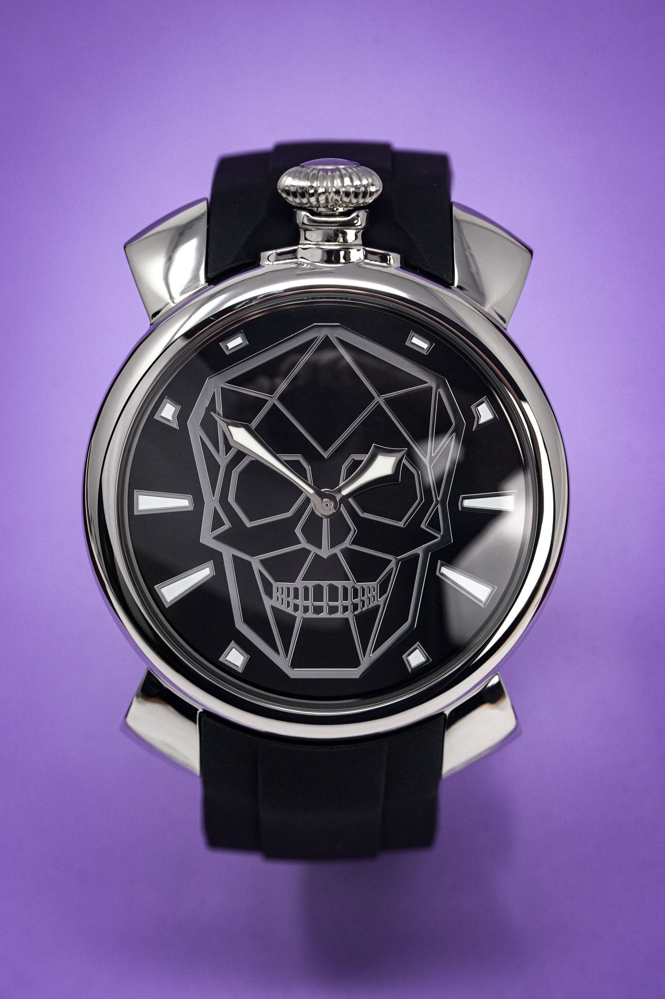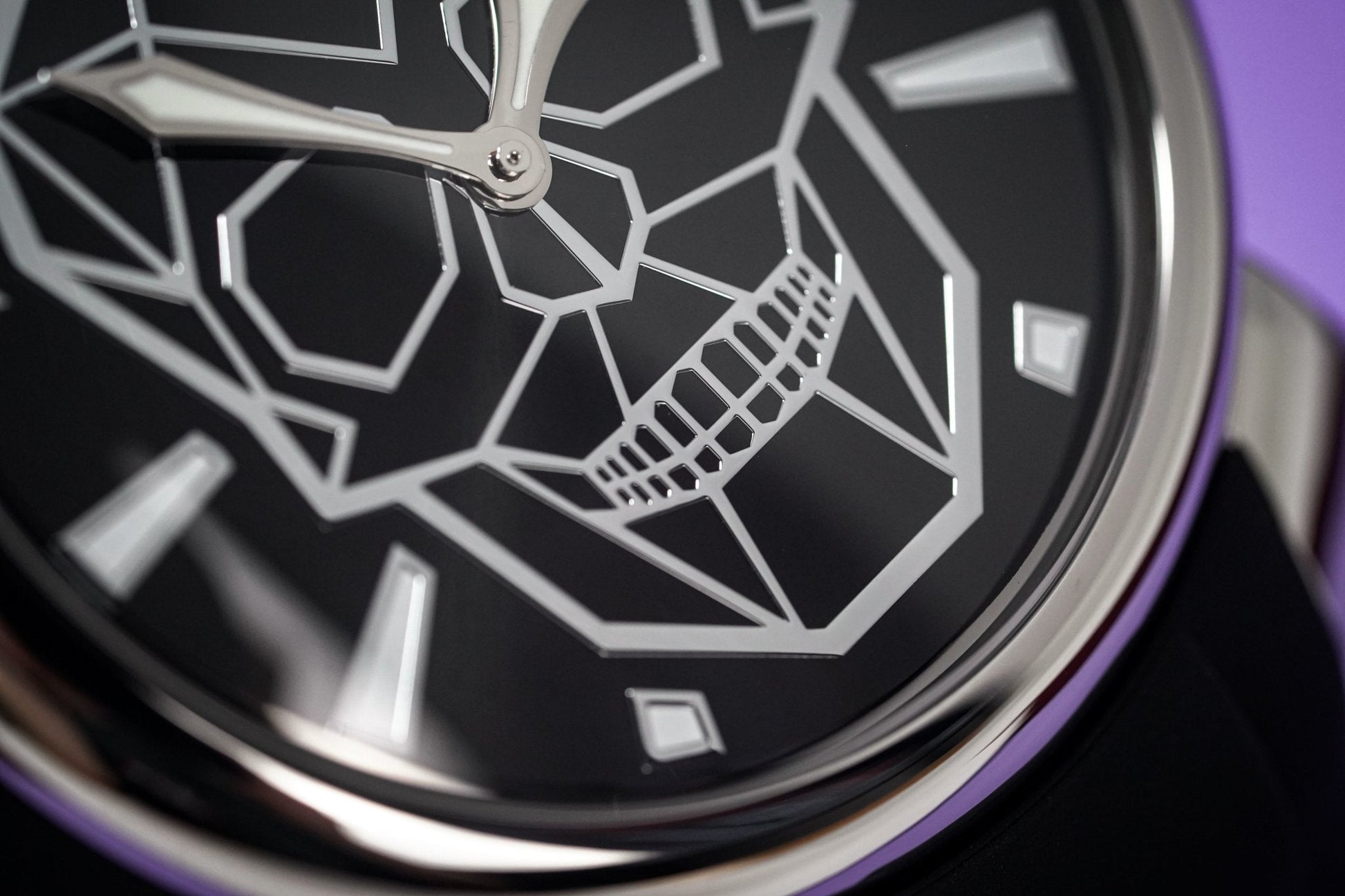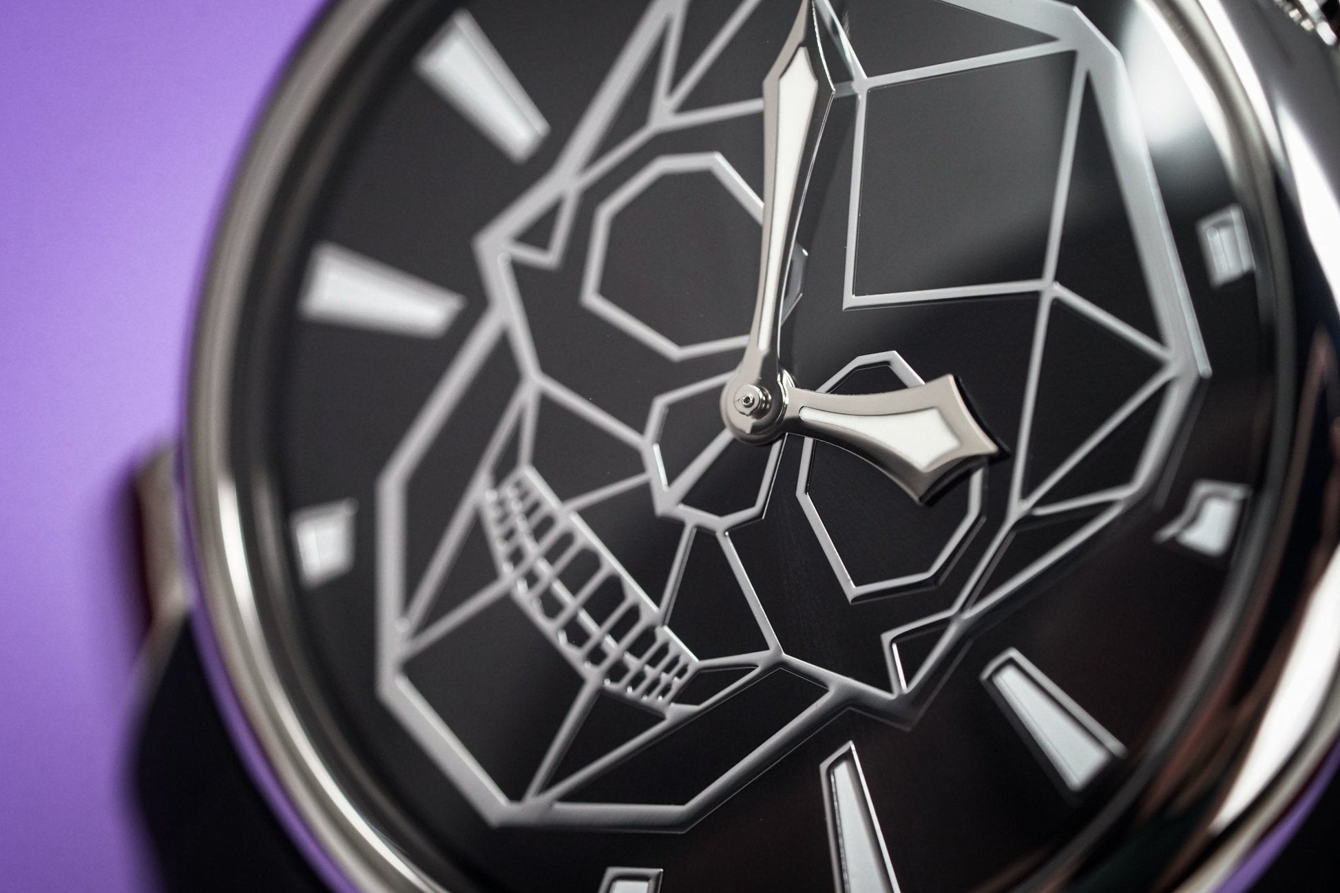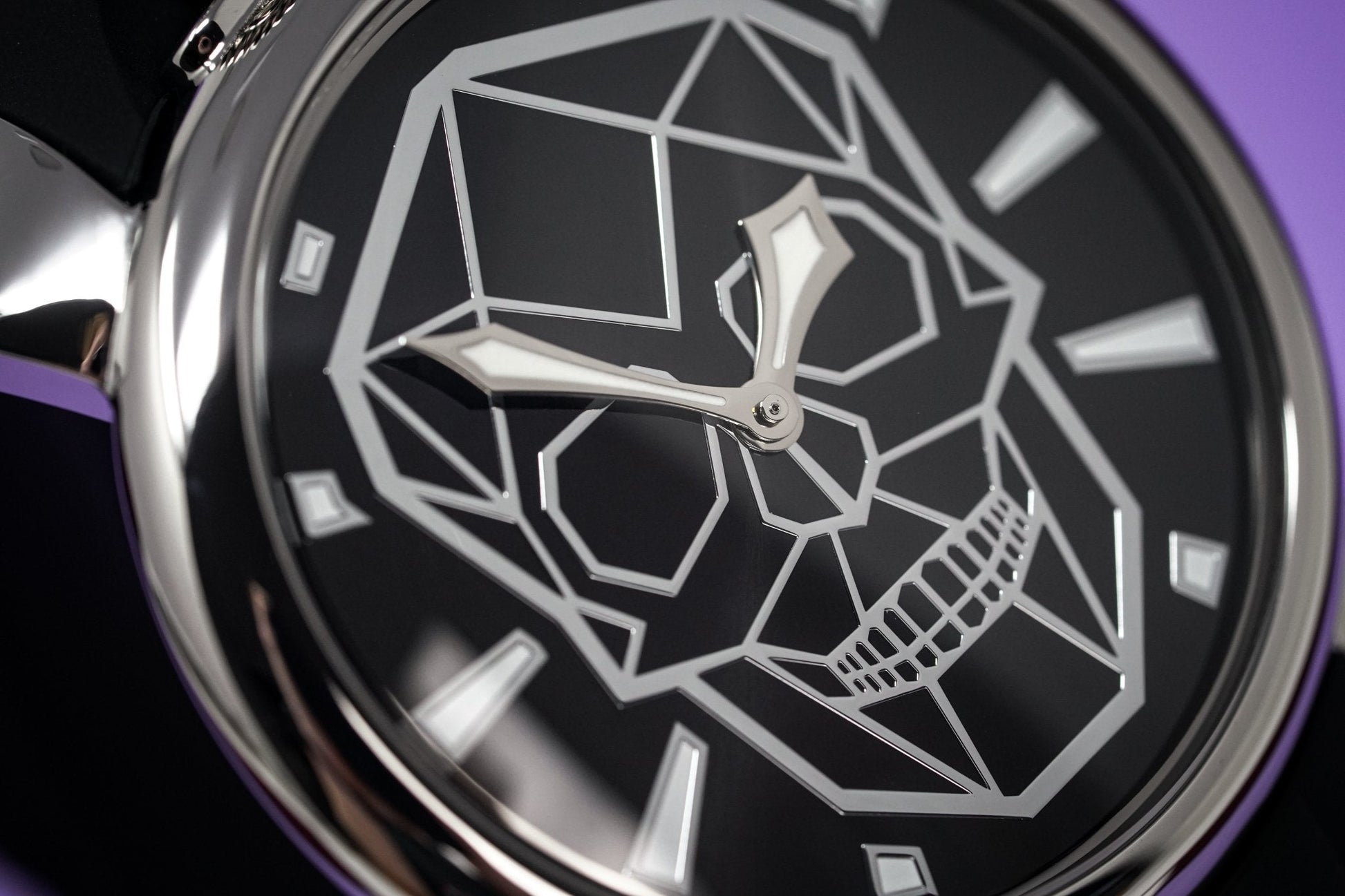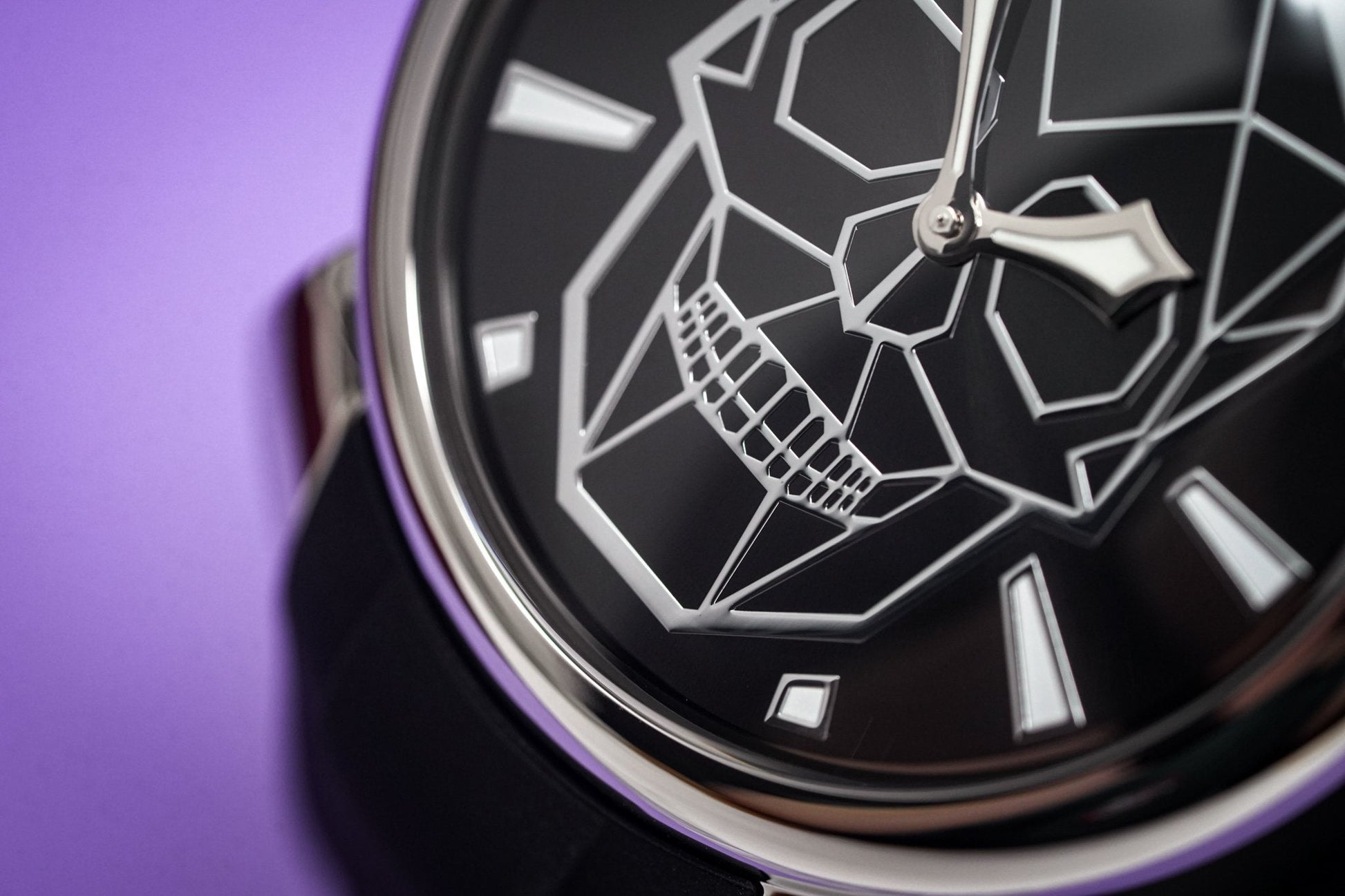 Black Bionic Skull Dial with Steel Indexes - Luminous Hands