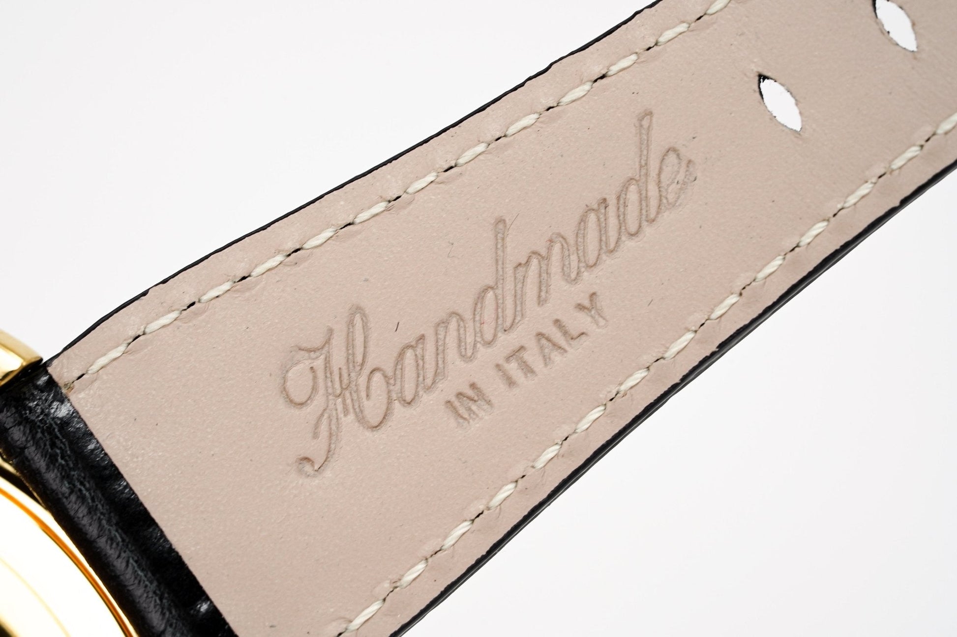 20 mm X 19 cm Italian Made Black Leather strap with Gold Plated Steel Buckle