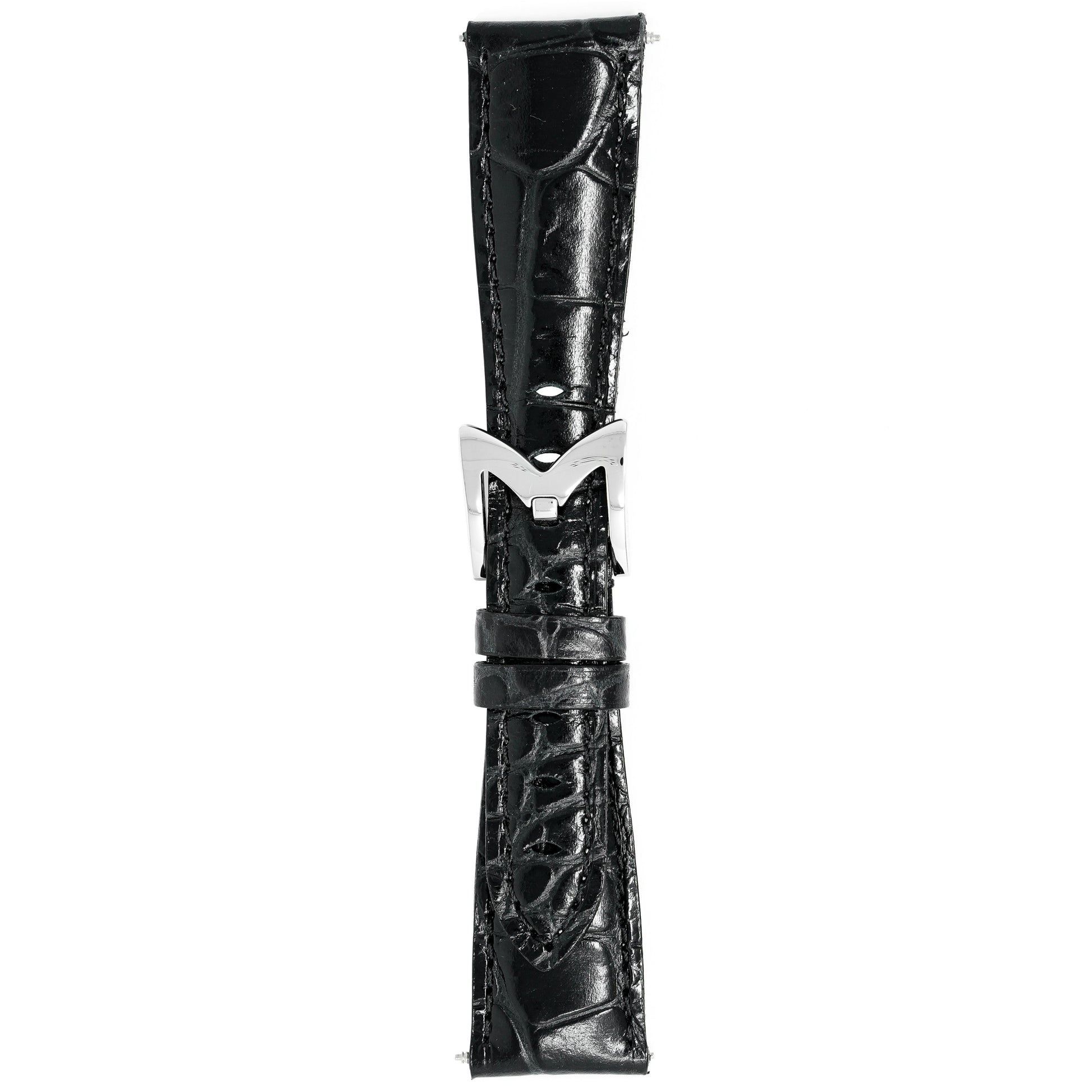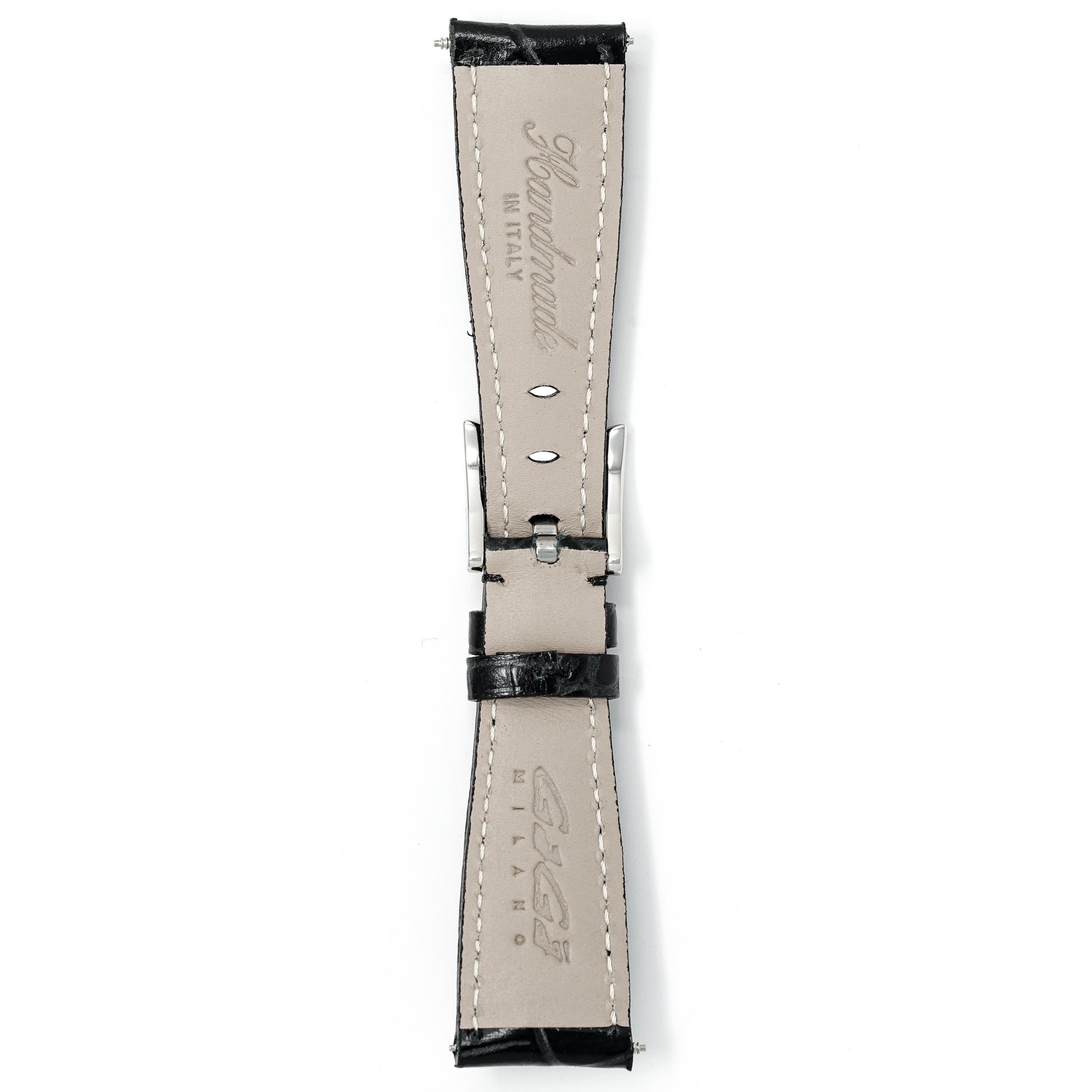 20/14mm width x 18cm Length Black Lizard Handmade in Italy Leather Strap with Blue Stitchings - Fitted With a Stainless Steel Buckle.